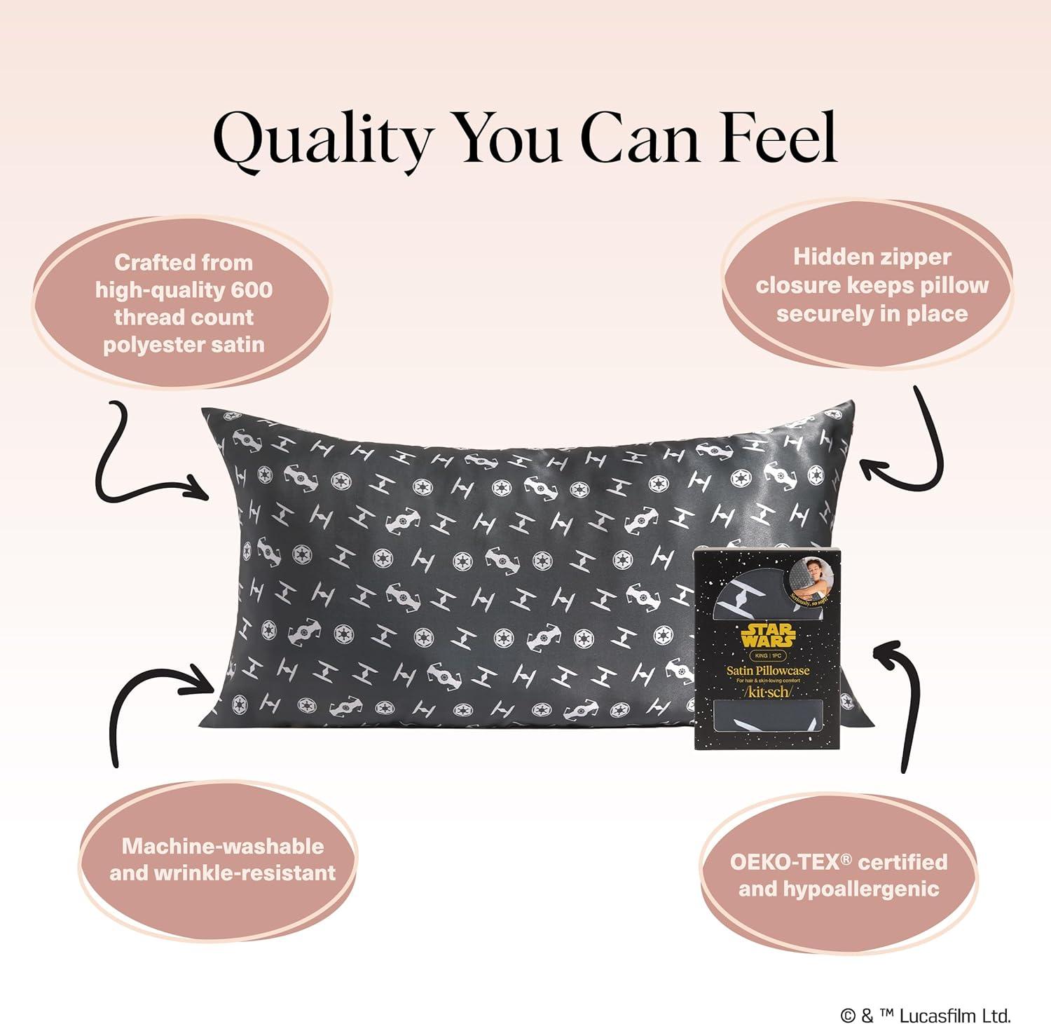 Bridgerton x Kitsch Satin Pillowcase with Zipper for Hair & Skin - Softer Than Silk Pillow Cases, Smooth Cooling Satin Pillow Case, Wrinkle-Free Pillow Cases Standard Size (19x26) - Wisteria(Galactic Empire)