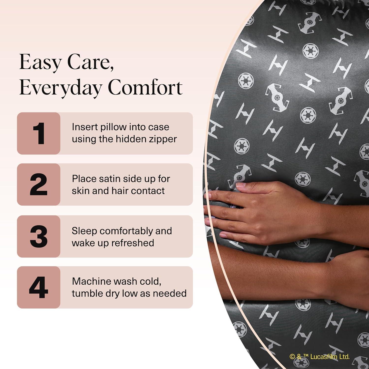LUXURY SATIN PILLOWCASE FOR HAIR & SKIN: Wake up to smoother hair and glowing skin with our silky satin pillowcase, a luxe alternative to silk pillowcases. Designed to reduce frizz, tangles, and breakage by creating less friction than cotton pillow cases, this silk pillow case–inspired fabric also helps prevent sleep lines and facial creases.