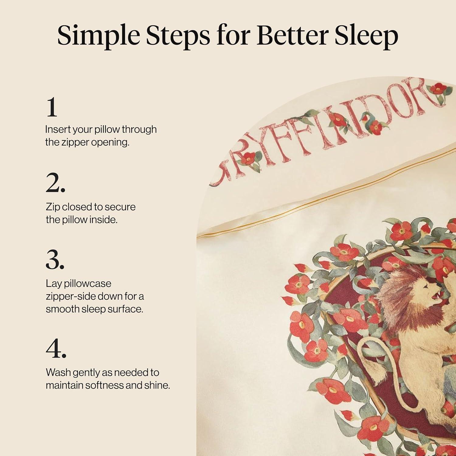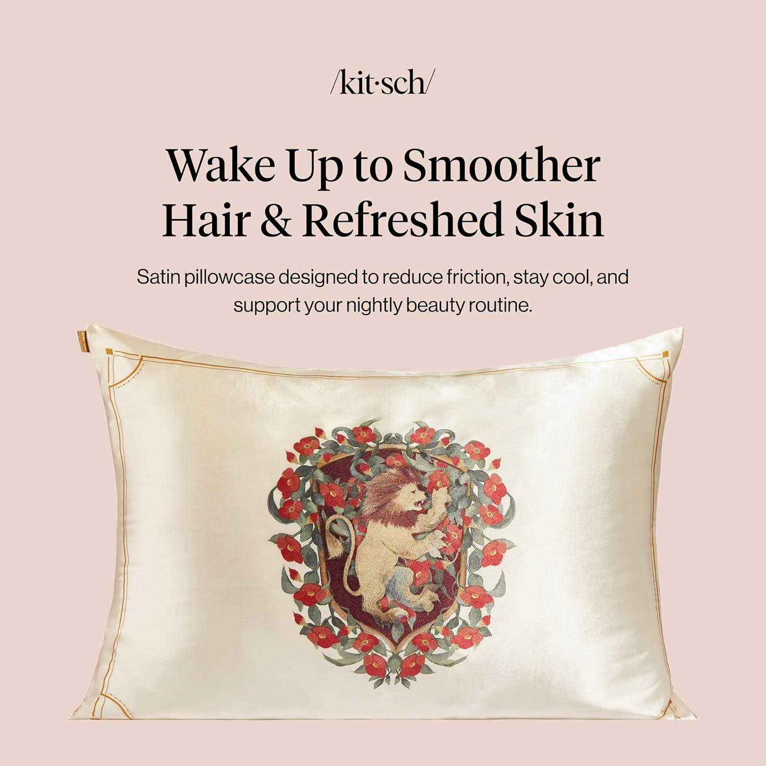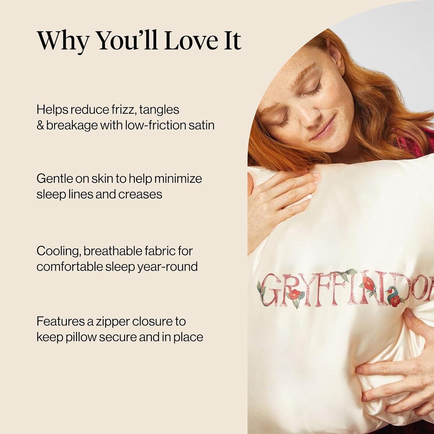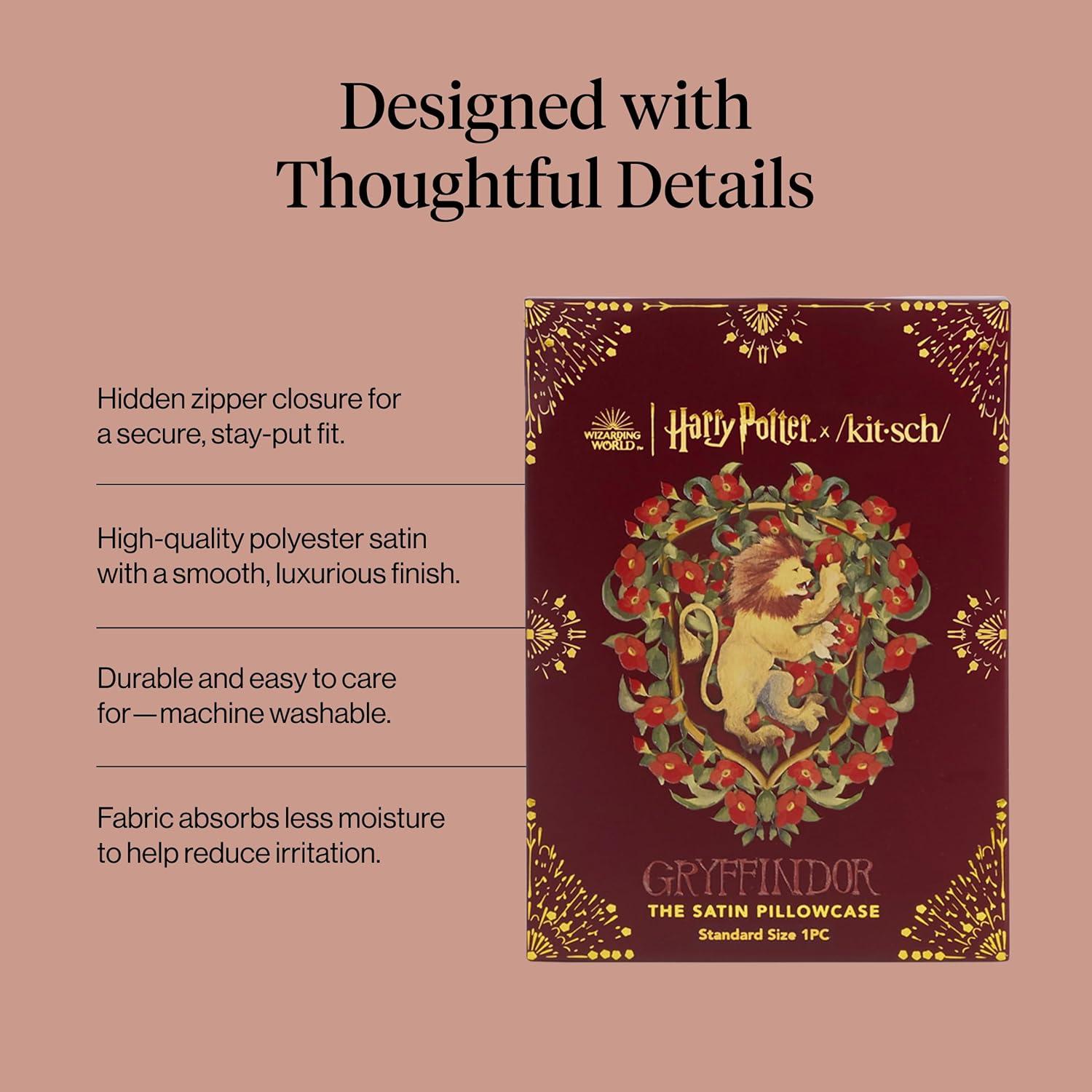 Bridgerton x Kitsch Satin Pillowcase with Zipper for Hair & Skin - Softer Than Silk Pillow Cases, Smooth Cooling Satin Pillow Case, Wrinkle-Free Pillow Cases Standard Size (19x26) - Wisteria(Harry Potter - Gryffindor)