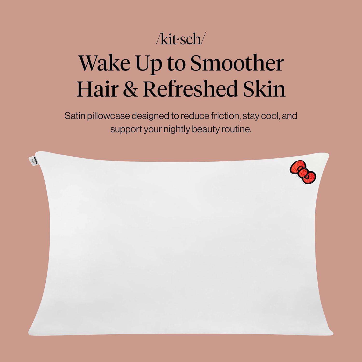 Bridgerton x Kitsch Satin Pillowcase with Zipper for Hair & Skin – Softer Than Silk Pillow Cases, Smooth Cooling Satin Pillow Case, Wrinkle-Free Pillow Cases Standard Size (19×26) – Wisteria(Hello Kitty – Ivory)
