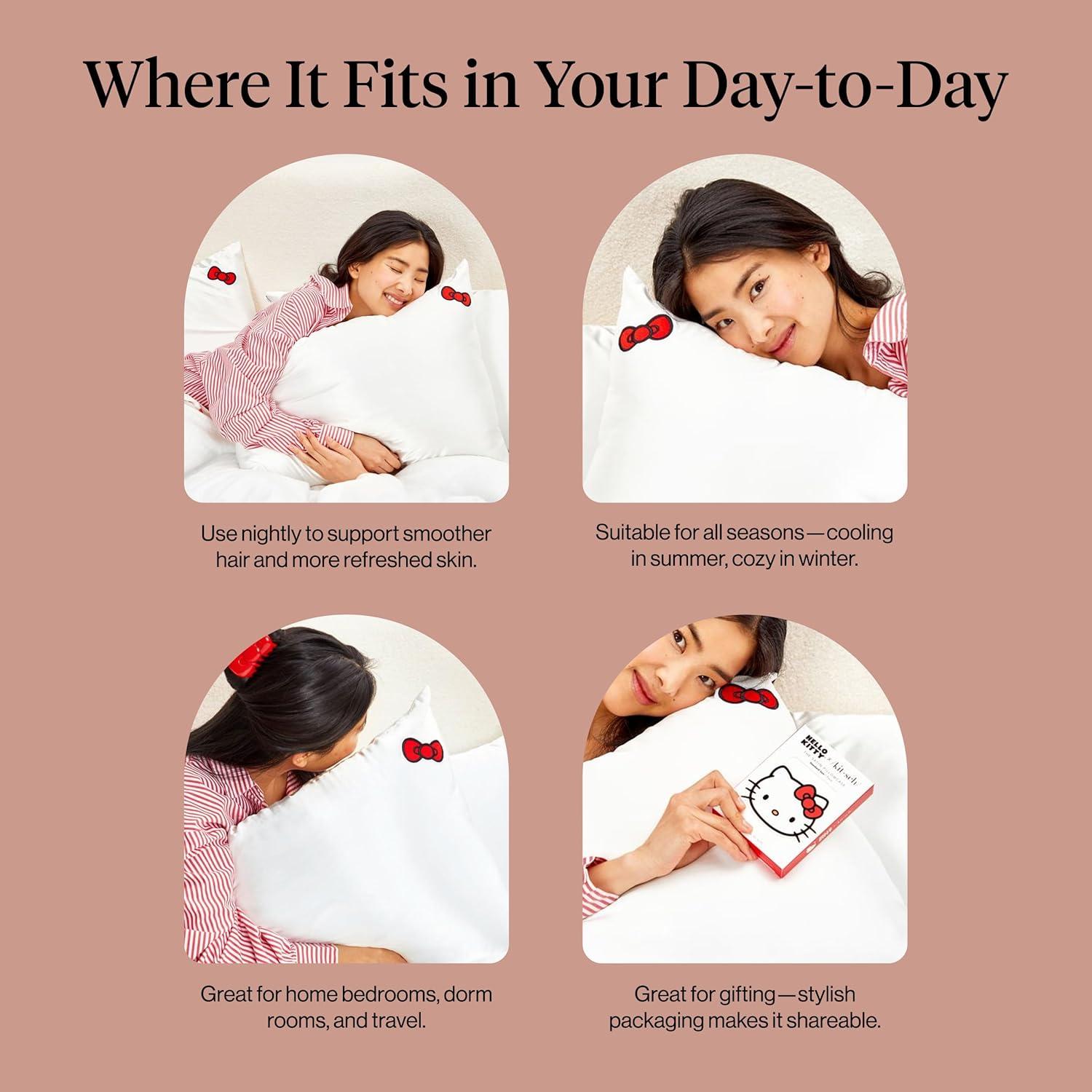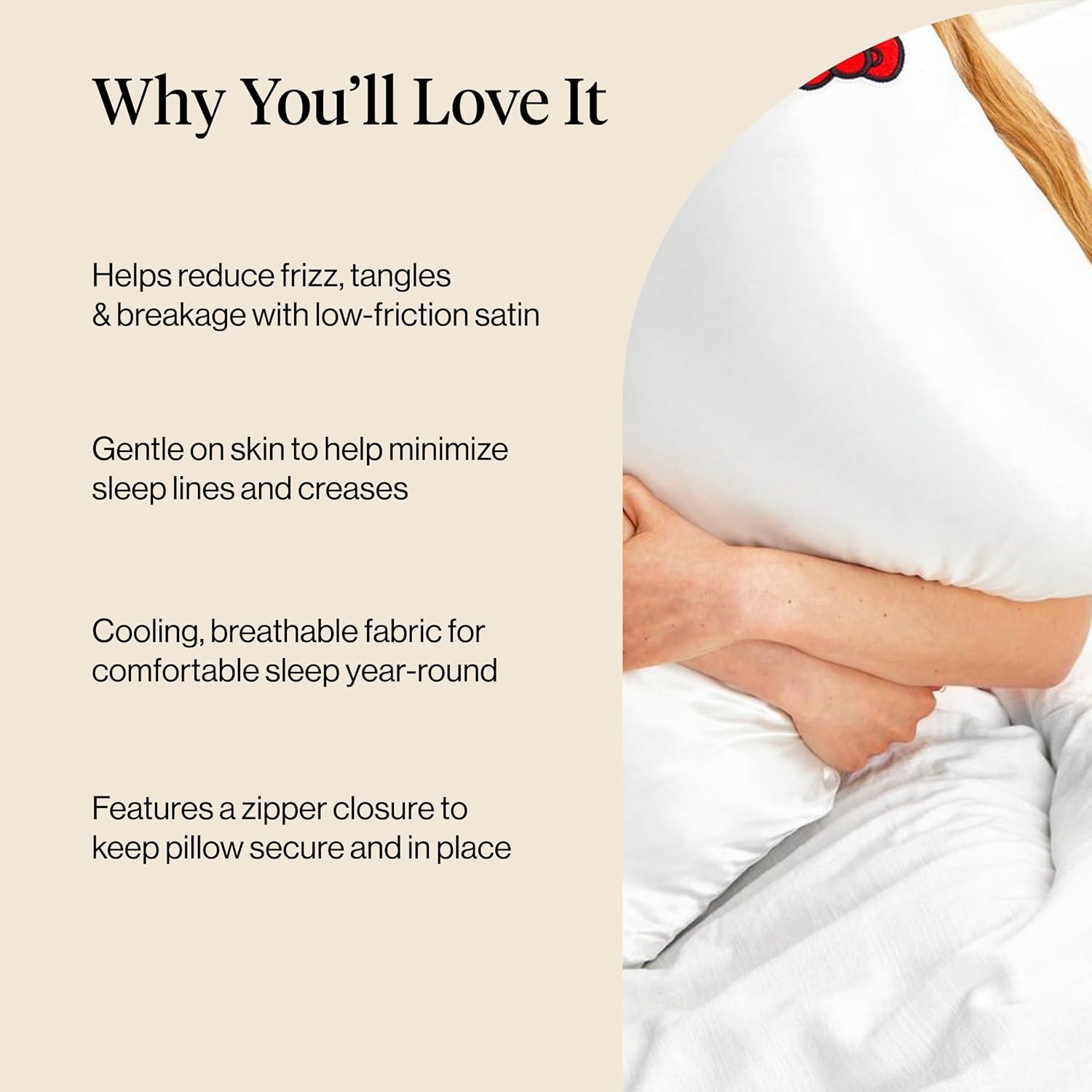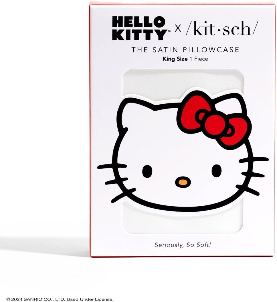 Bridgerton x Kitsch Satin Pillowcase with Zipper for Hair & Skin - Softer Than Silk Pillow Cases, Smooth Cooling Satin Pillow Case, Wrinkle-Free Pillow Cases Standard Size (19x26) - Wisteria(Hello Kitty - Ivory)