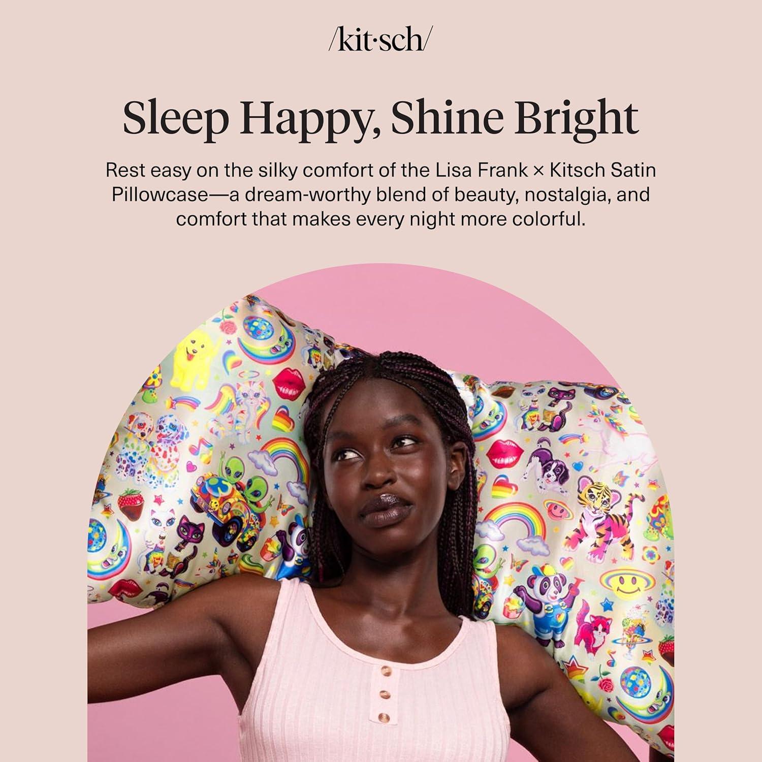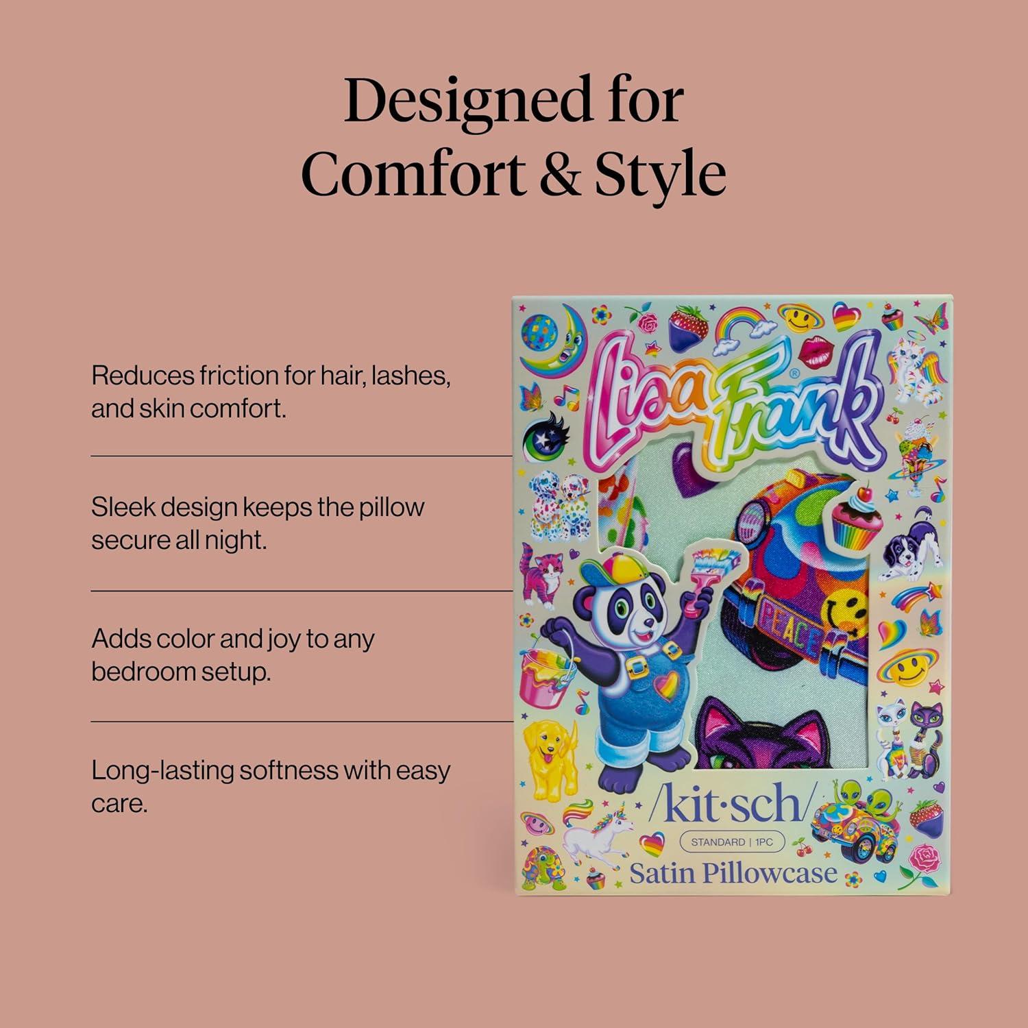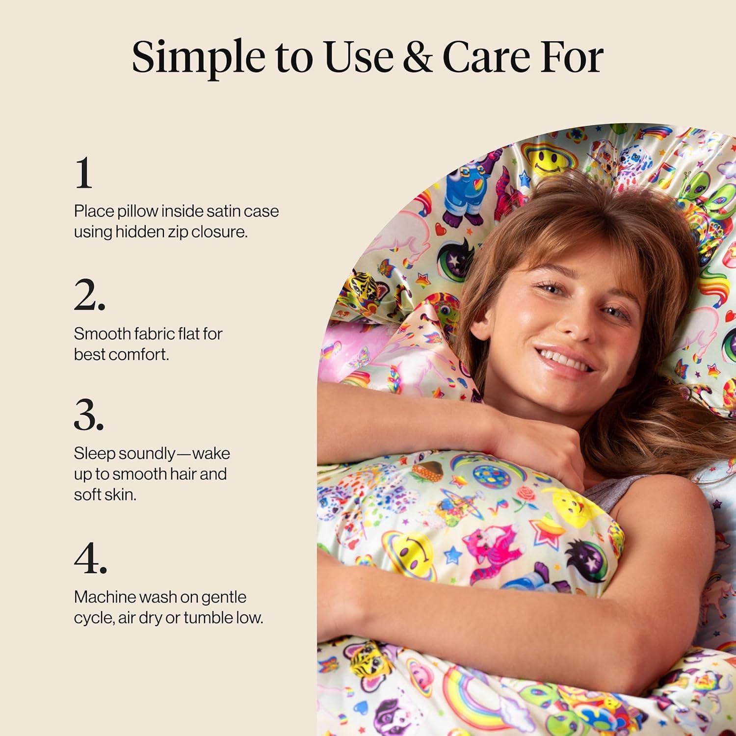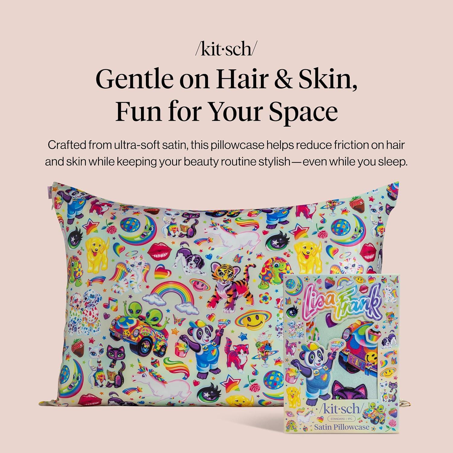 Bridgerton x Kitsch Satin Pillowcase with Zipper for Hair & Skin - Softer Than Silk Pillow Cases, Smooth Cooling Satin Pillow Case, Wrinkle-Free Pillow Cases Standard Size (19x26) - Wisteria(Lisa Frank)