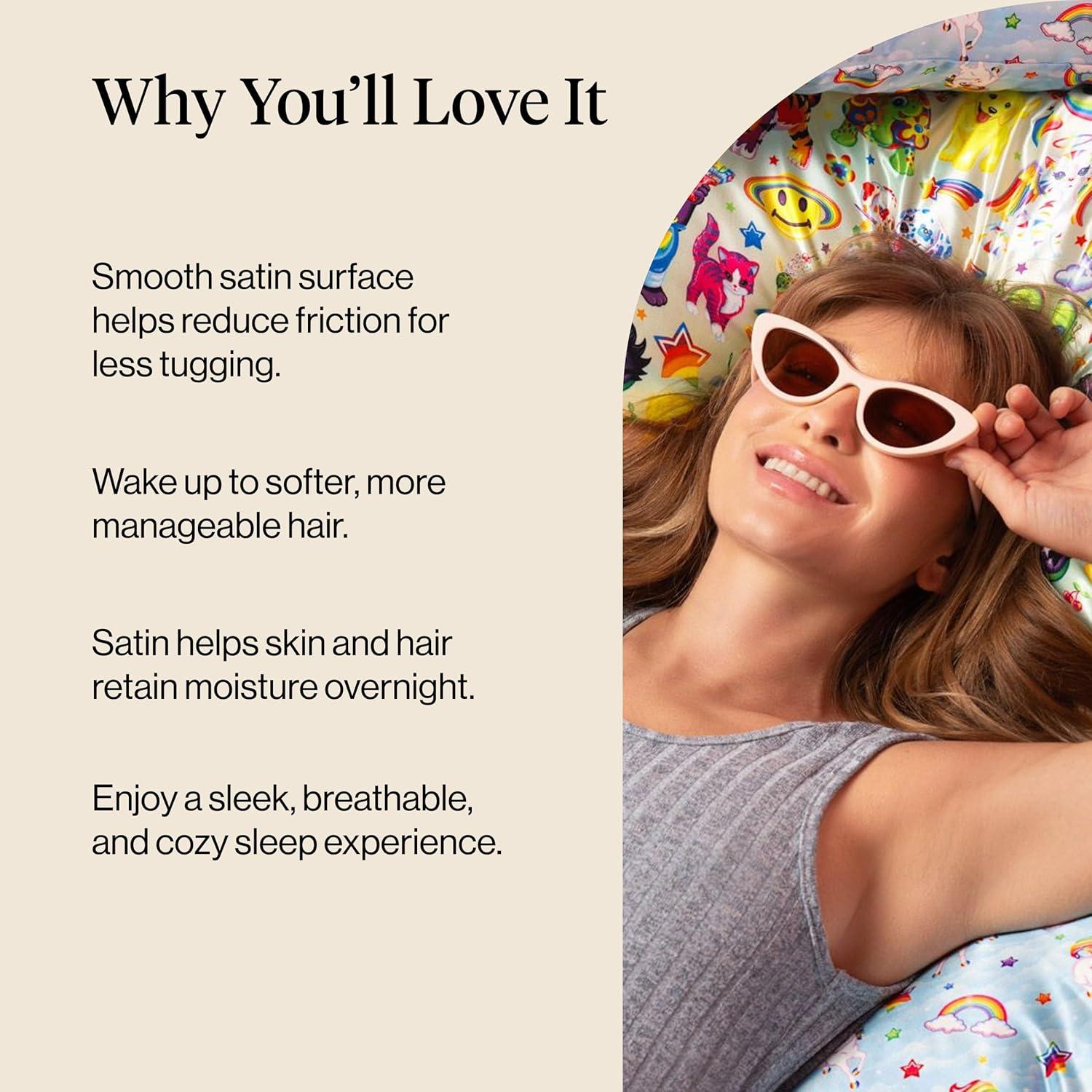 LUXURY SATIN PILLOWCASE FOR HAIR & SKIN: Wake up to smoother hair and glowing skin with our silky satin pillowcase, a luxe alternative to silk pillowcases. Designed to reduce frizz, tangles, and breakage by creating less friction than cotton pillow cases, this silk pillow case–inspired fabric also helps prevent sleep lines and facial creases.