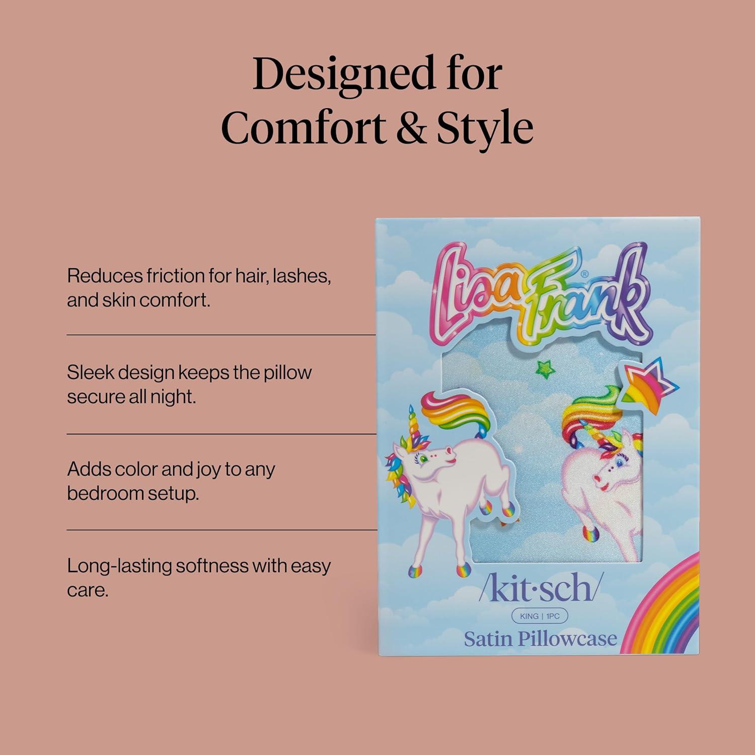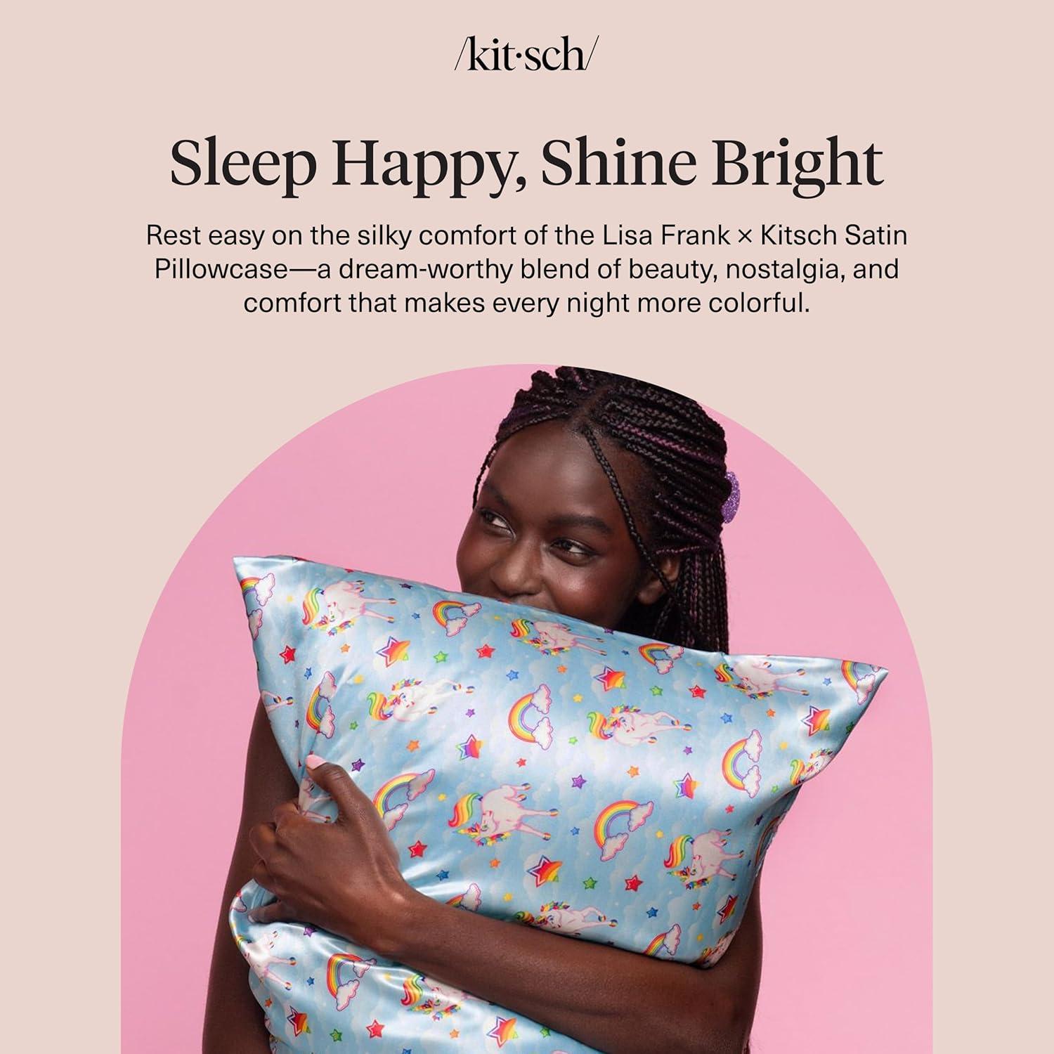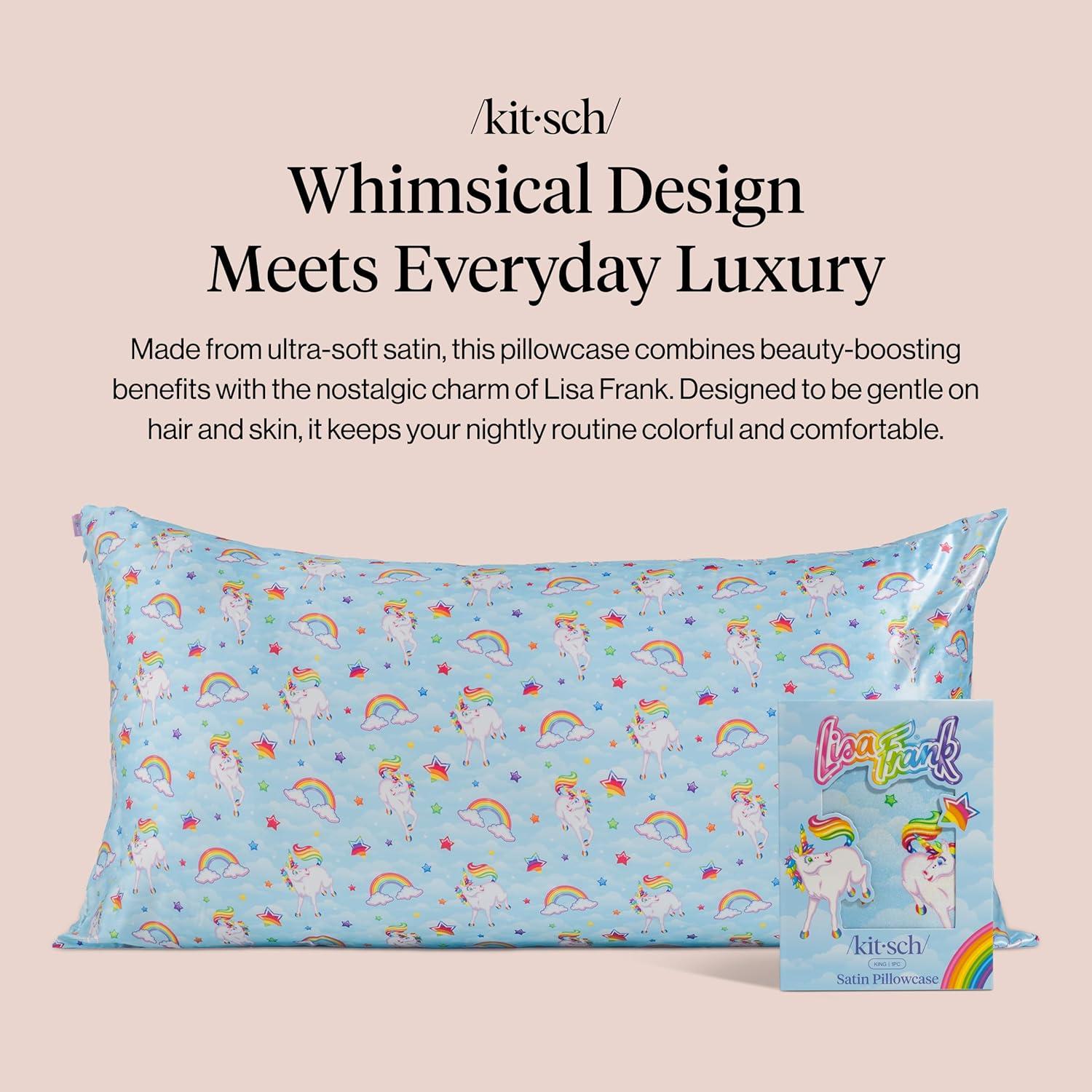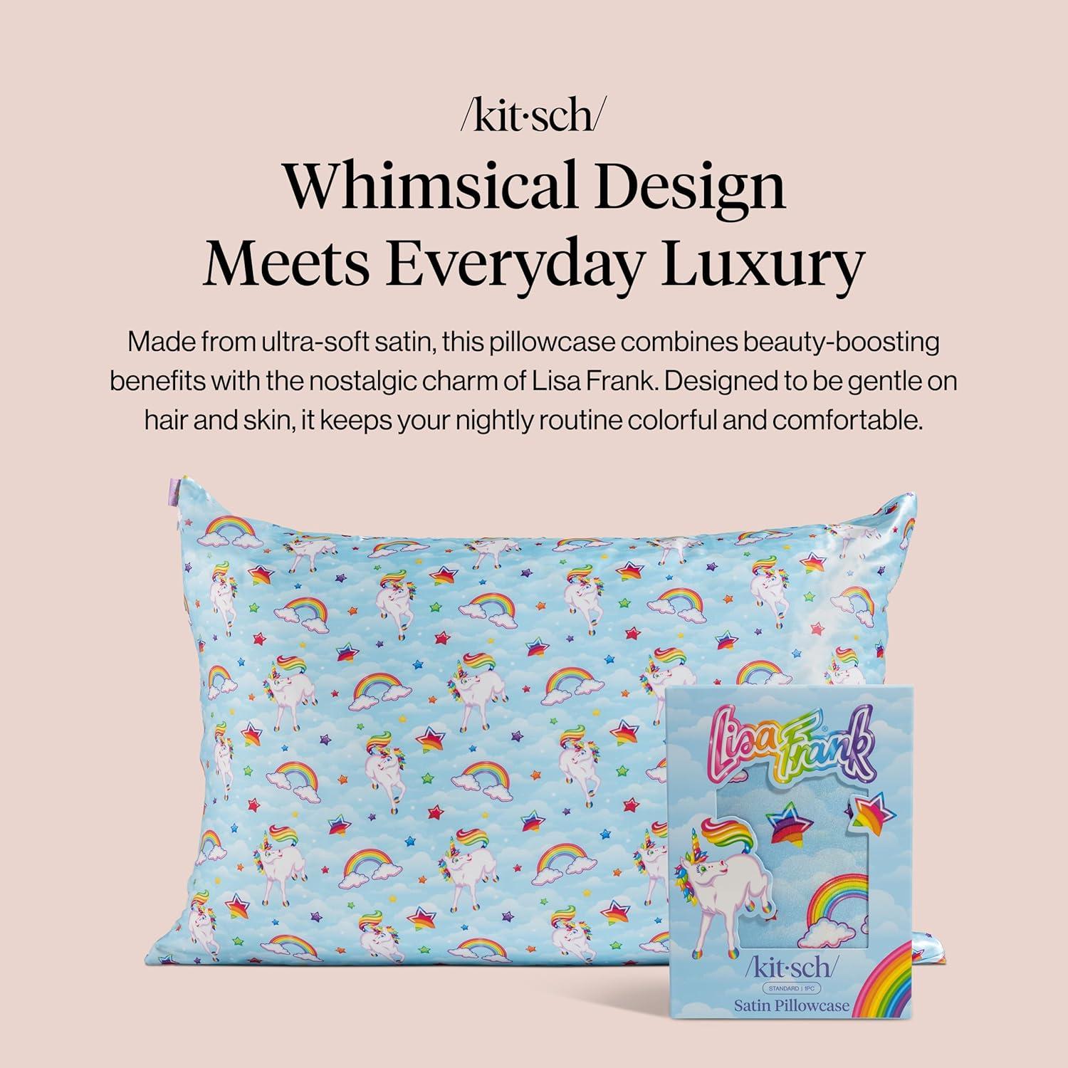 Bridgerton x Kitsch Satin Pillowcase with Zipper for Hair & Skin – Softer Than Silk Pillow Cases, Smooth Cooling Satin Pillow Case, Wrinkle-Free Pillow Cases Standard Size (19×26) – Wisteria(Lisa Frank)