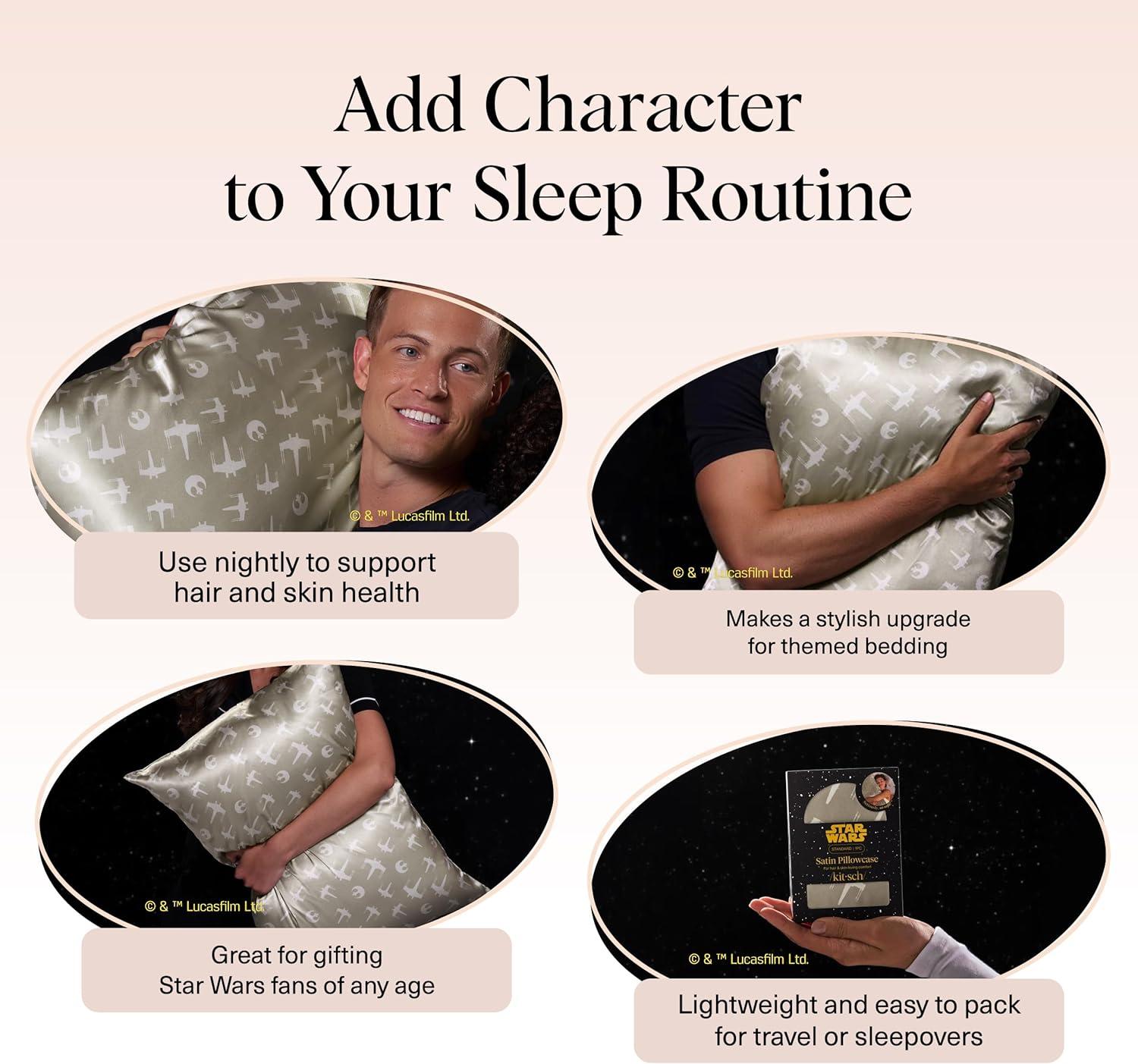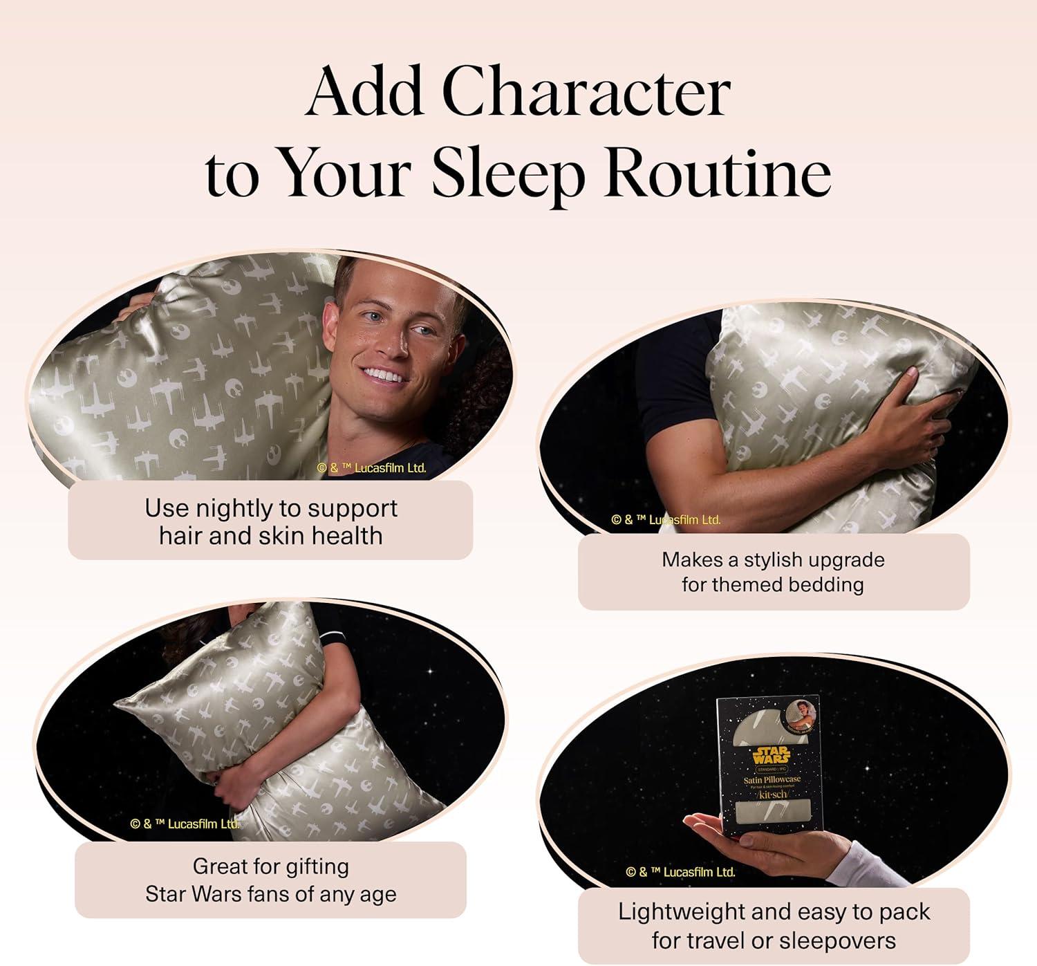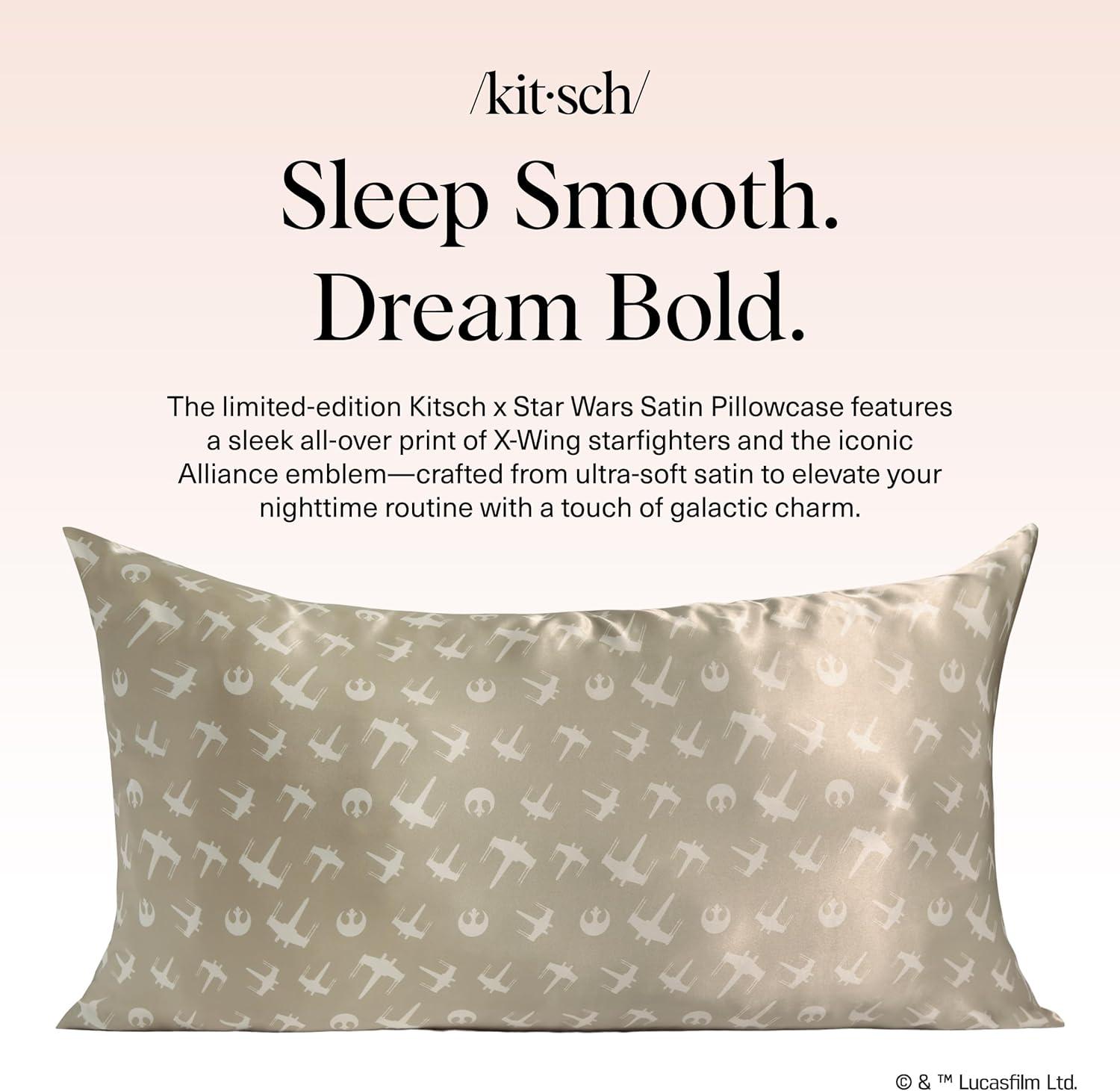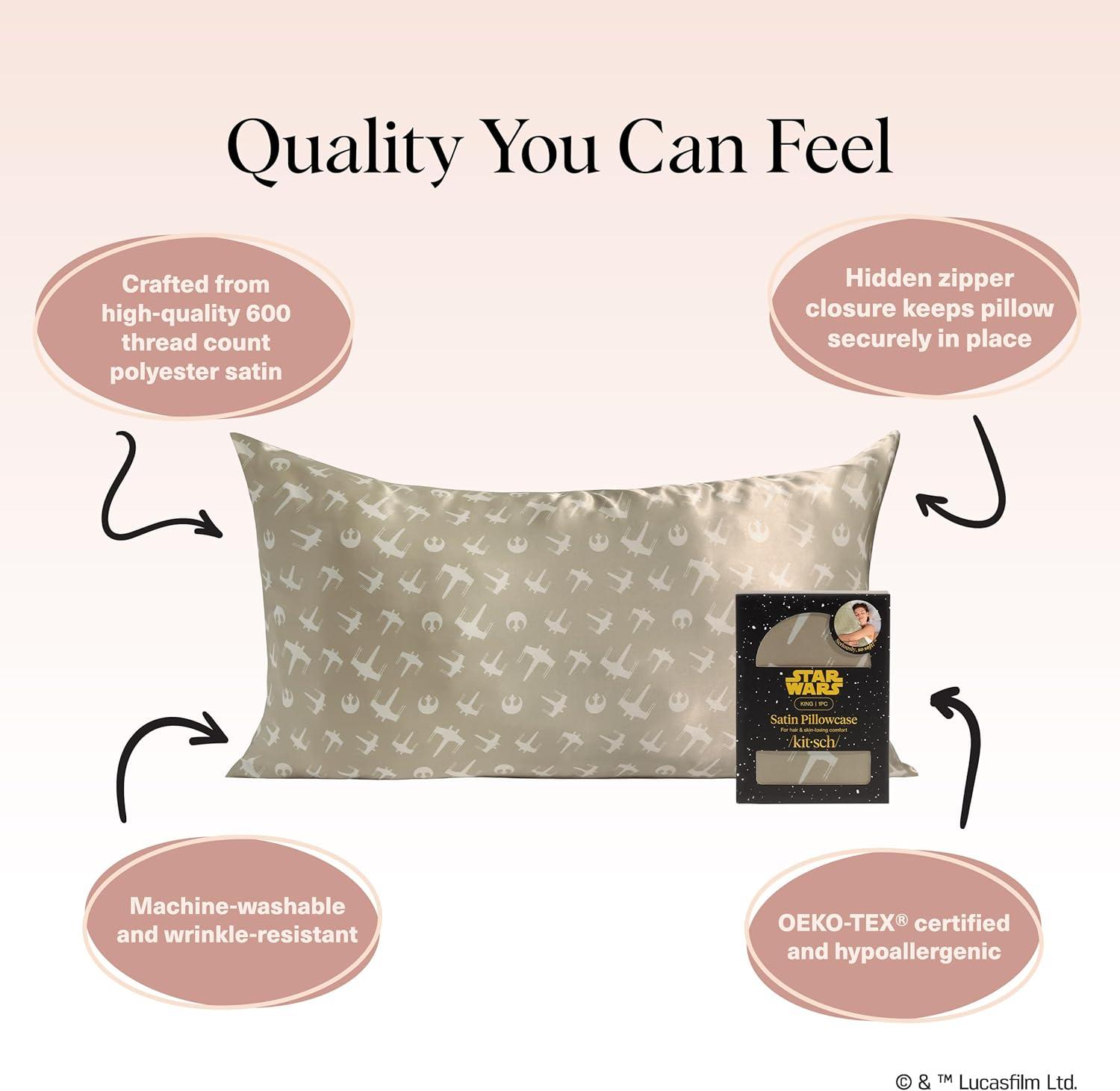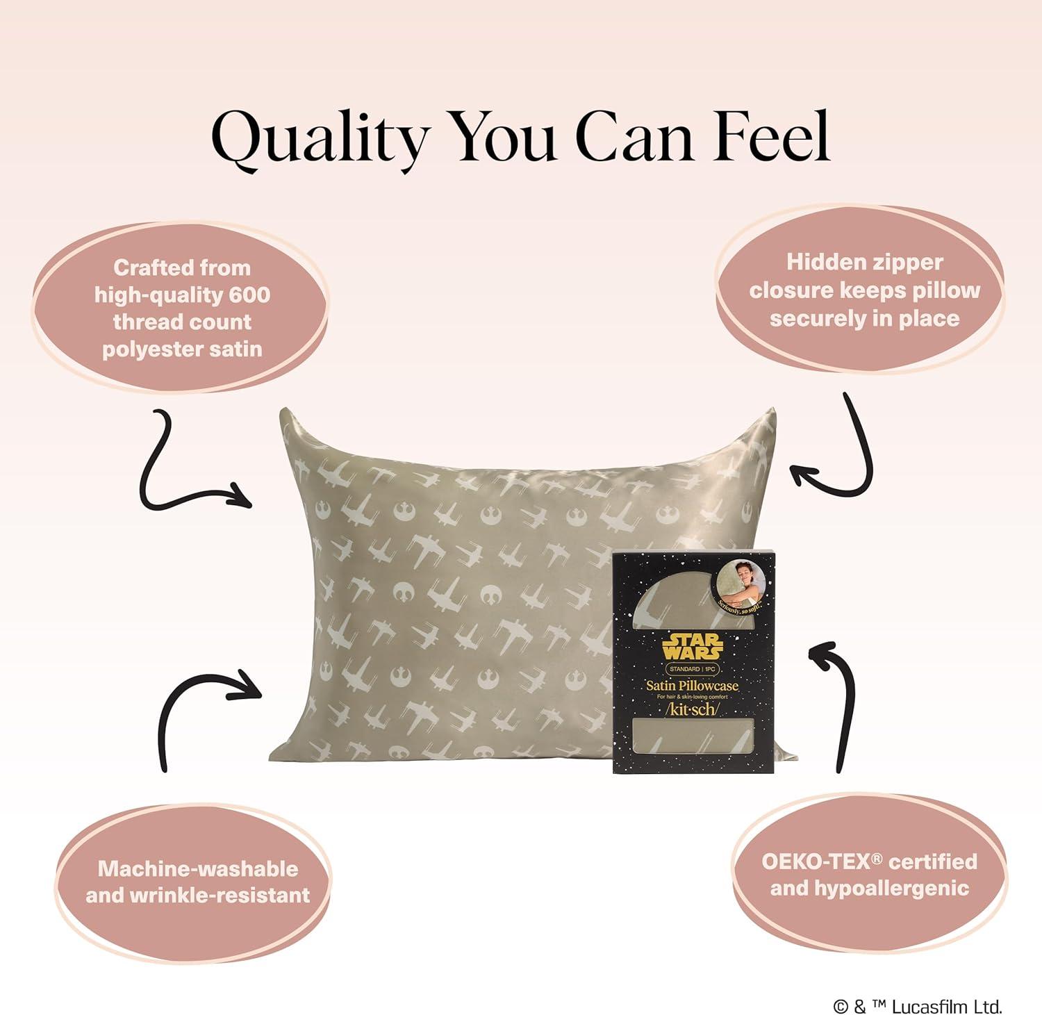 Bridgerton x Kitsch Satin Pillowcase with Zipper for Hair & Skin - Softer Than Silk Pillow Cases, Smooth Cooling Satin Pillow Case, Wrinkle-Free Pillow Cases Standard Size (19x26) - Wisteria(Rebel Alliance)