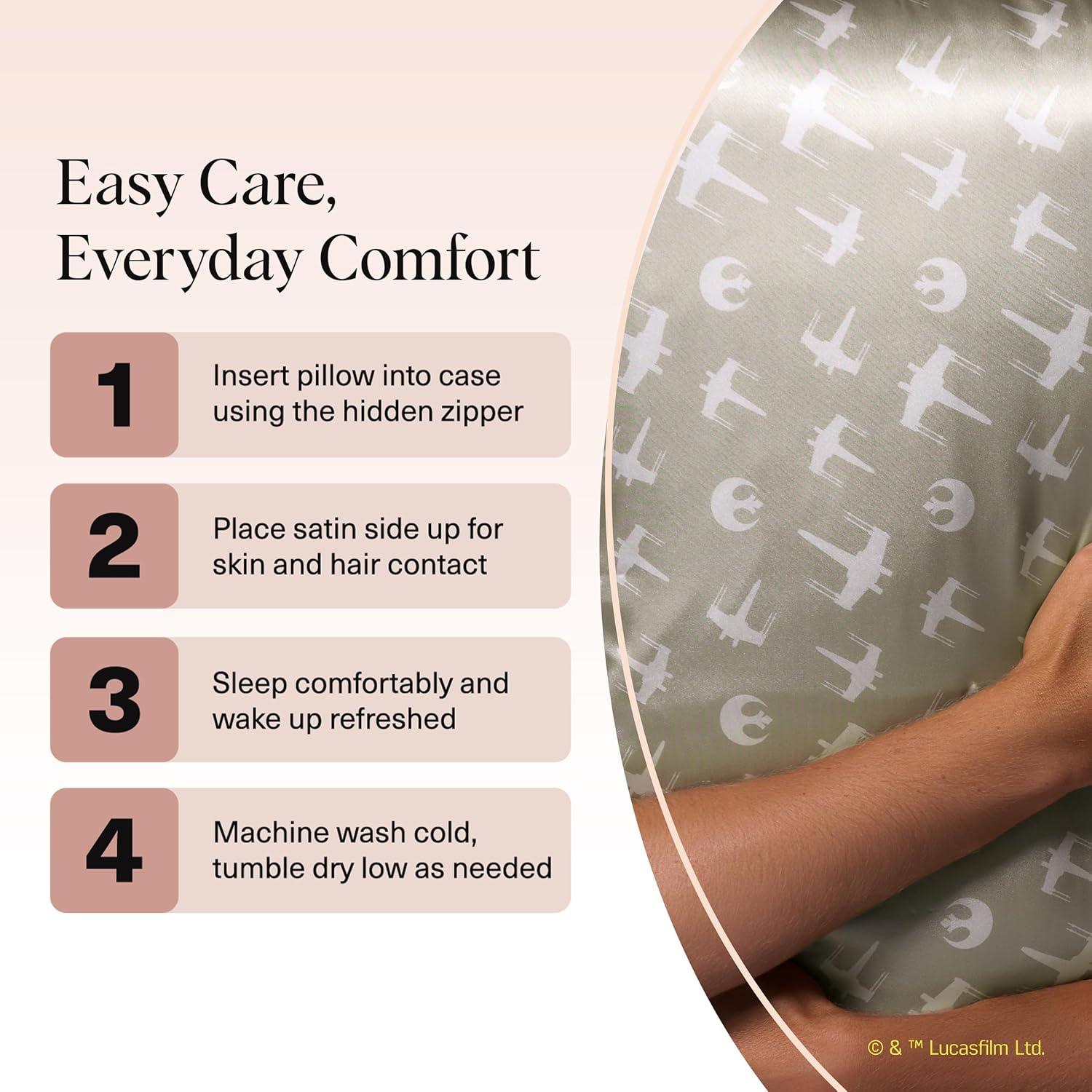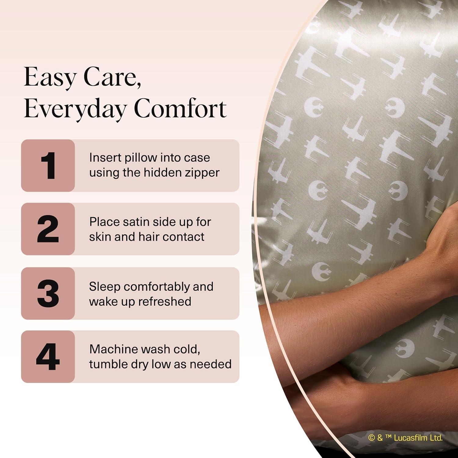 LUXURY SATIN PILLOWCASE FOR HAIR & SKIN: Wake up to smoother hair and glowing skin with our silky satin pillowcase, a luxe alternative to silk pillowcases. Designed to reduce frizz, tangles, and breakage by creating less friction than cotton pillow cases, this silk pillow case–inspired fabric also helps prevent sleep lines and facial creases.