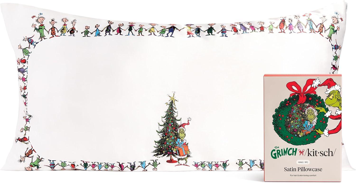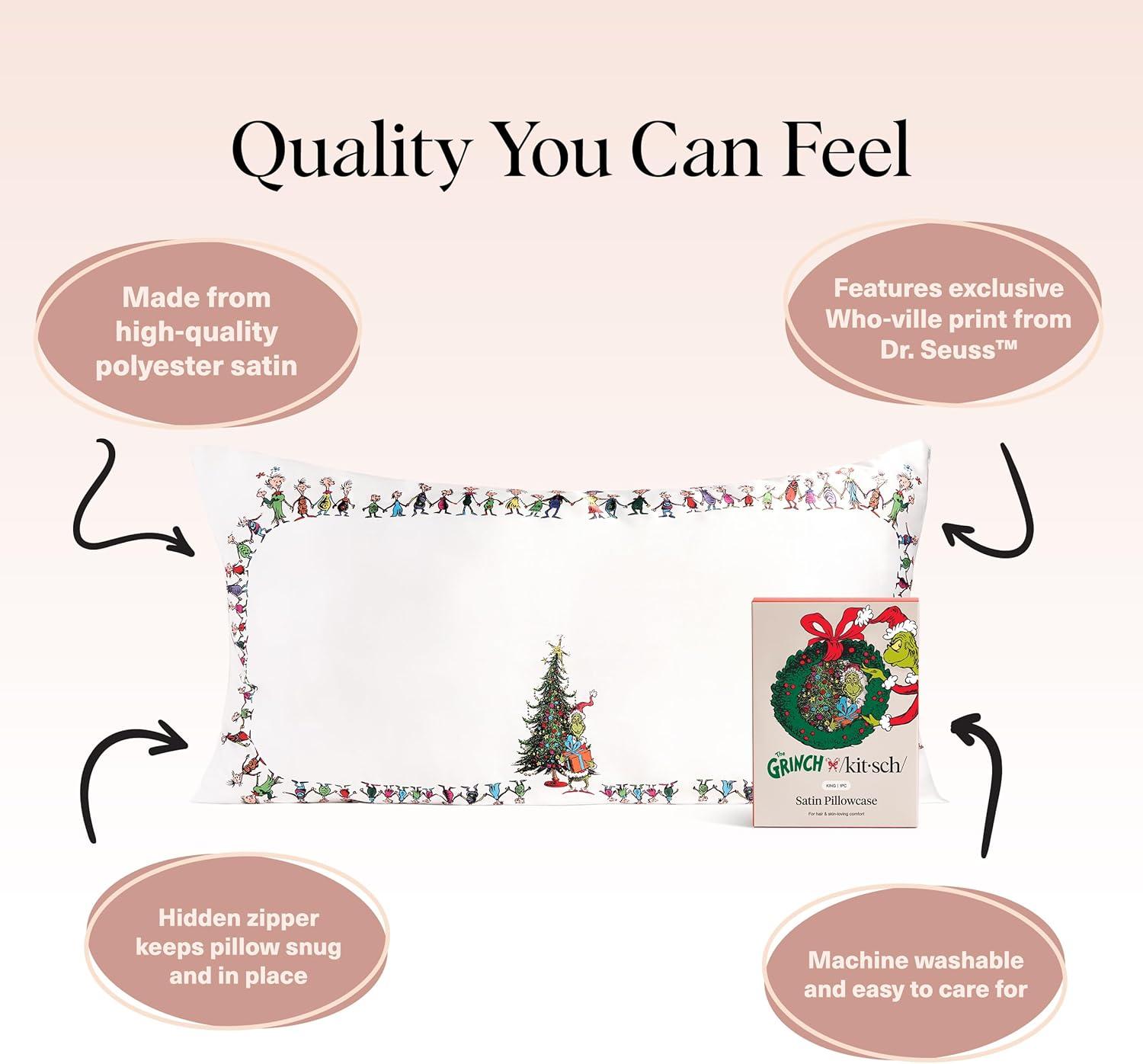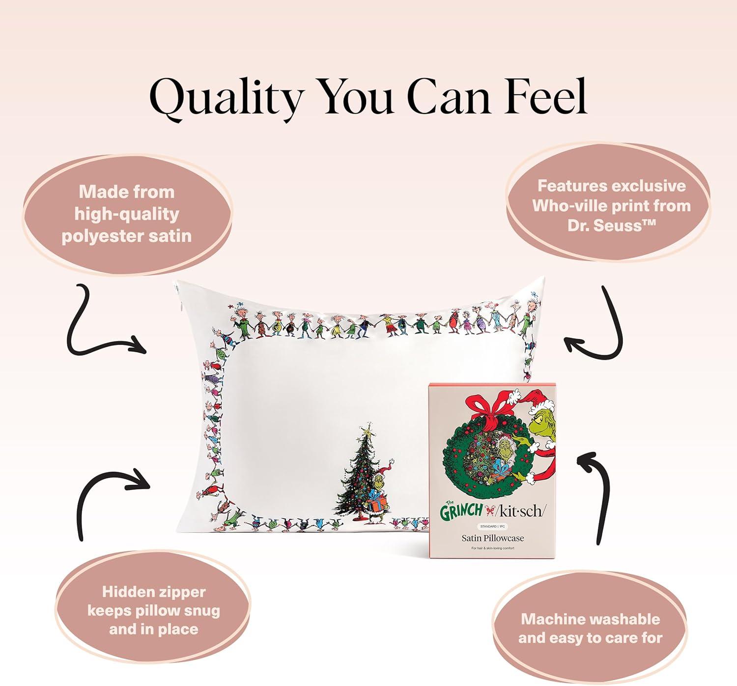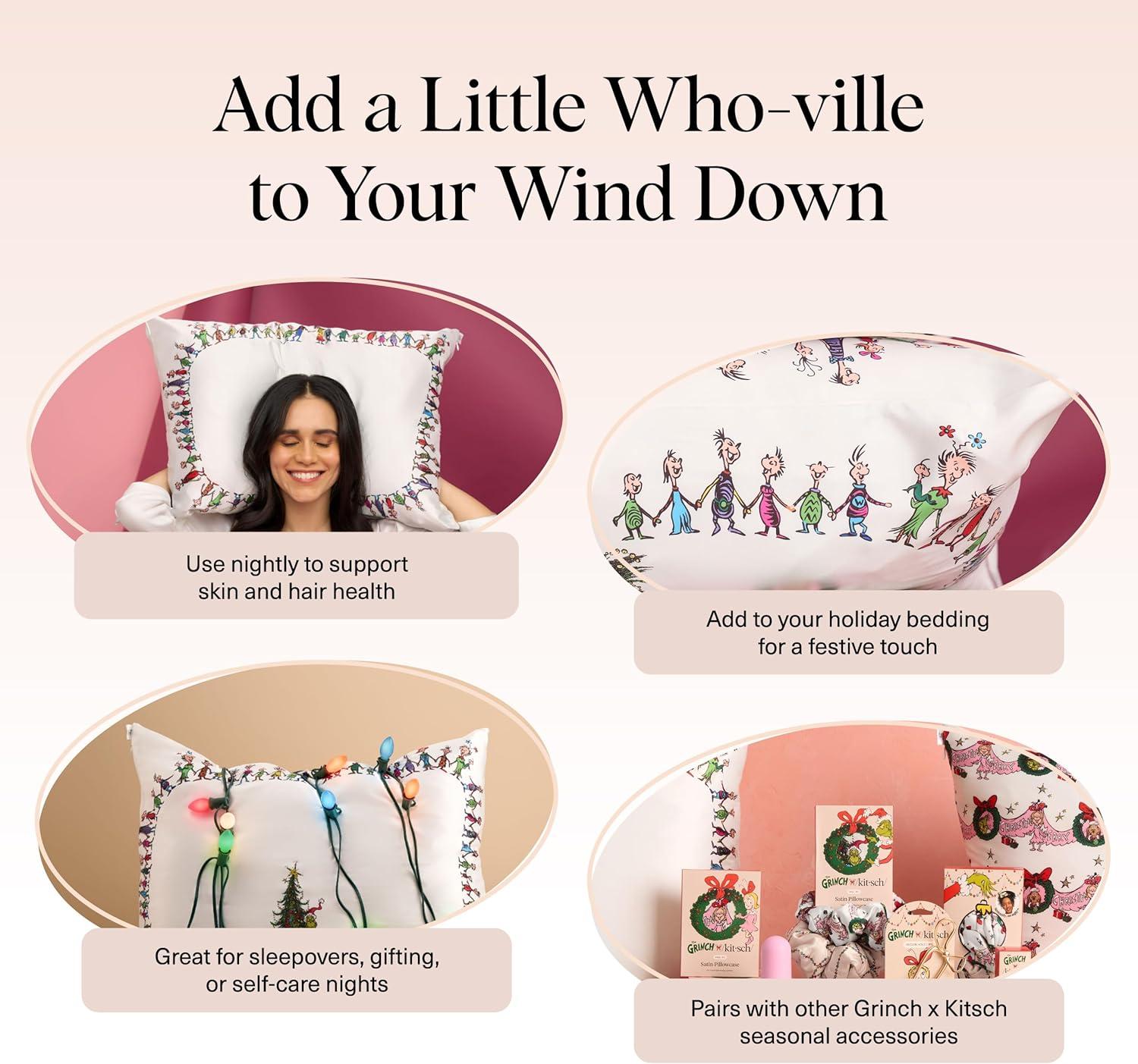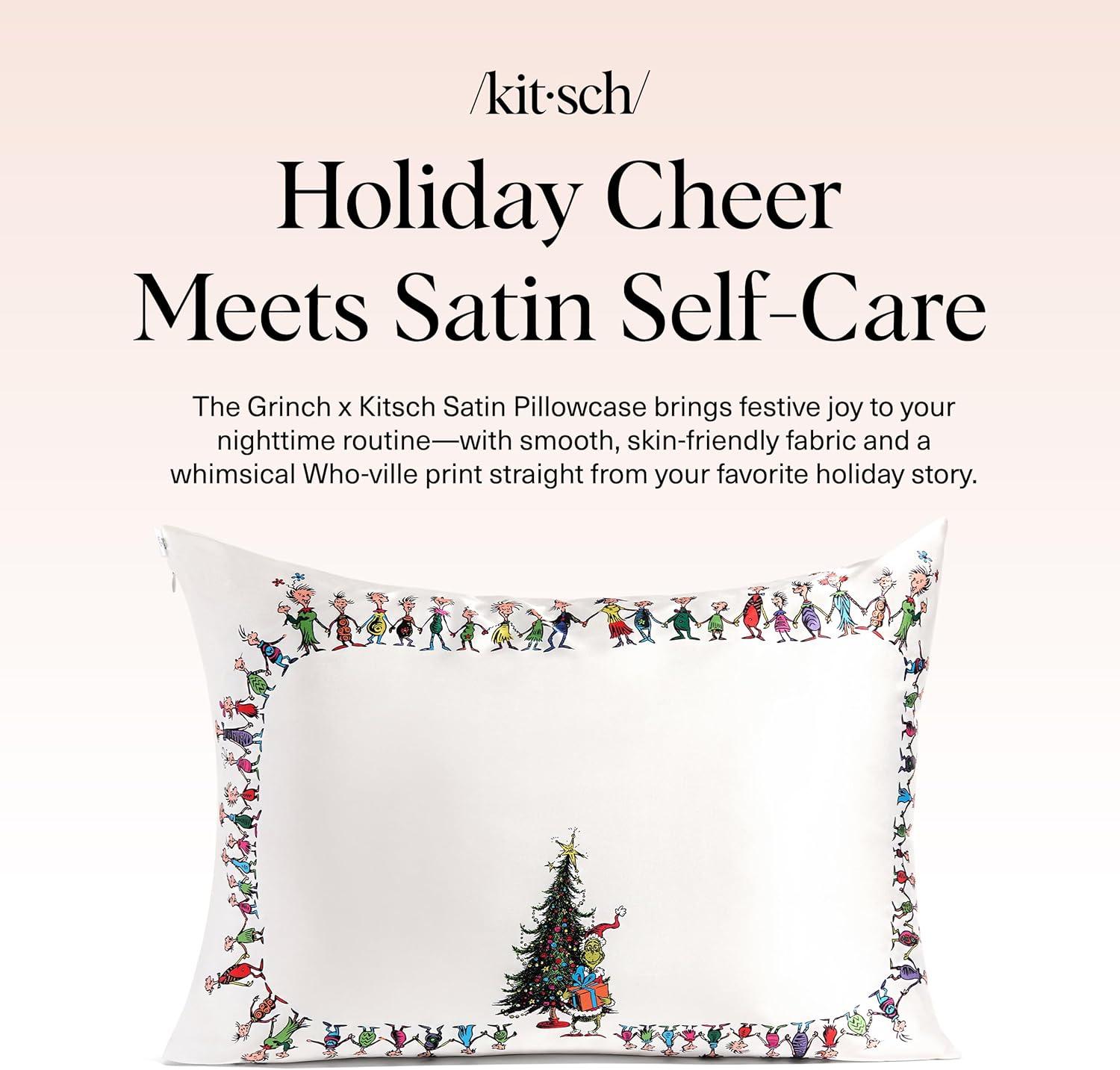 Bridgerton x Kitsch Satin Pillowcase with Zipper for Hair & Skin – Softer Than Silk Pillow Cases, Smooth Cooling Satin Pillow Case, Wrinkle-Free Pillow Cases Standard Size (19×26) – Wisteria(Who-ville)