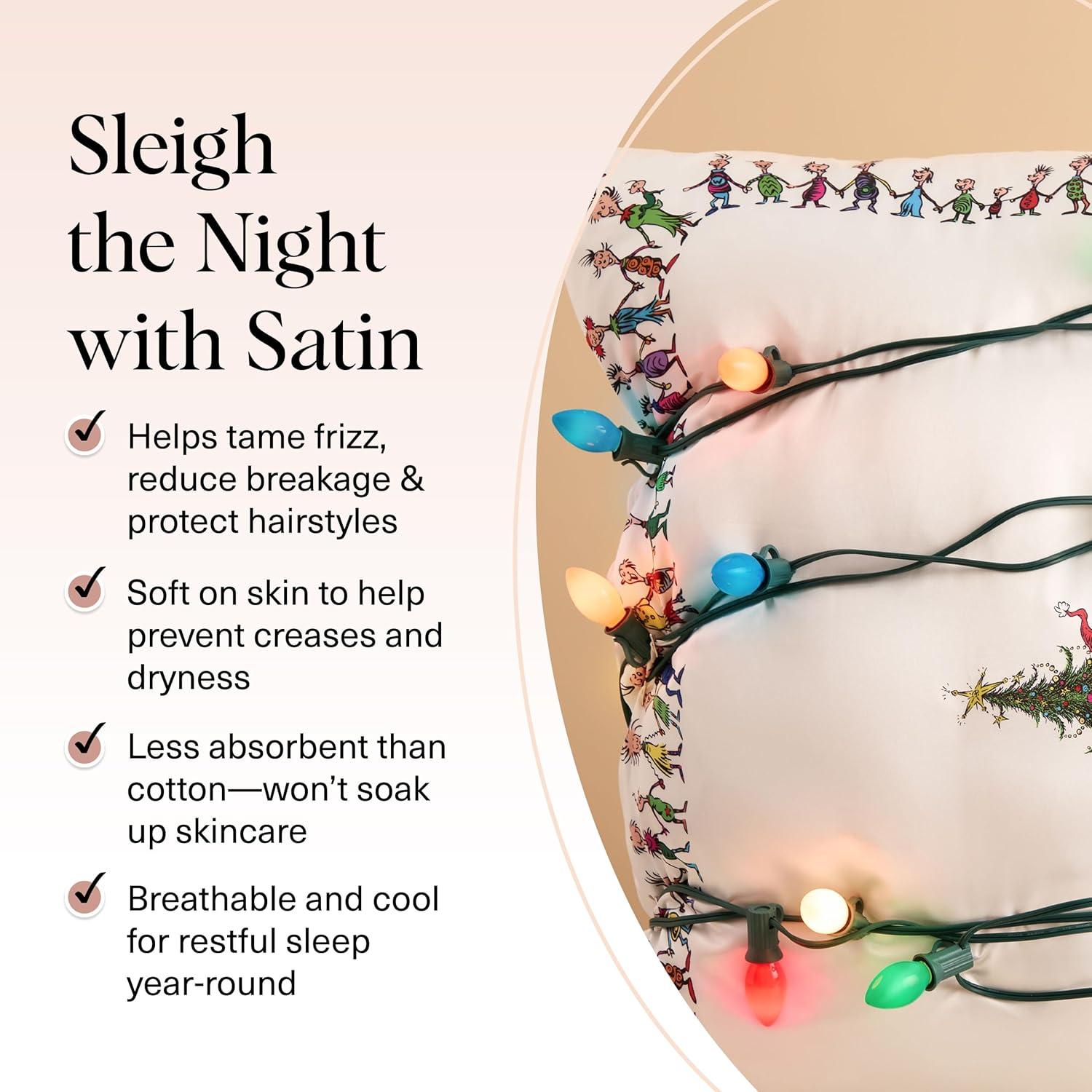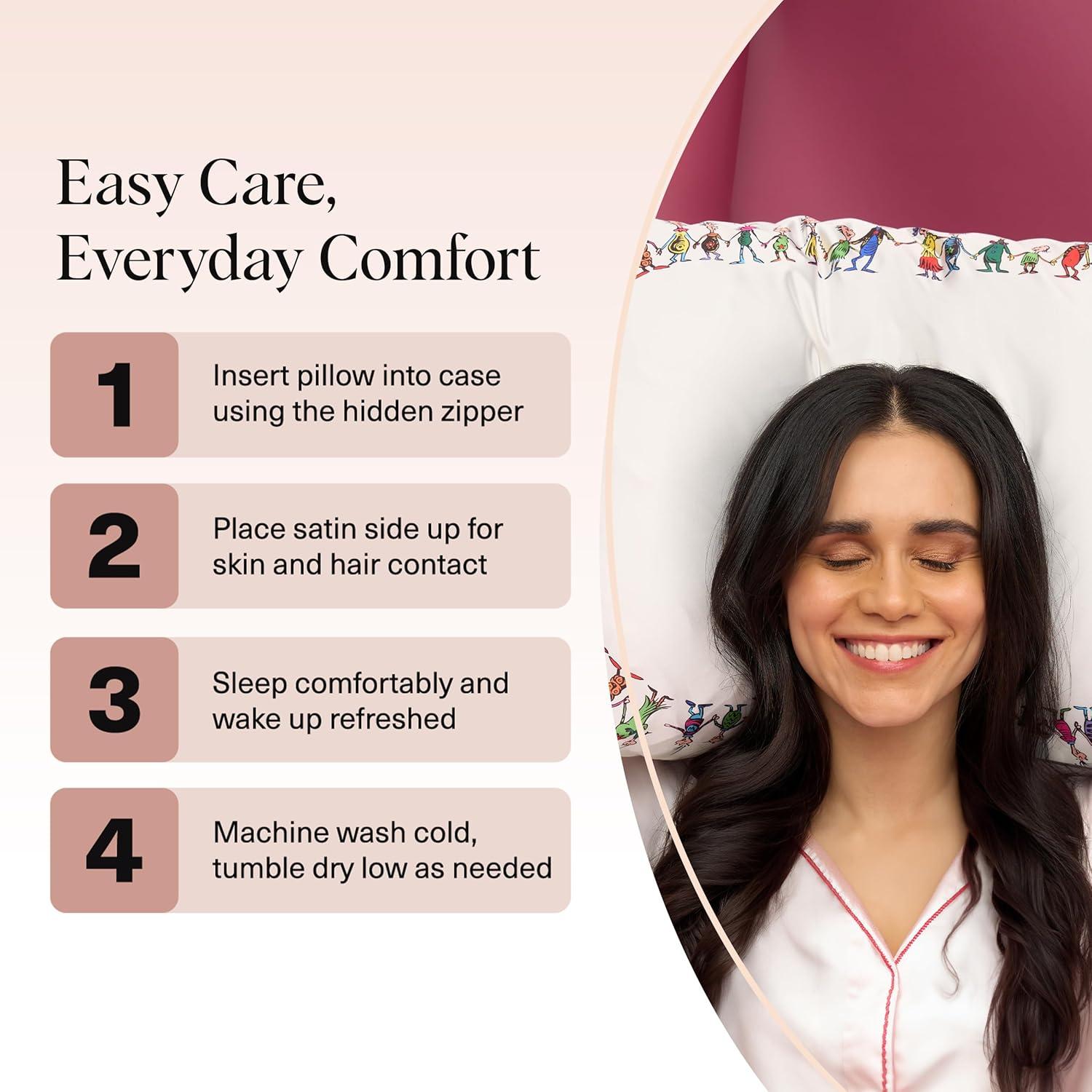 LUXURY SATIN PILLOWCASE FOR HAIR & SKIN: Wake up to smoother hair and glowing skin with our silky satin pillowcase, a luxe alternative to silk pillowcases. Designed to reduce frizz, tangles, and breakage by creating less friction than cotton pillow cases, this silk pillow case–inspired fabric also helps prevent sleep lines and facial creases.
