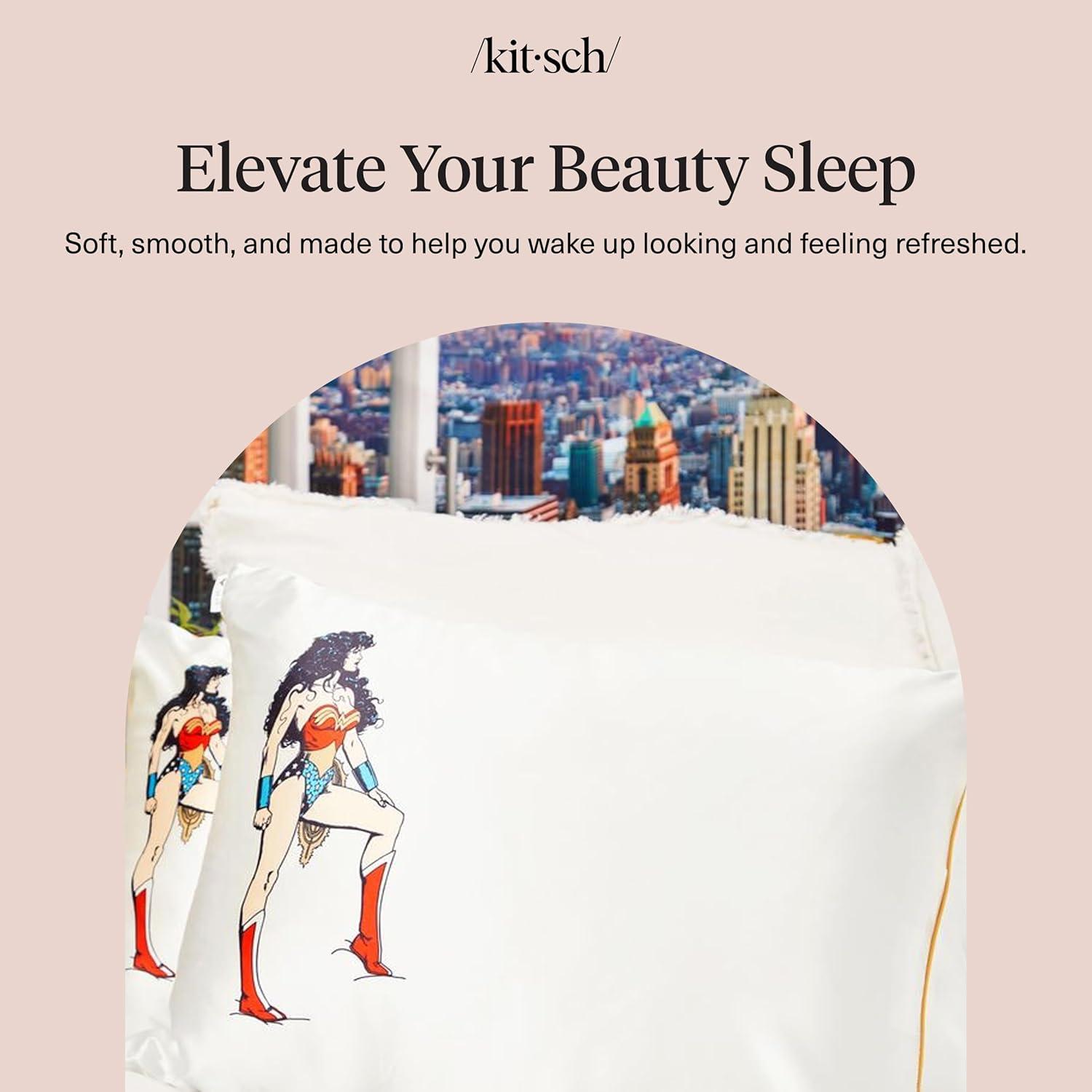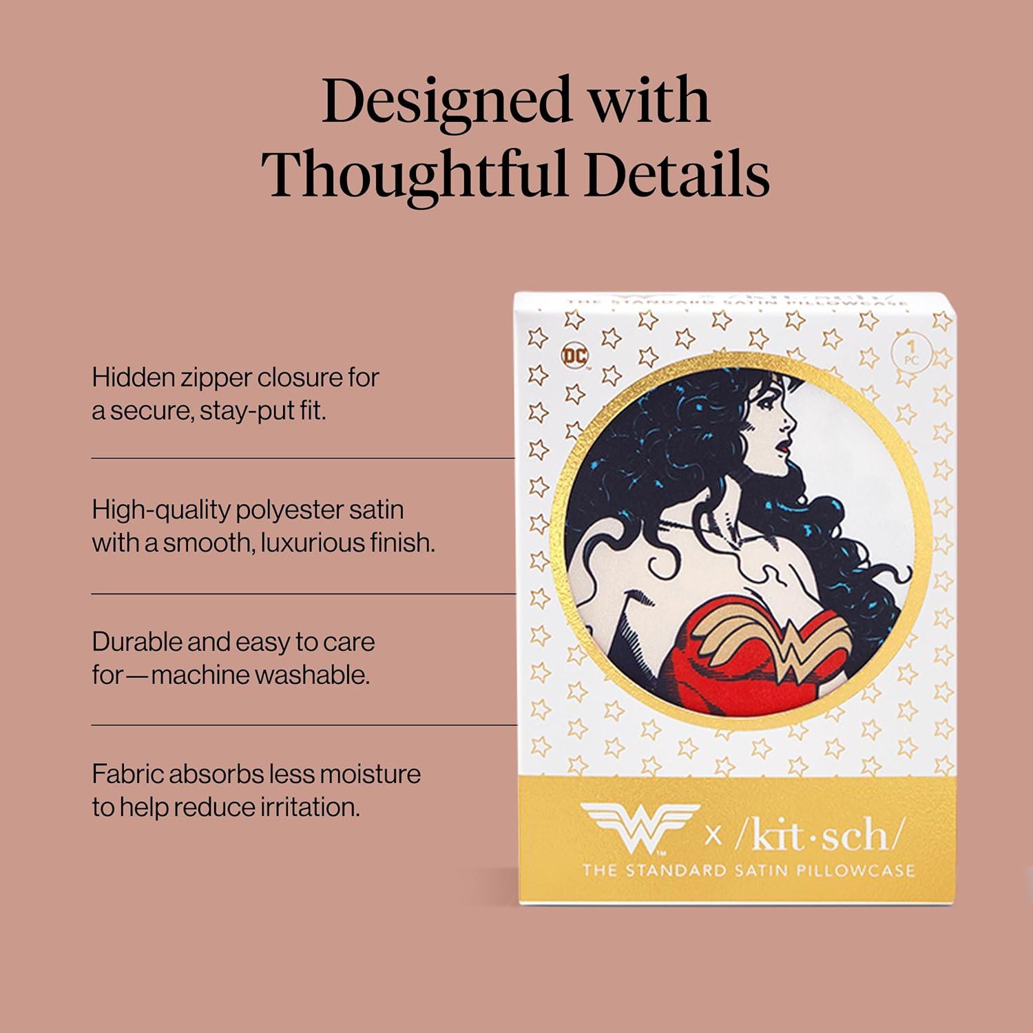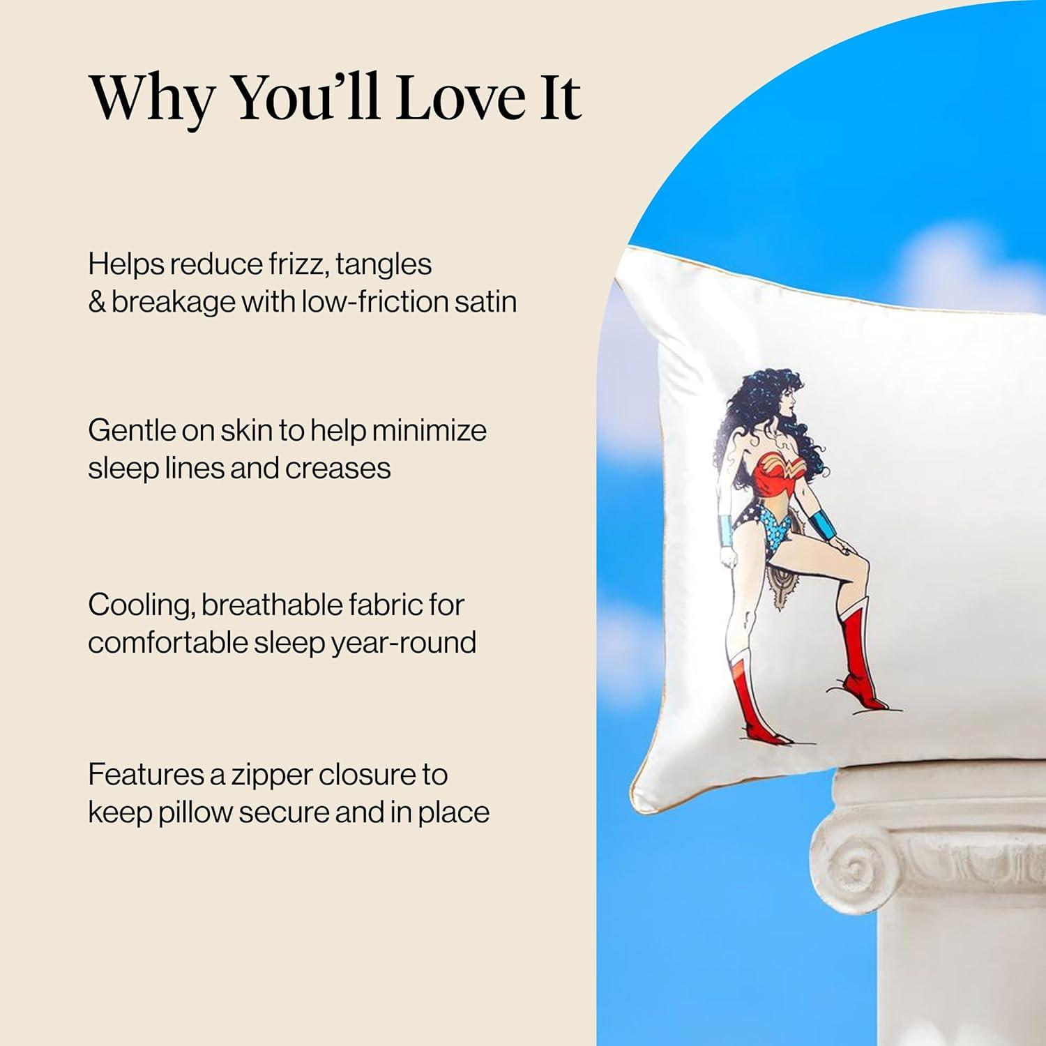 Bridgerton x Kitsch Satin Pillowcase with Zipper for Hair & Skin - Softer Than Silk Pillow Cases, Smooth Cooling Satin Pillow Case, Wrinkle-Free Pillow Cases Standard Size (19x26) - Wisteria(Wonder Woman - Believe in Wonder)