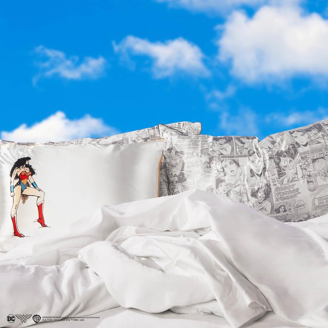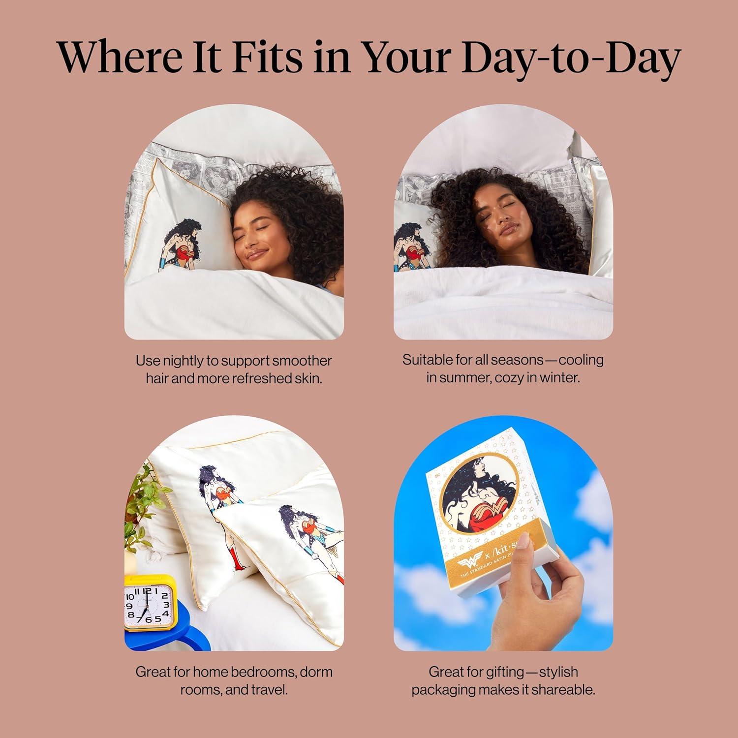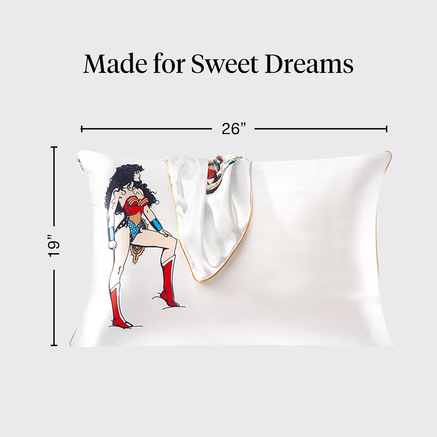 Bridgerton x Kitsch Satin Pillowcase with Zipper for Hair & Skin - Softer Than Silk Pillow Cases, Smooth Cooling Satin Pillow Case, Wrinkle-Free Pillow Cases Standard Size (19x26) - Wisteria(Wonder Woman - Believe in Wonder)