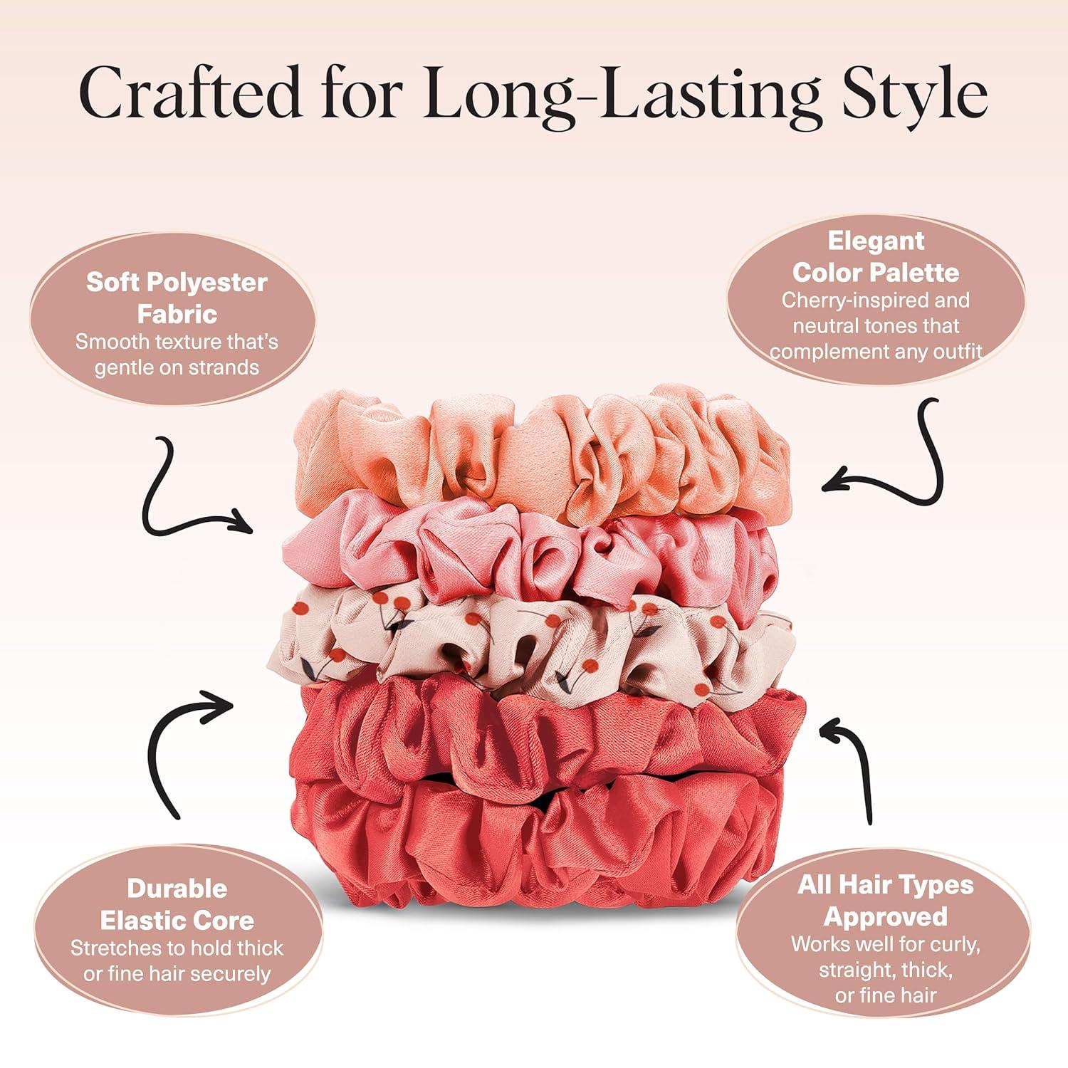 LUXURIOUS SATIN COMFORT: Kitsch satin scrunchies for women are crafted from smooth, premium satin designed to feel softer than silk scrunchies. This satin hair scrunchie helps reduce friction that can cause frizz, breakage, or creasing, making it a gentle alternative to traditional hair ties. Ideal for daily styling, sleep, or lounging, these satin scrunchies deliver all-day comfort while keeping hair polished and protected.