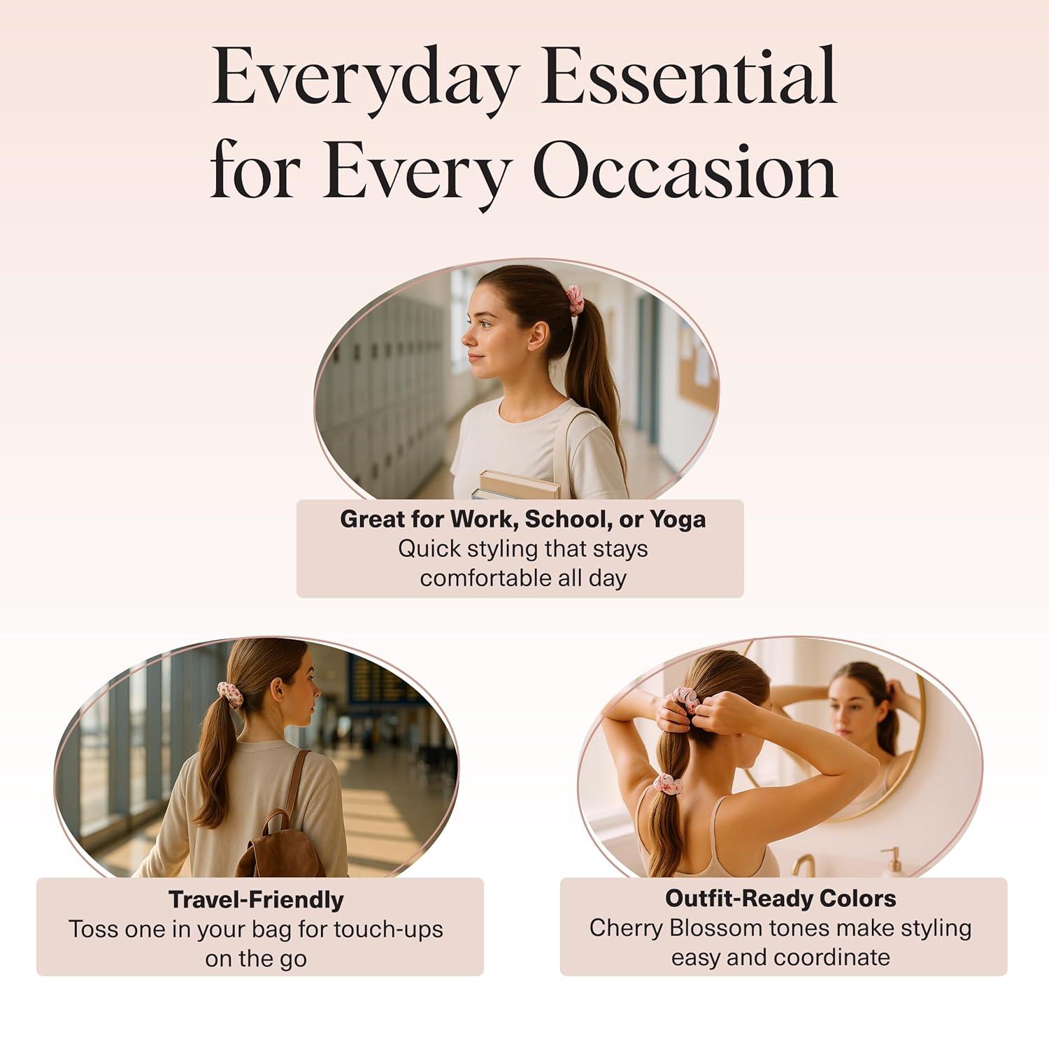 EVERYDAY ESSENTIAL FOR HEALTHY STYLING: Designed for repeat wear, this satin hair scrunchie helps minimize stress on strands during daily styling. Unlike standard hair ties, these satin scrunchies for women support gentle styling by reducing friction and tension. Use these satin hair scrunchies for workouts, errands, lounging, or sleep, knowing your hair scrunchie provides reliable hold without snagging. A versatile upgrade from basic hair ties scrunchies.