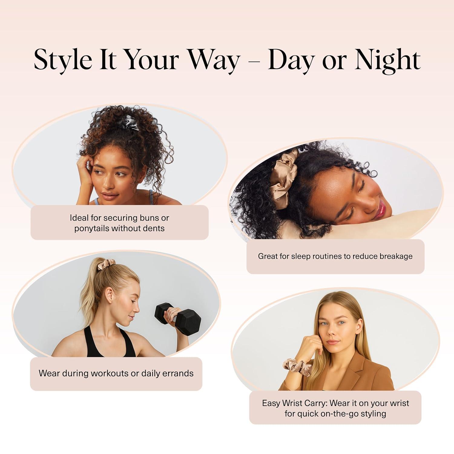 EVERYDAY ESSENTIAL FOR HEALTHY STYLING: Designed for repeat wear, this satin hair scrunchie helps minimize stress on strands during daily styling. Unlike standard hair ties, these satin scrunchies for women support gentle styling by reducing friction and tension. Use these satin hair scrunchies for workouts, errands, lounging, or sleep, knowing your hair scrunchie provides reliable hold without snagging. A versatile upgrade from basic hair ties scrunchies.