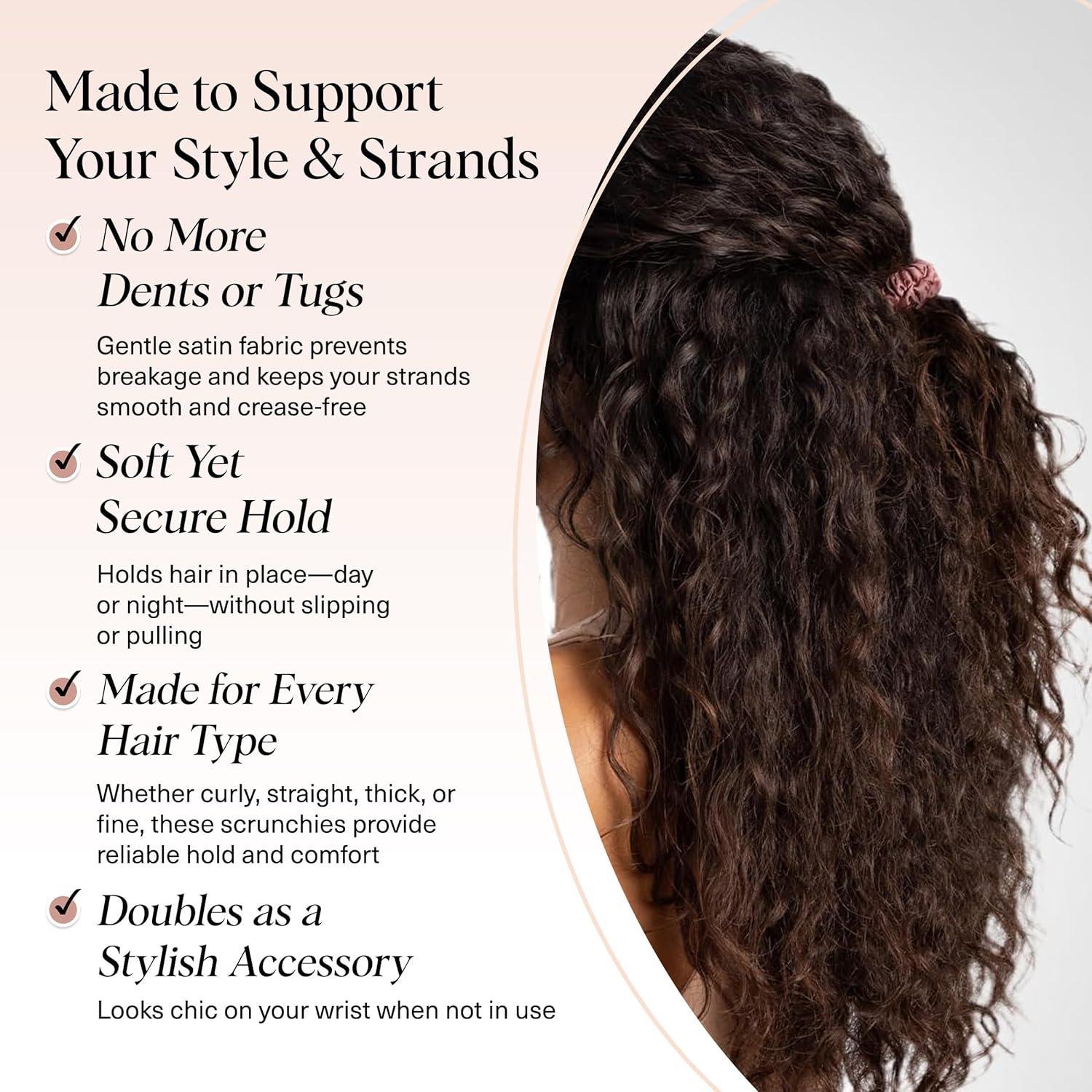PERFECT FOR ALL HAIR TYPES: From fine strands to thick curls, these satin scrunchies for women are made to adapt comfortably to every hair texture. The lightweight satin hair scrunchie holds hair in place without slipping or feeling tight, making it a versatile hair scrunchie option for straight, wavy, curly, or coily hair—day or night.