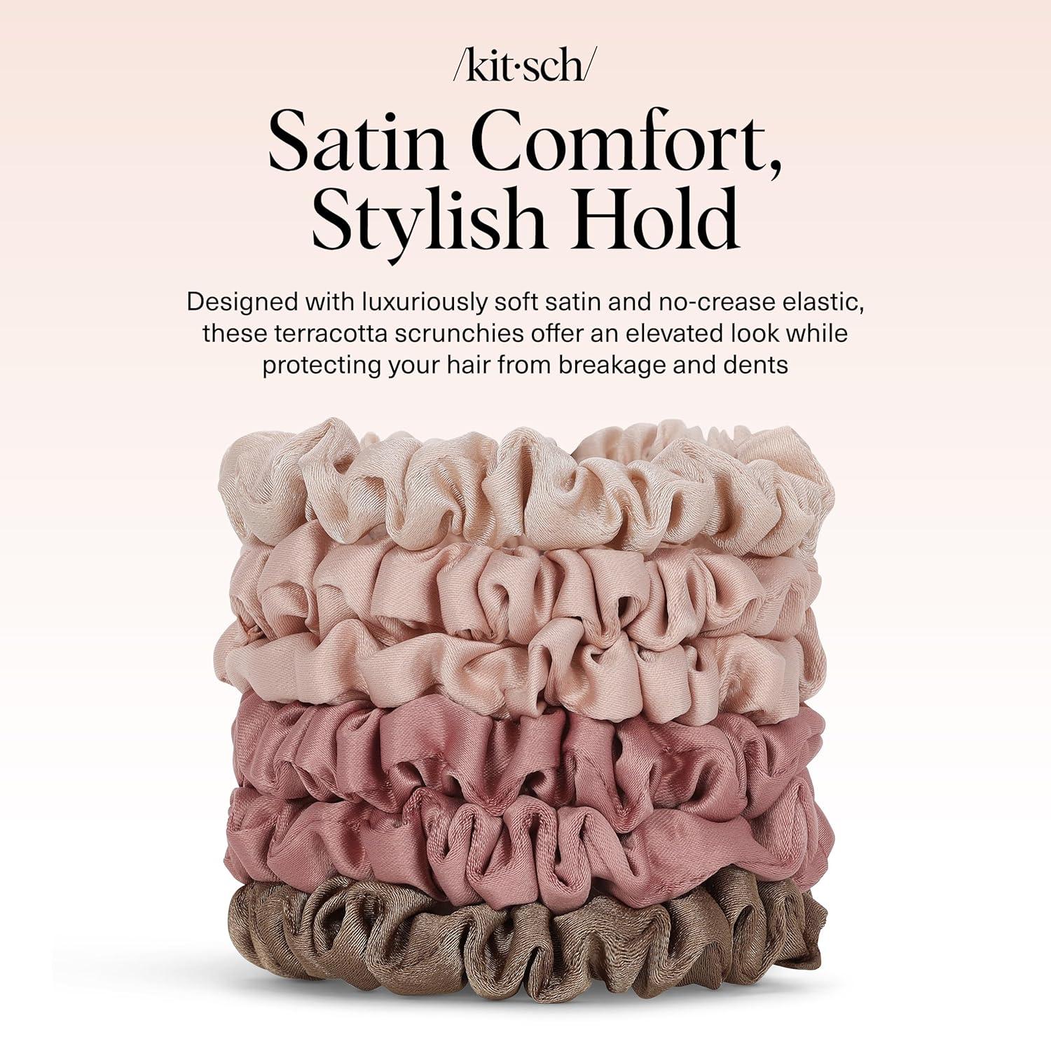 LUXURIOUS SATIN COMFORT: Kitsch satin scrunchies for women are crafted from smooth, premium satin designed to feel softer than silk scrunchies. This satin hair scrunchie helps reduce friction that can cause frizz, breakage, or creasing, making it a gentle alternative to traditional hair ties. Ideal for daily styling, sleep, or lounging, these satin scrunchies deliver all-day comfort while keeping hair polished and protected.