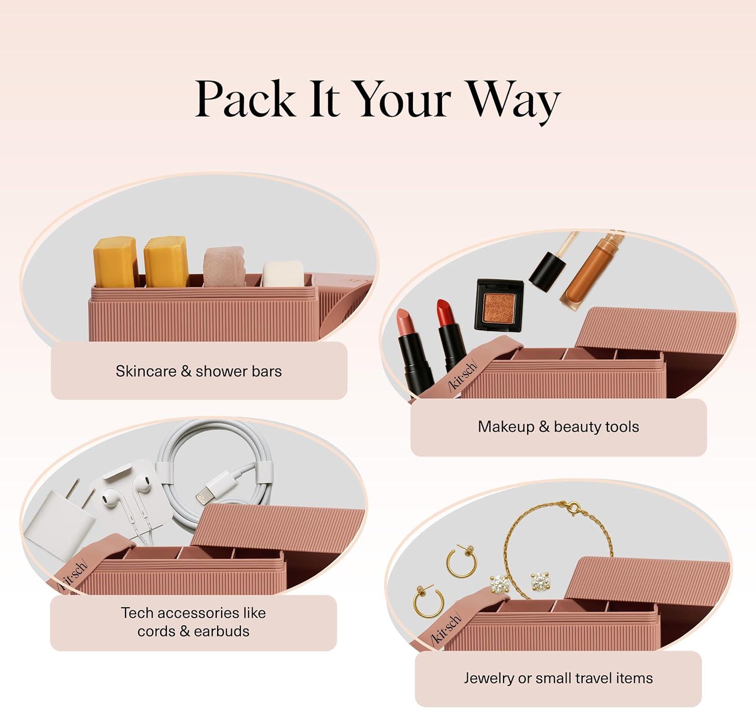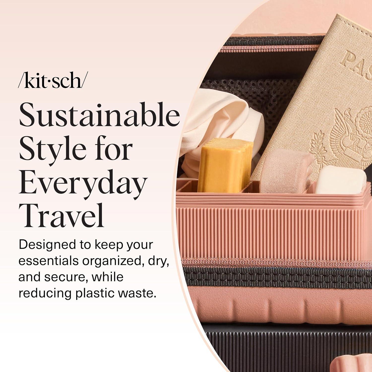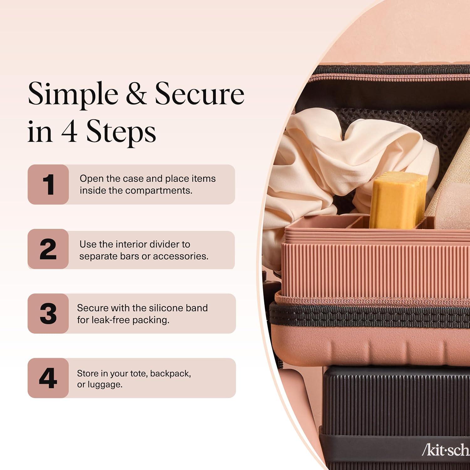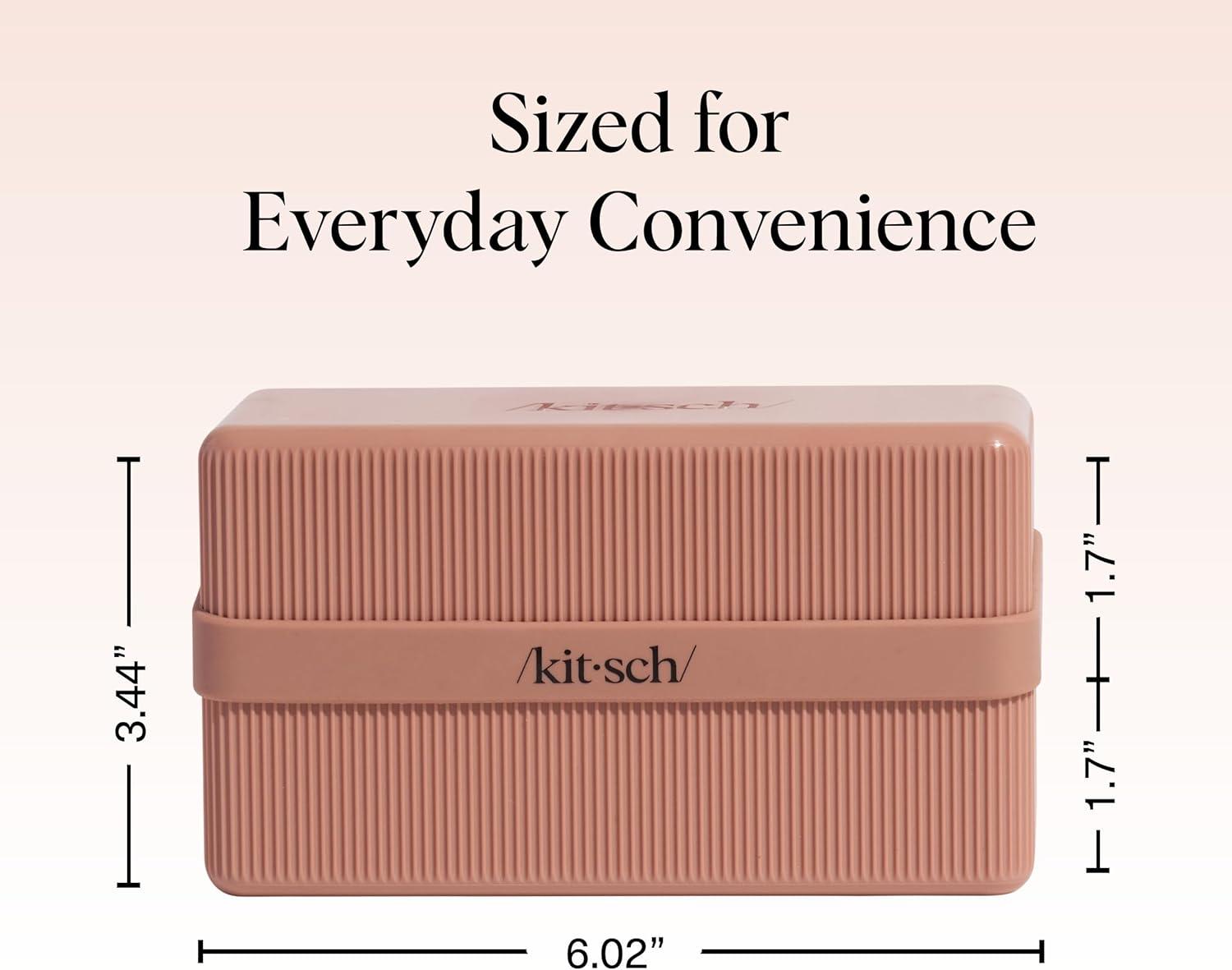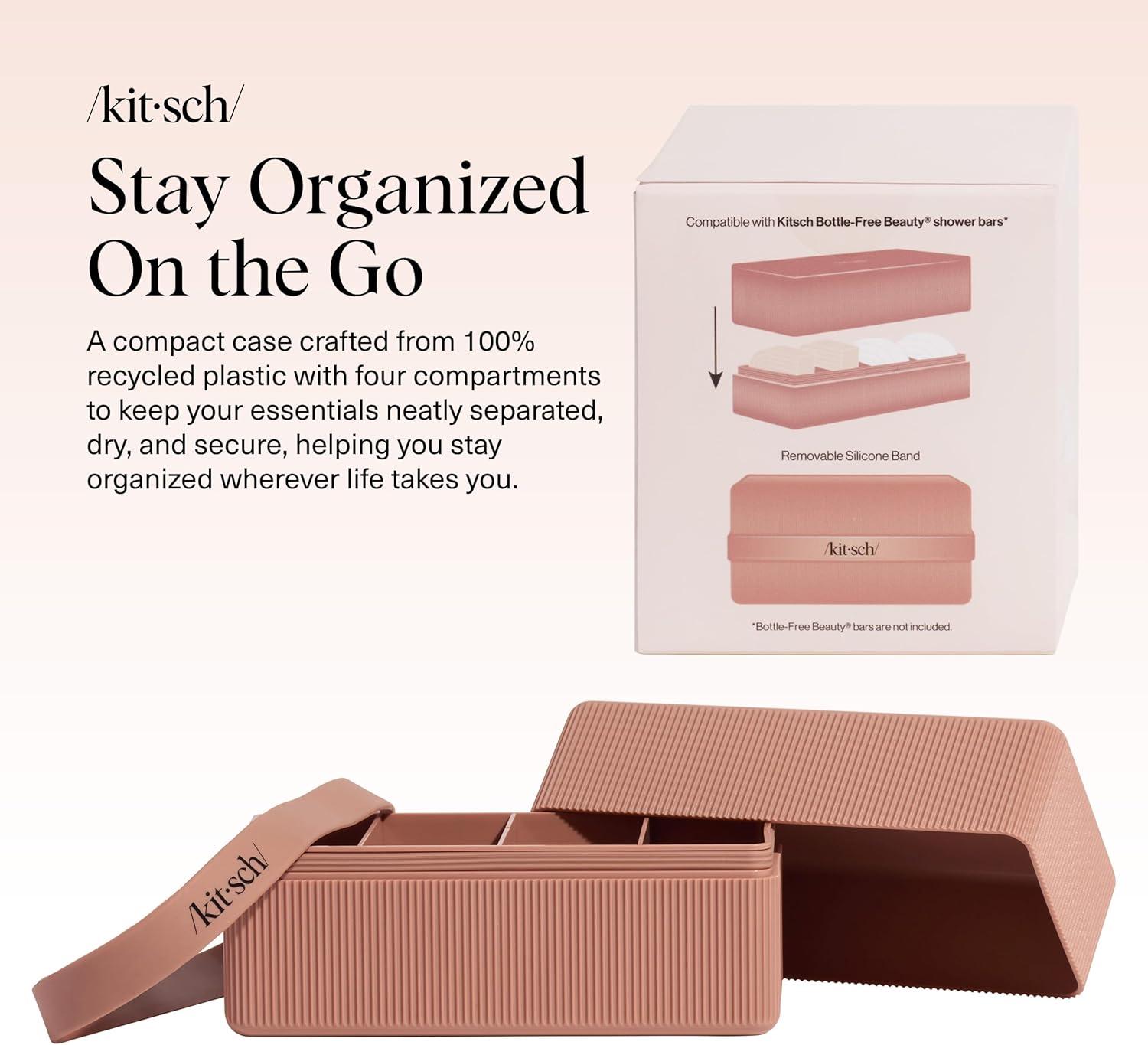 4 Reasons to Pack Your Kitsch Travel Case Beauty On-the-Go TSA-friendly size ensures your Kitsch bars travel with you, dry and secure. Sleek Leak-Proof Design Chic and functional with a silicone band for mess-free journeys. Functional Divider Keeps bars apart, ensuring they stay dry and last longer. Eco Travel Pro Journey sustainably with a case crafted from 100% recycled plastic.