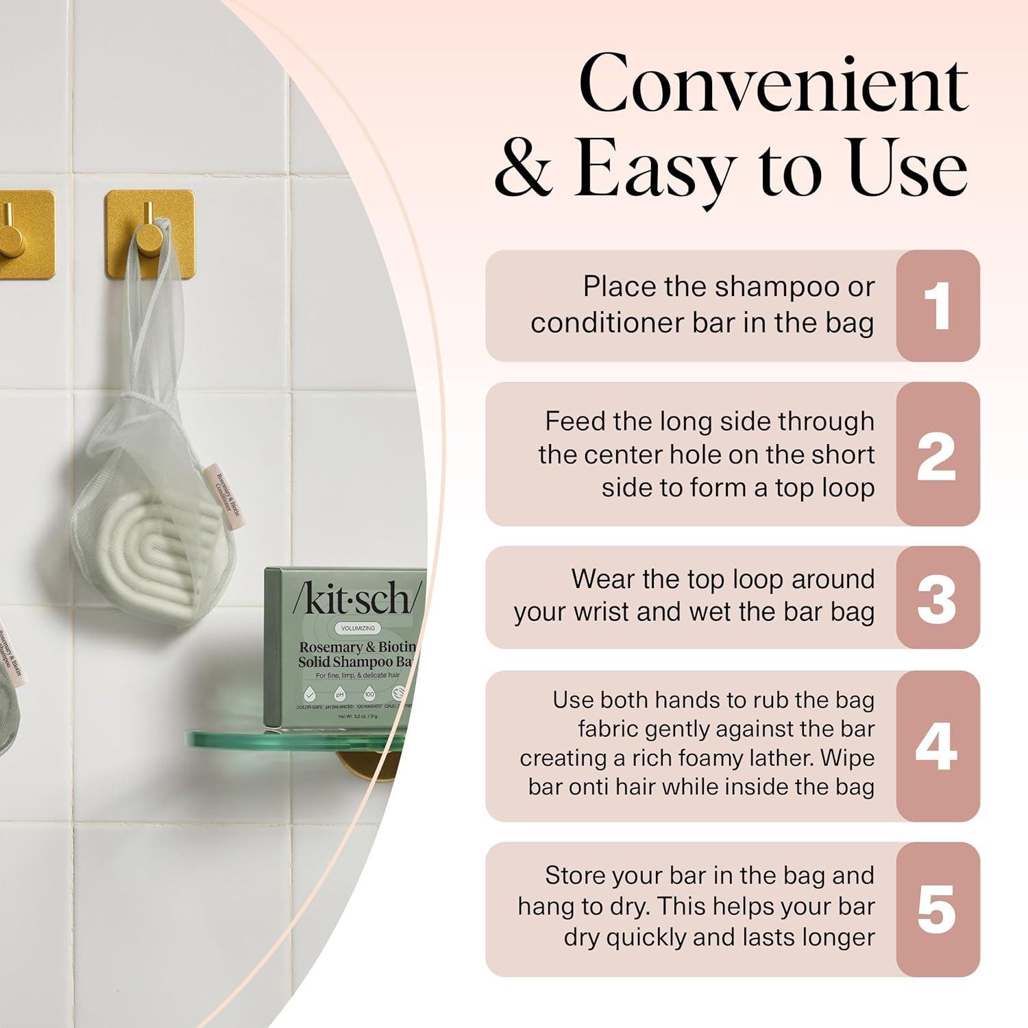 Kitsch Bar Soap Saver Bag – Patented Mesh Bag Soap Holder for Castor Oil Shampoo Bar with Tag Identifier – Extends Use & Prevents Soggy Mess – Recycled Mesh Beauty Pouch, Eco-Friendly(Rosemary & Biotin Conditioner Bar Bag)