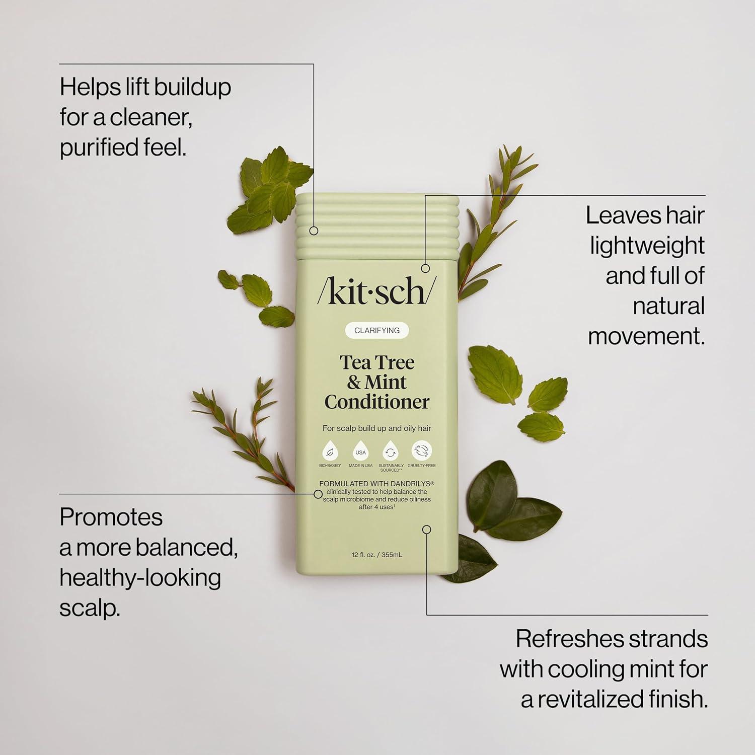 imageKitsch Clarifying Tea Tree Liquid Conditioner for Women amp Men  Lightweight Hydration Hair Conditioner with Peppermint amp Tea Tree Oil for Oily Hair amp Scalp Buildup  Made in USA Hair Care  12 oz