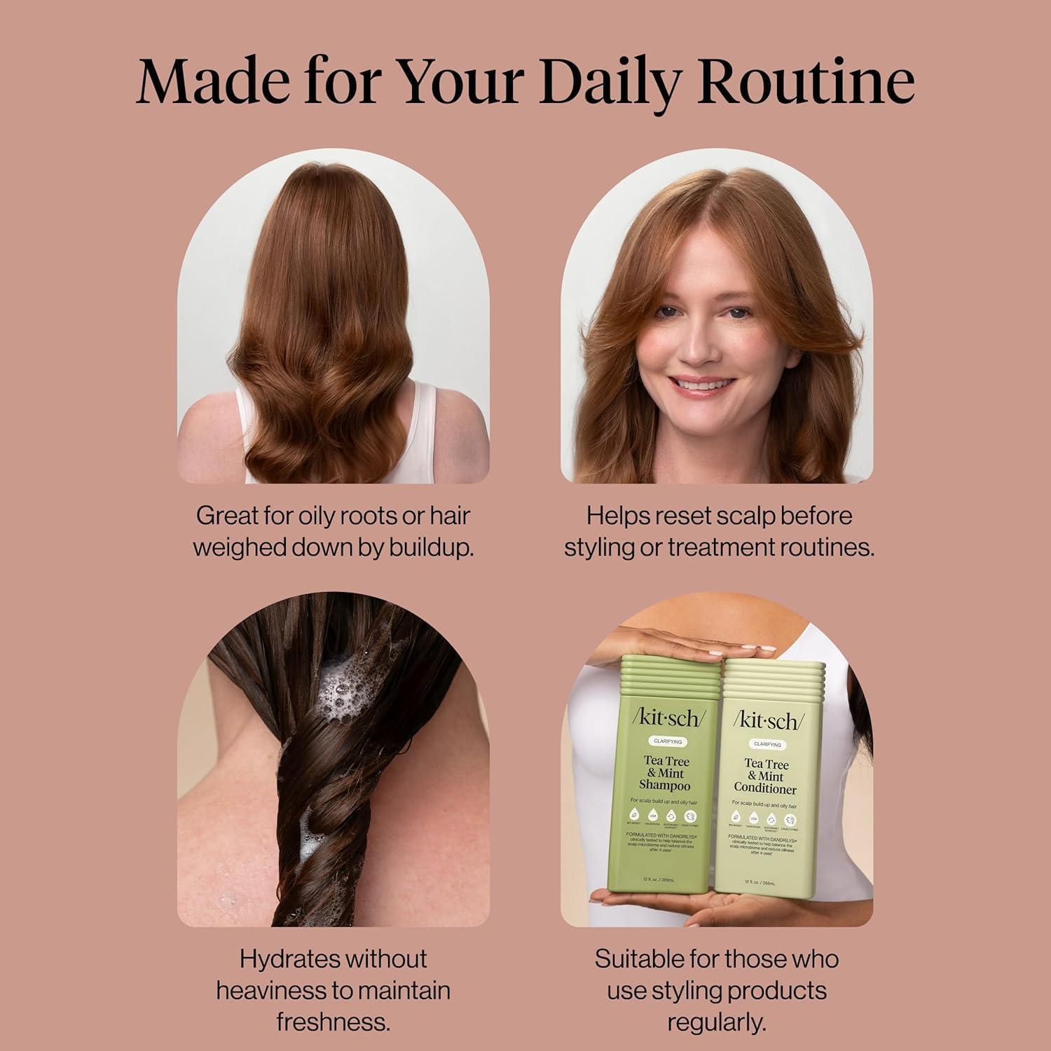 Kitsch Clarifying Tea Tree Liquid Conditioner for Women & Men – Lightweight Hydration Hair Conditioner with Peppermint & Tea Tree Oil for Oily Hair & Scalp Buildup – Made in USA Hair Care – 12 oz