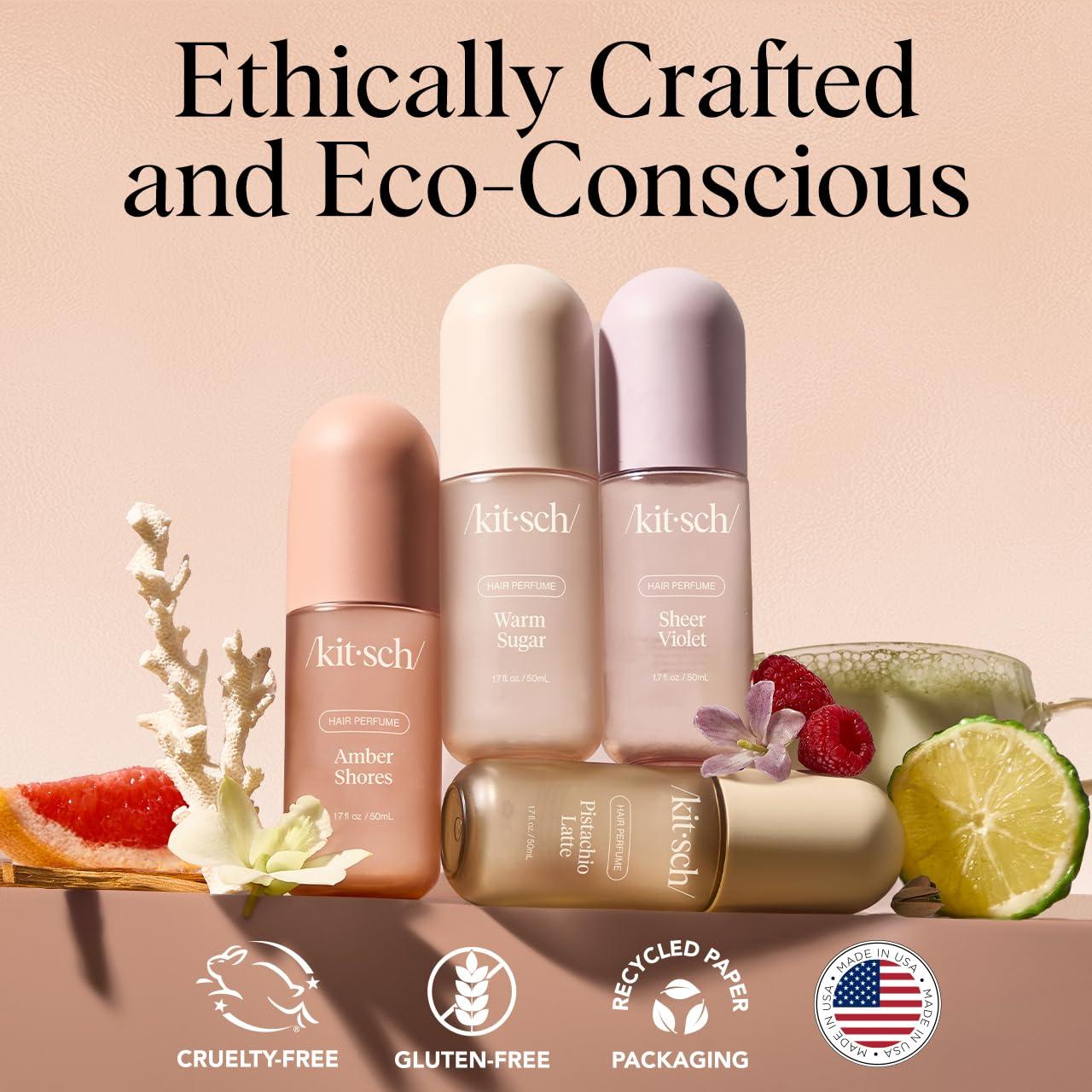 Kitsch Hair Perfume for Women - Amber Shores | Clean, Deodorizing & Patented Odor-Eliminating Technology Hair Spray & Body Mist - Freshen Hair, Body & Pillows - Woody Aquatic Scent - 50mL(Warm Sugar)
