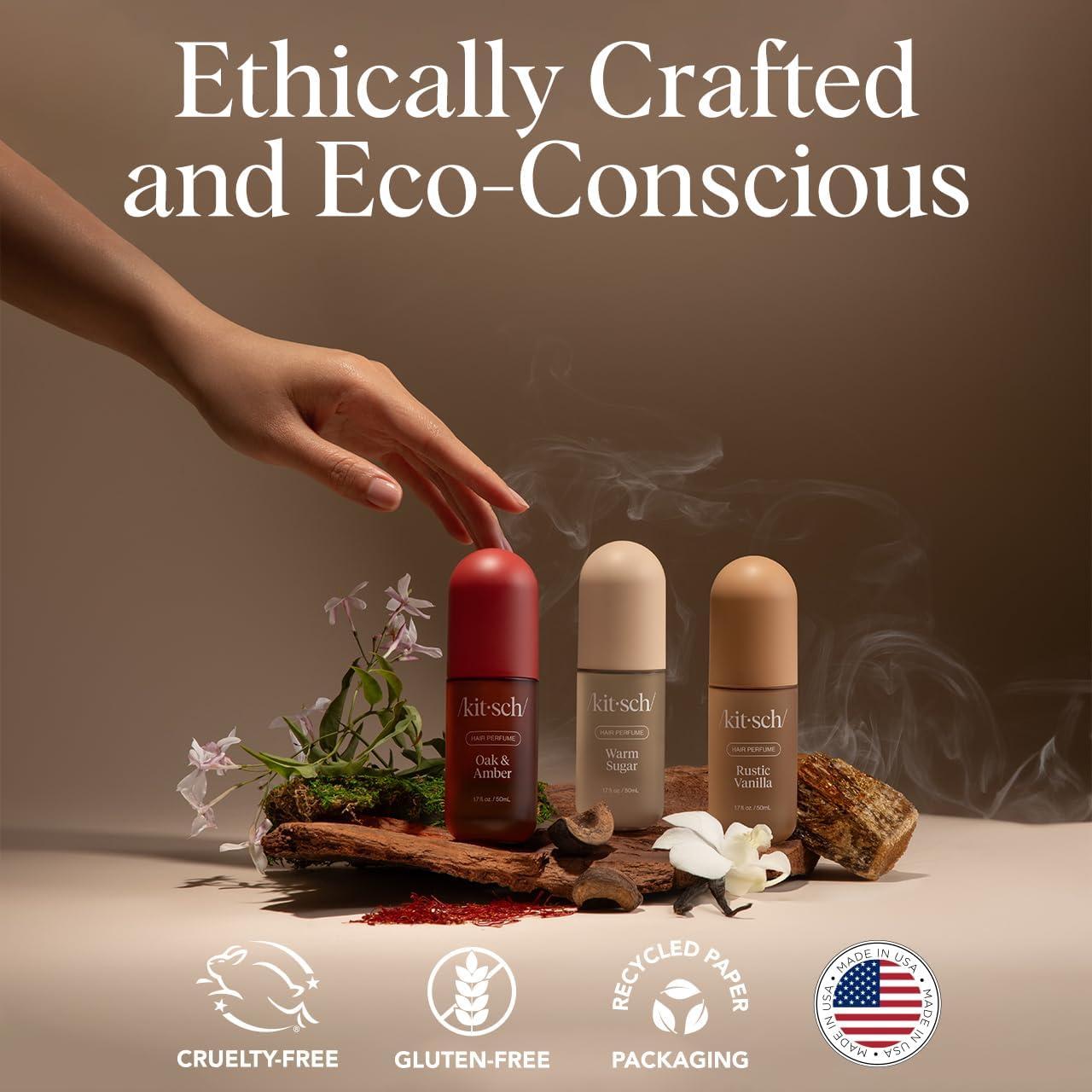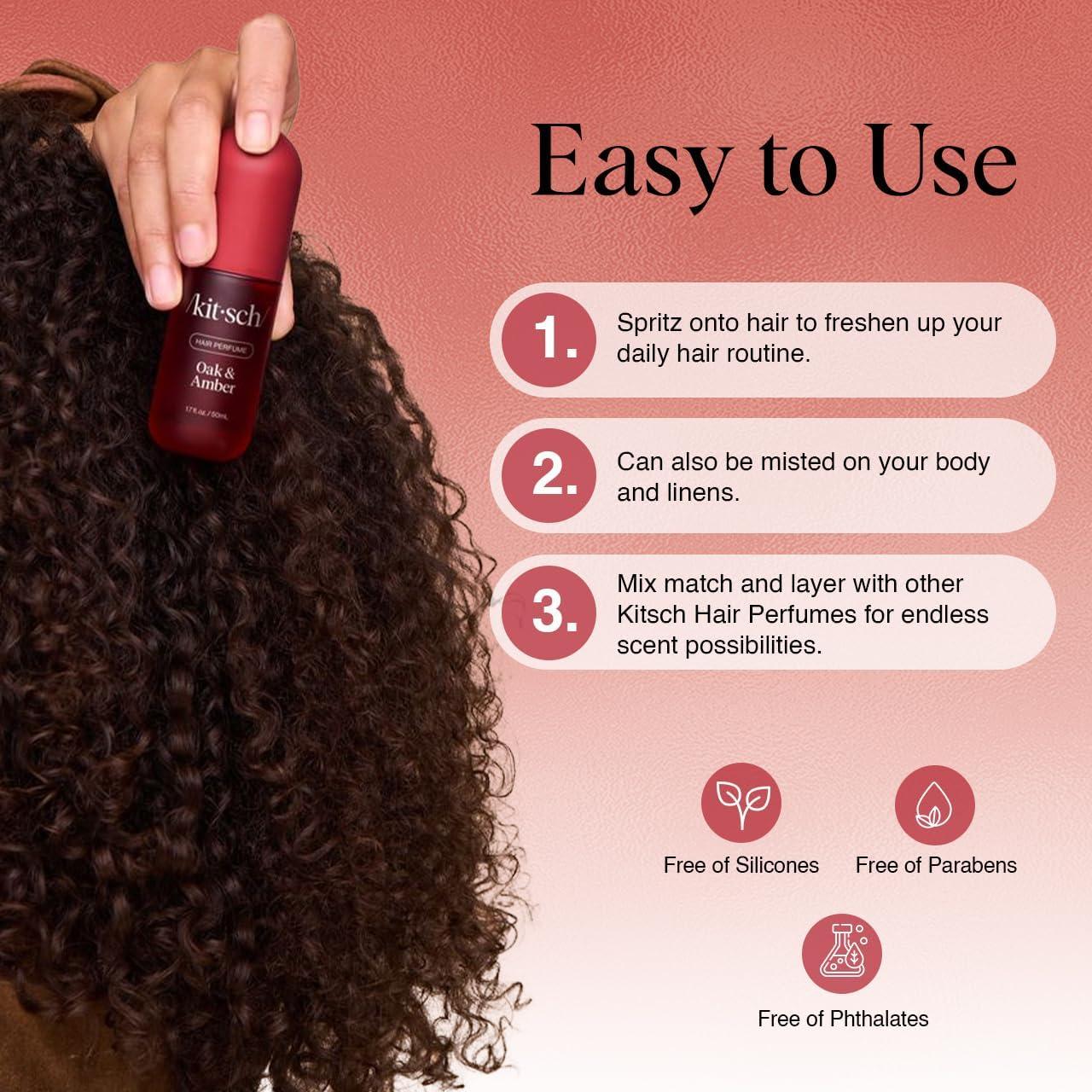 SMOKY & SULTRY SCENT: Indulge in the luxurious aroma of Kitsch Oak & Amber hair perfume for women, blending warm oak and amber with ripe berries and soft jasmine. This long-lasting hair fragrance spray for women wraps strands in a smoky, sophisticated scent that lingers all day. A few spritzes of this hair mist perfume leave hair soft, touchable, and effortlessly elegant from morning to night without feeling heavy or sticky.