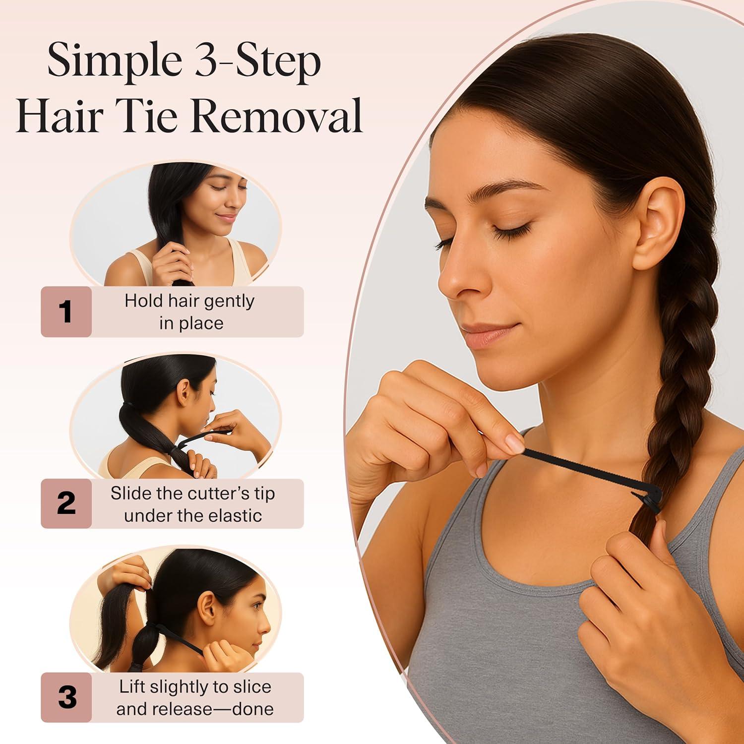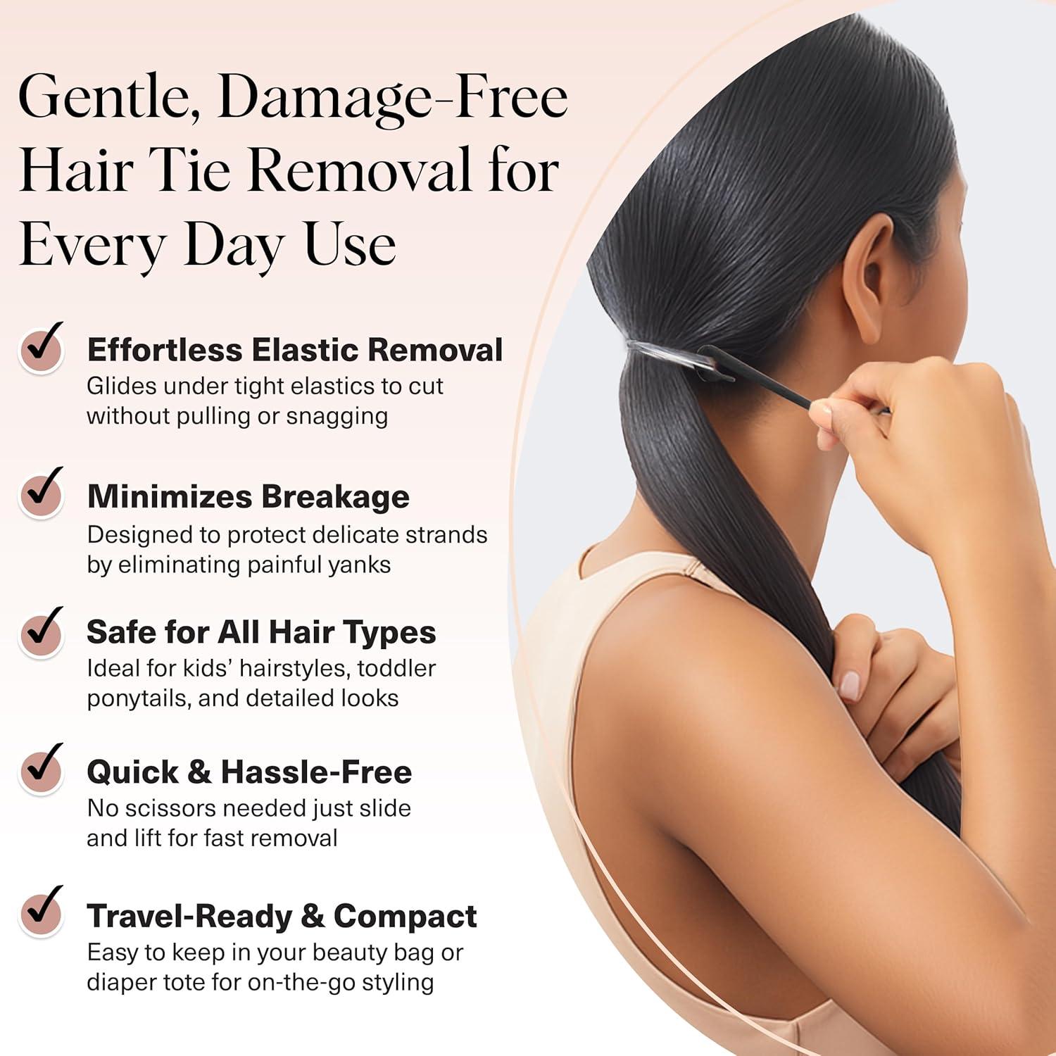 STRESS-FREE STYLING FOR ALL AGES: From toddler hair accessories to everyday hair accessories for girls, this tool simplifies every routine. Use it as a hair tie cutter for kids, a hair elastic cutter for fine strands, or to safely remove hair elastics for toddler girls. This elastic hair tie cutter tool keeps every styling moment smooth, safe, and snag-free.
