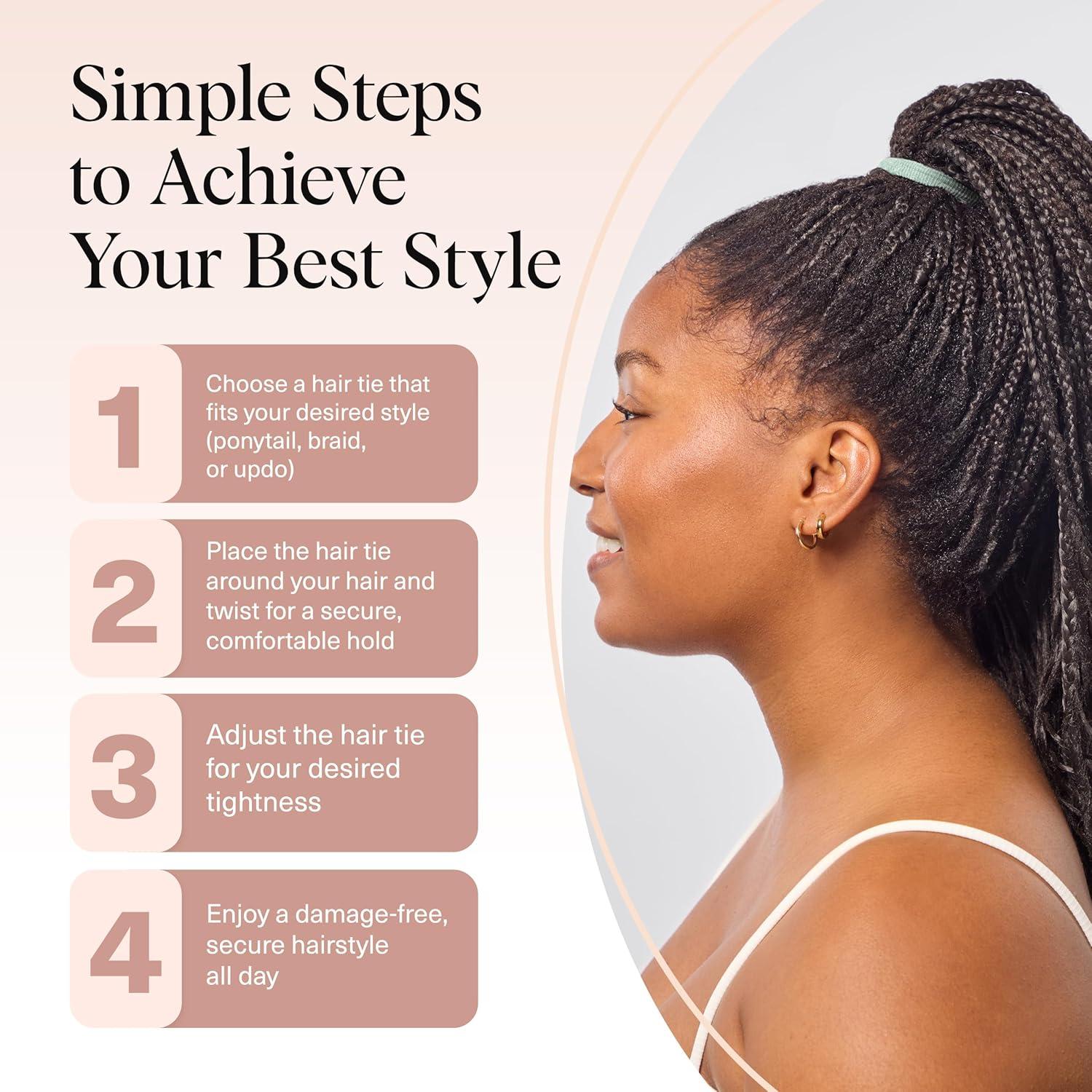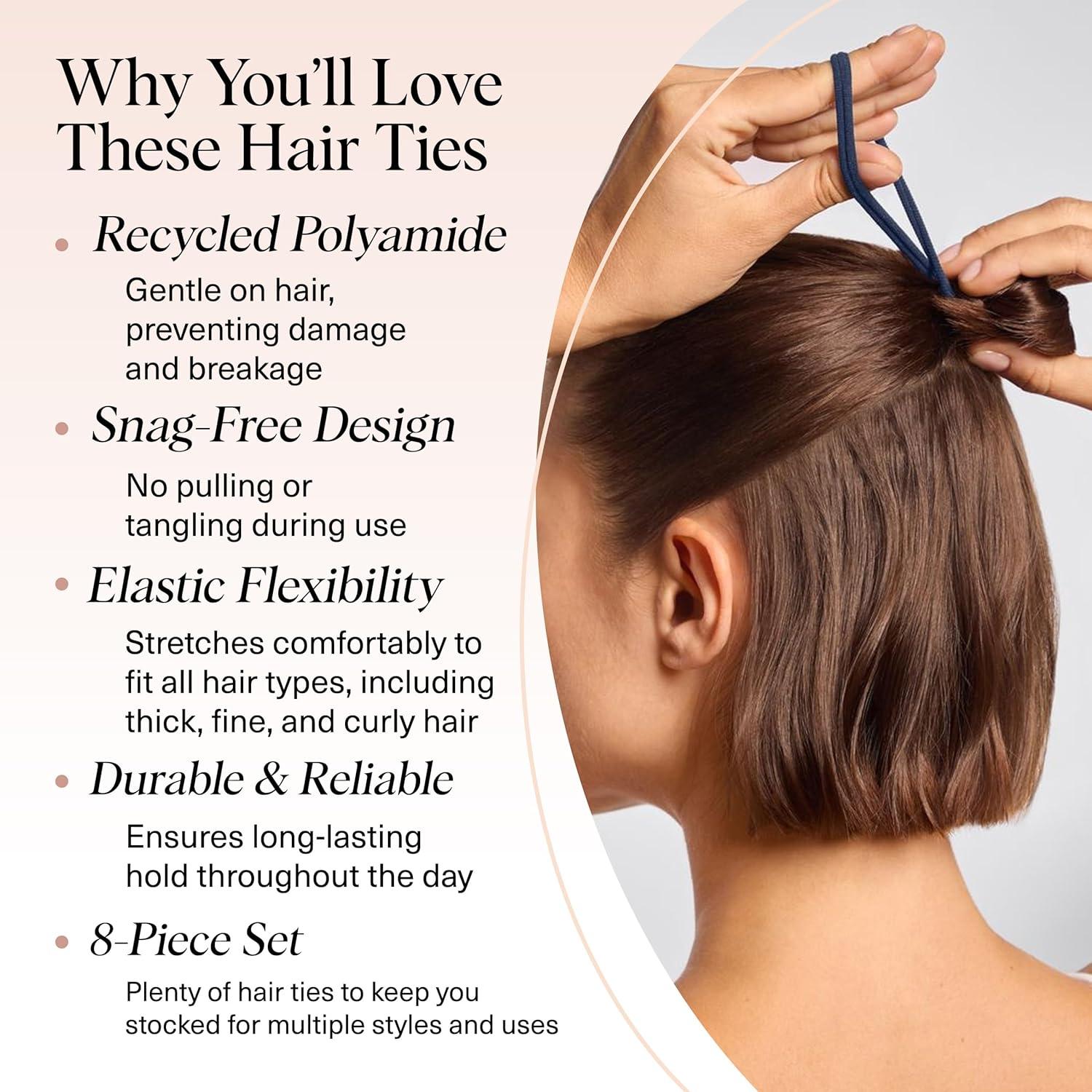 ALWAYS READY: Never run out of hair ties with this 8-piece set of damage-free, no tangle hair ties. Designed for ponytails, braids, and updos, these no breakage rubber bands are perfect for all hair types. Keep them handy at home, in your car, or your bag for quick, on-the-go styling. These seamless, no damage hair ties ensure your hairstyles stay secure and comfortable, no matter the occasion, making them the perfect all-in-one hair accessory.