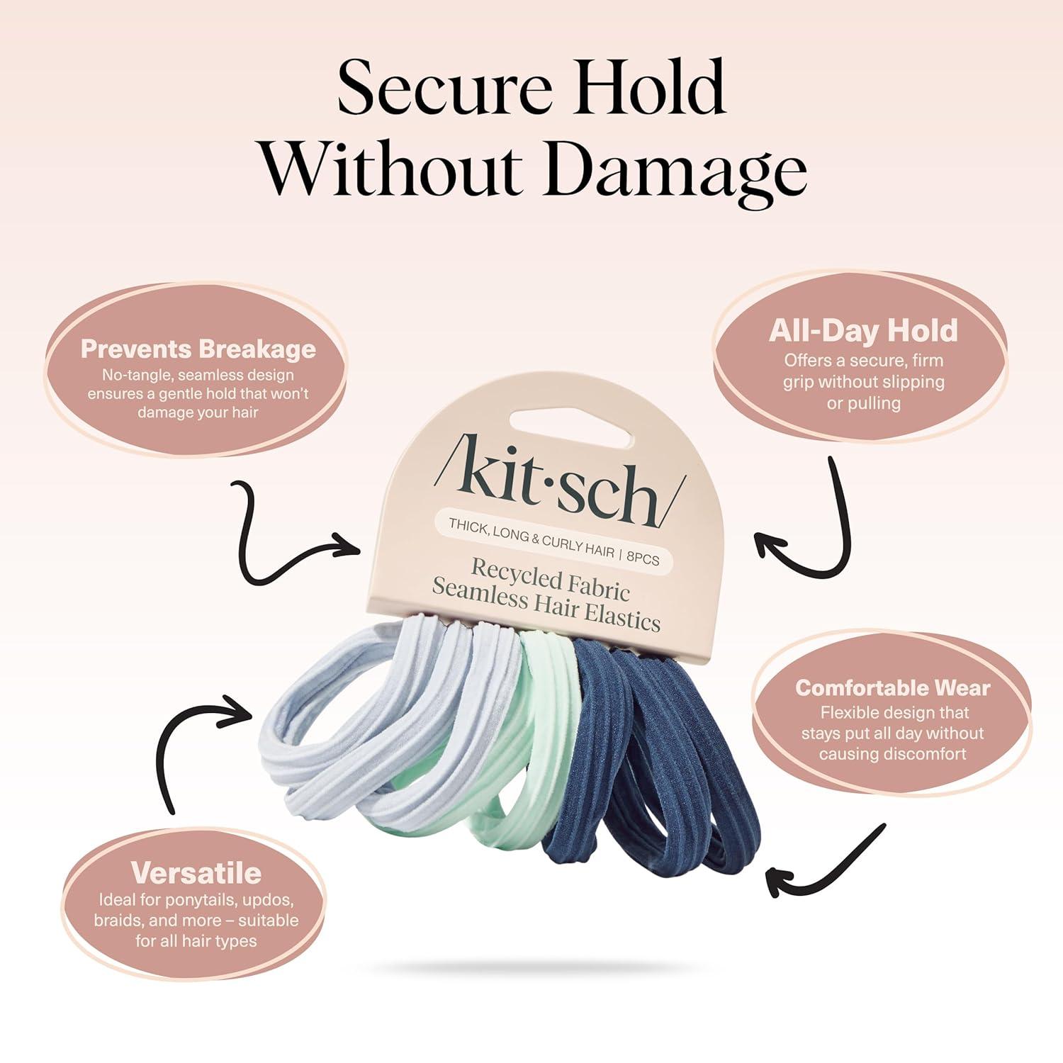 Kitsch Hair Ties No Damage – Strong, Stretchy Hair Bands | Soft Nylon Ponytail Holders, Snag-Free Rubber Bands, Perfect for Updos & Braids | Ideal Gifts for Women – Black, 8pcs(Eucalyptus (Pack of 20))