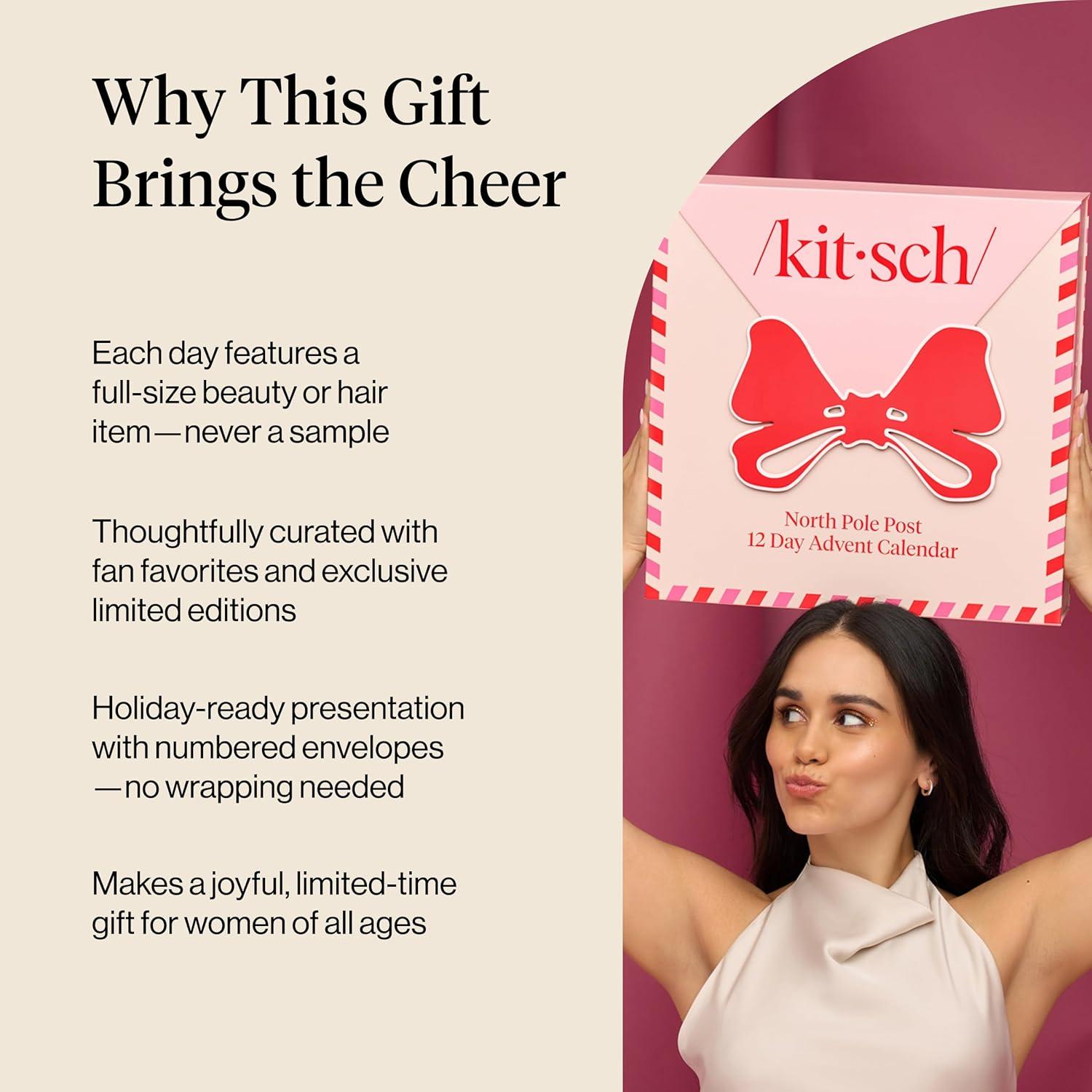 12 DAYS OF FULL-SIZE SURPRISES – Unwrap festive fun with the Kitsch North Pole Post advent calendar. Each day reveals a full-size beauty or hair essential—never samples—making it a must-have advent calendar 2025.