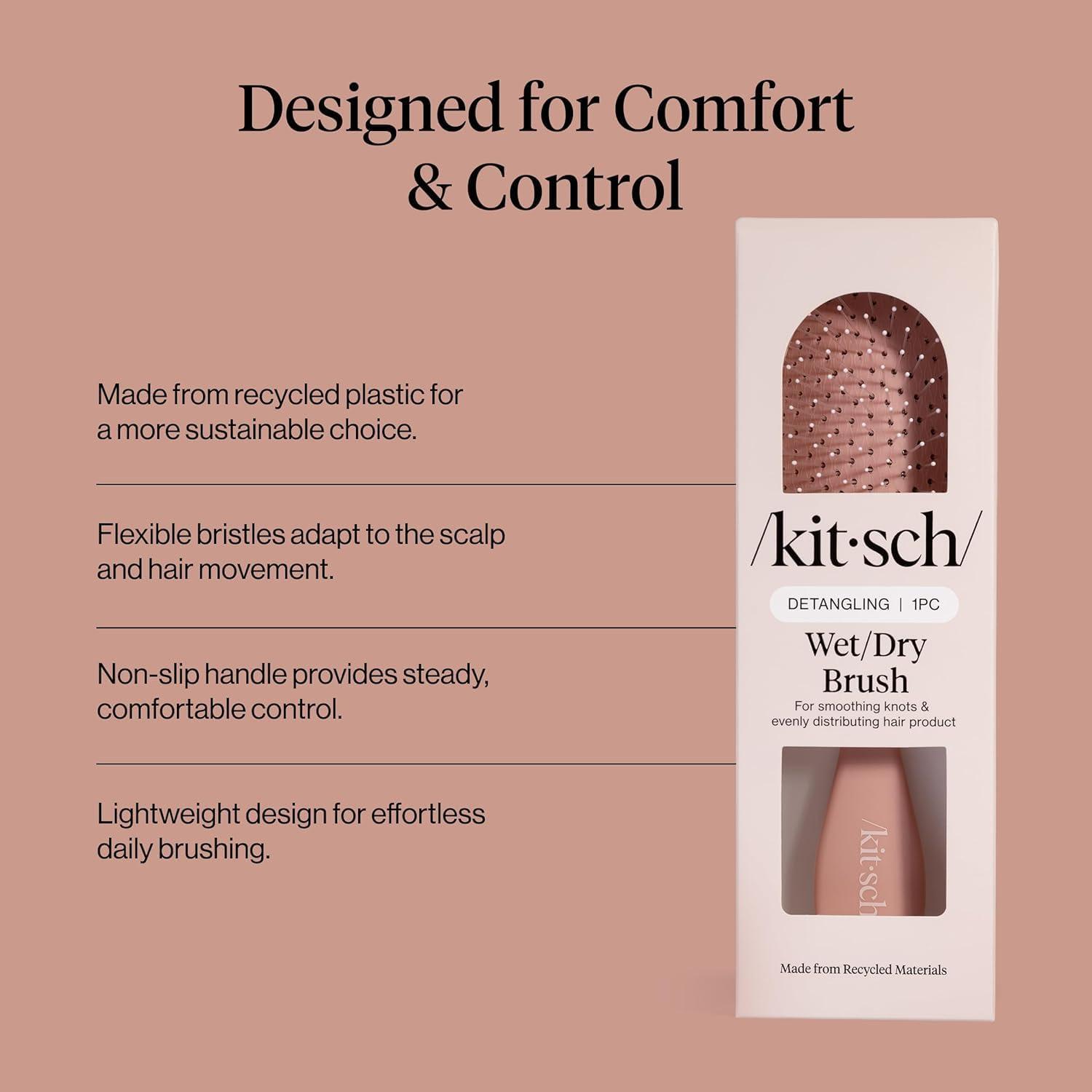 Kitsch Recycled Plastic Wet/Dry Hair Brush, Detangling Tool for Curly or Straight Styles, Brush for Tangled Strands, Flexible Hairbrush Bristles, Brushes for Women & Men, Adults & Kids – Soft Violet(Terracotta)