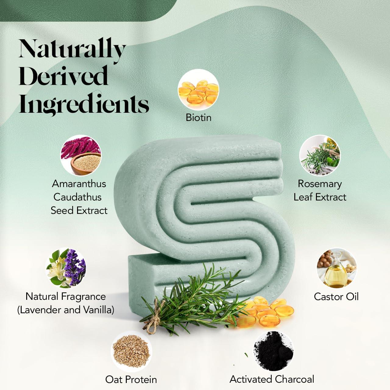 SAFE & GENTLE FOR ALL HAIR TYPES — pH balanced and free from parabens, phthalates, silicones, and sulfates, this vegan, cruelty-free shampoo bar is safe for color-treated hair and leaves no residue, offering a clean, gentle wash every time.