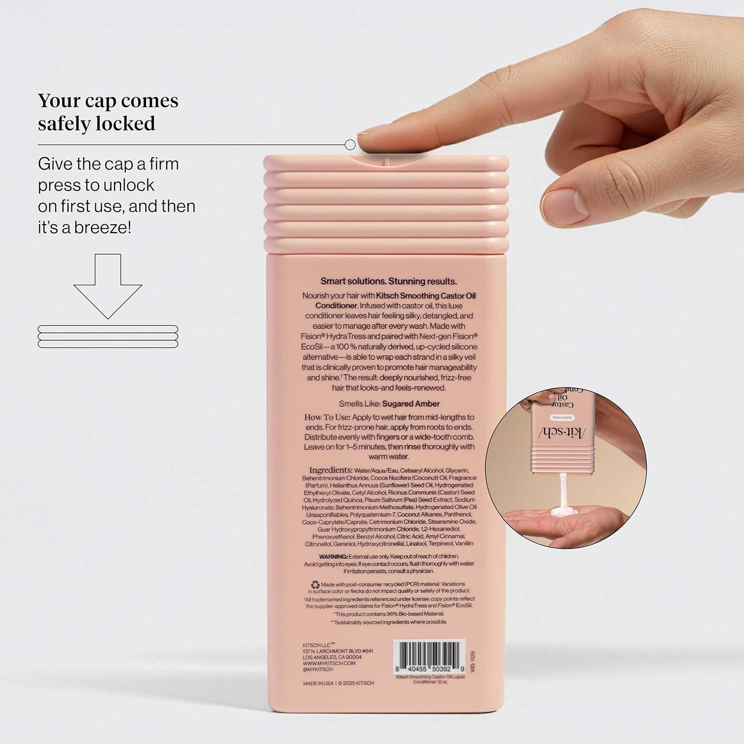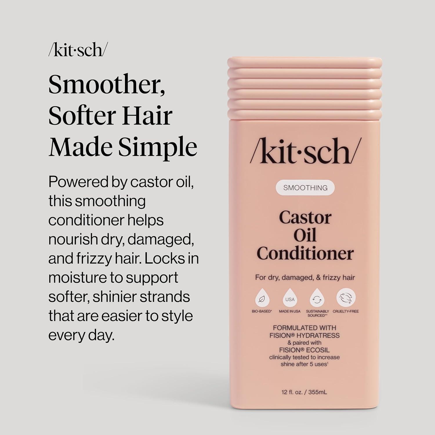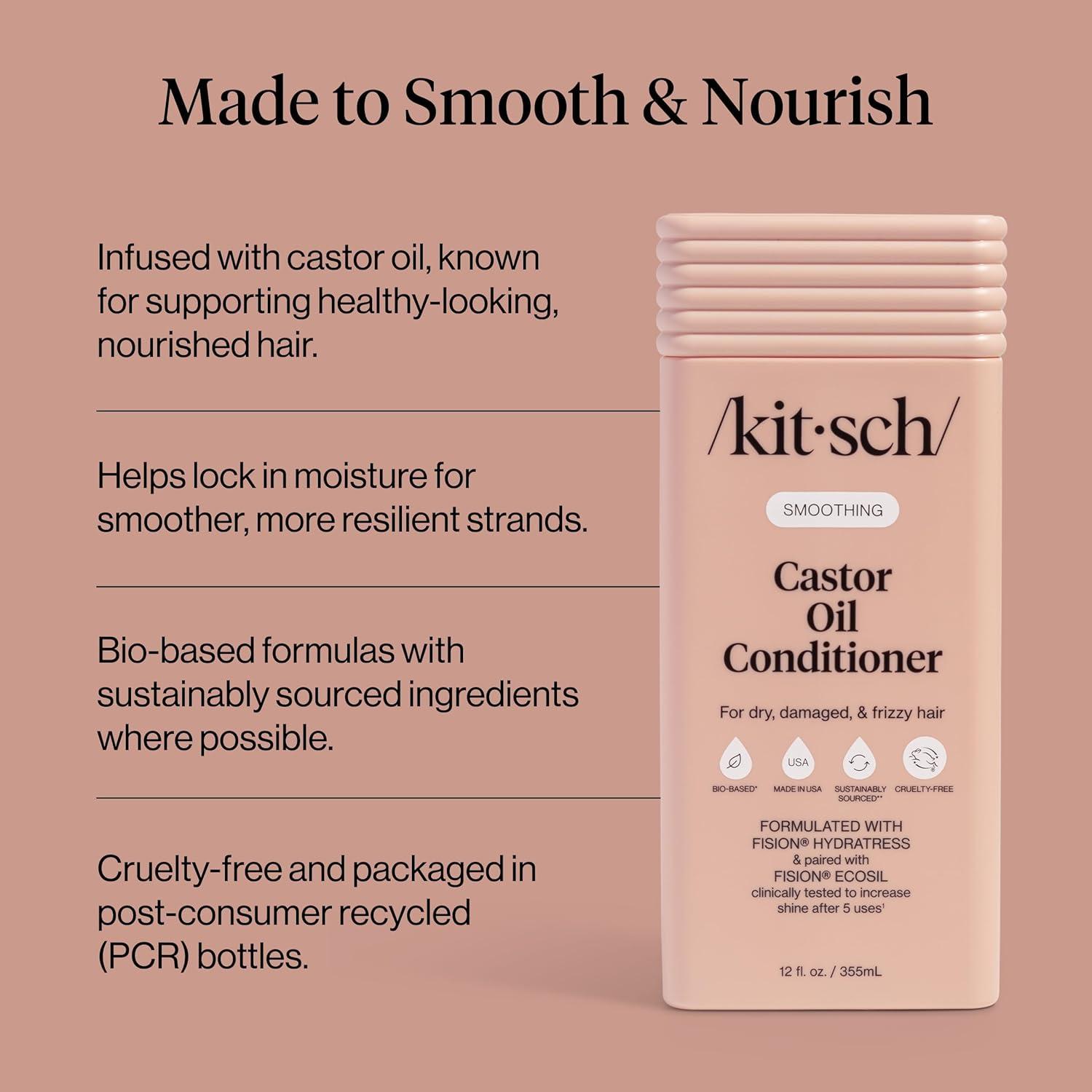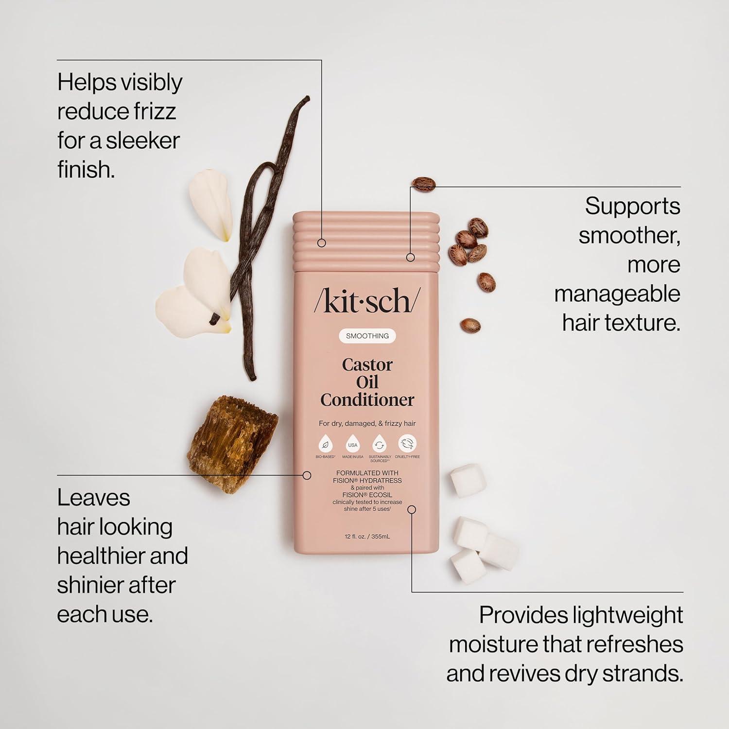 Kitsch Smoothing Castor Oil Liquid Conditioner for Women and Men – Nourishing Hair Conditioner for Dry, Damaged & Frizzy Hair – Clean, Color-Safe Hair Care, Bio-Based Formula, Made in USA – 12 oz