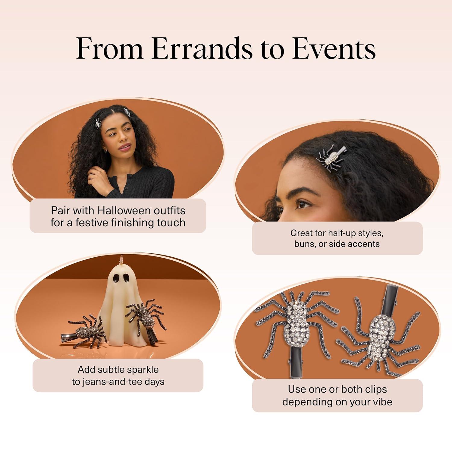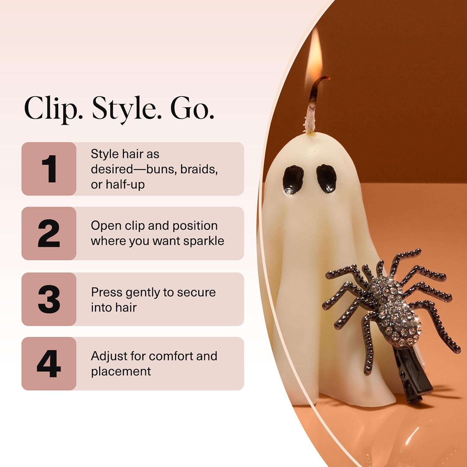 DAZZLING RHINESTONE SHINE: Bring instant sparkle to any hairstyle with these rhinestone spider hair clips for women, designed to catch the light beautifully from every angle. Each decorative barrette adds playful glam that pairs effortlessly with everyday outfits, work looks, or special occasions. A must-have addition to trendy hair accessories for women, girls, and teens who love stylish, eye-catching pieces.