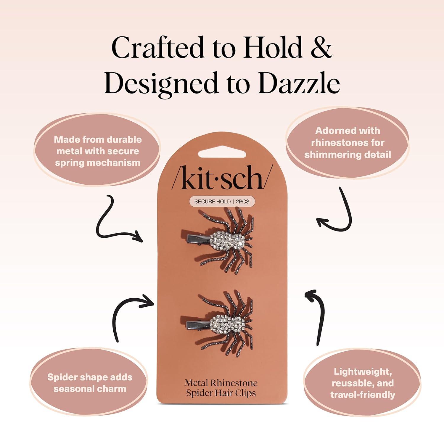 imageKitsch Spider Hair Clips for Women  Rhinestone Hair Accessories with Strong Grip  Sparkly Barrettes for Styling amp Everyday Hairstyles  Ideal Gifts for Women  2 PcsBlack Spider