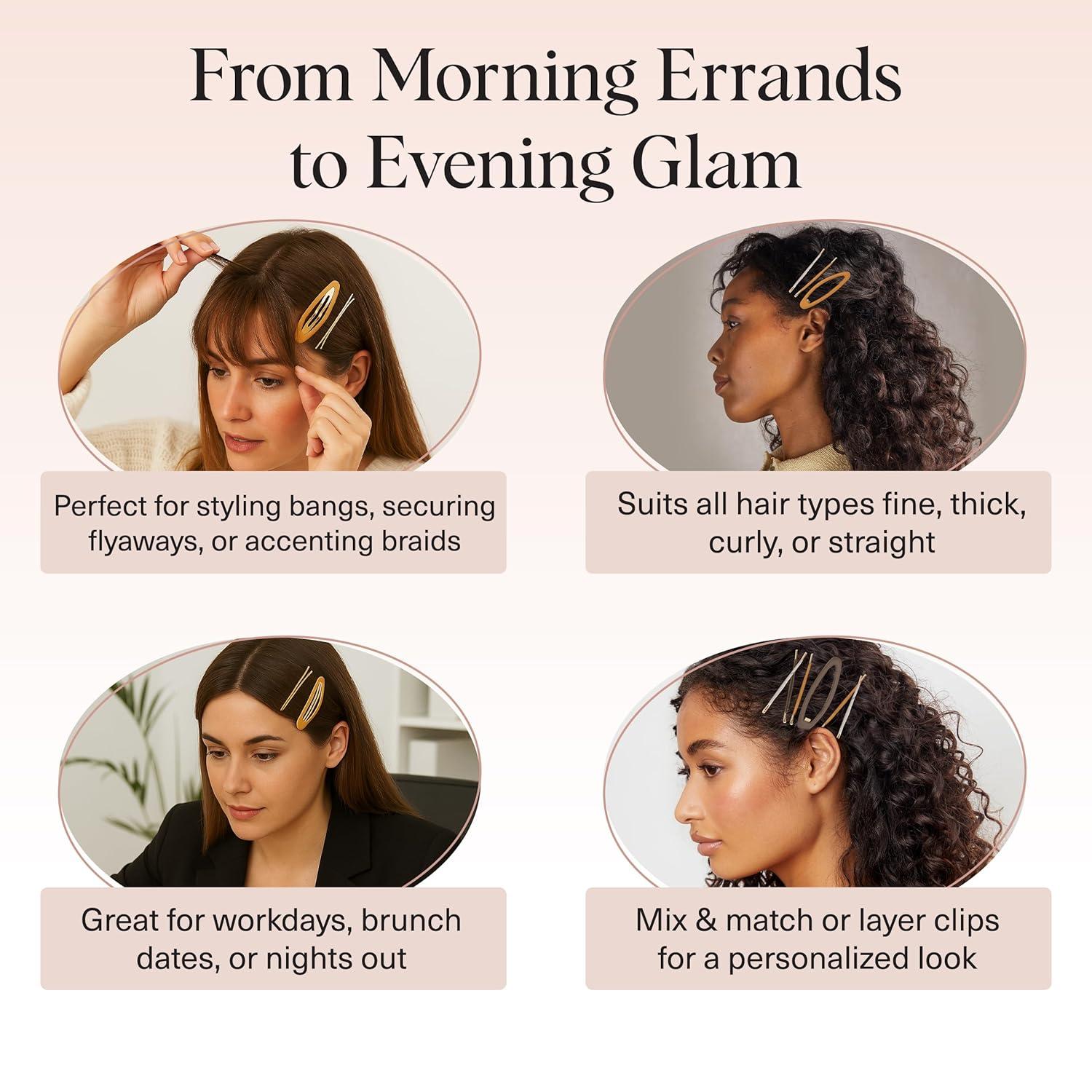 STRONG & SECURE ALL-DAY GRIP: Experience dependable hold with durable metal clips designed for thick, thin, fine, or textured hair. Each rhinestone hair clip features a strong grip that stays comfortably in place without slipping or snagging, making them perfect for daily wear, parties, events, or polished styling. These sparkly hair accessories deliver reliable security while keeping your look glam and effortless all day.