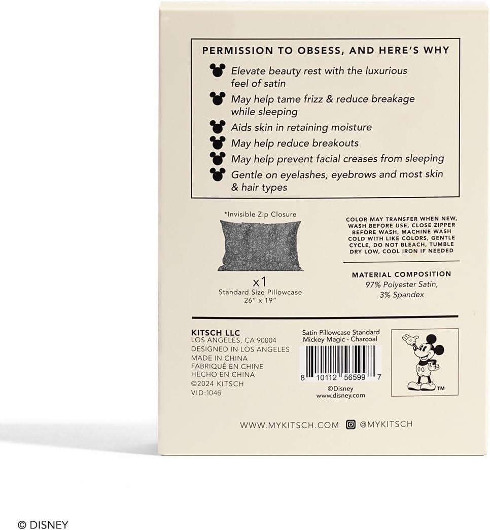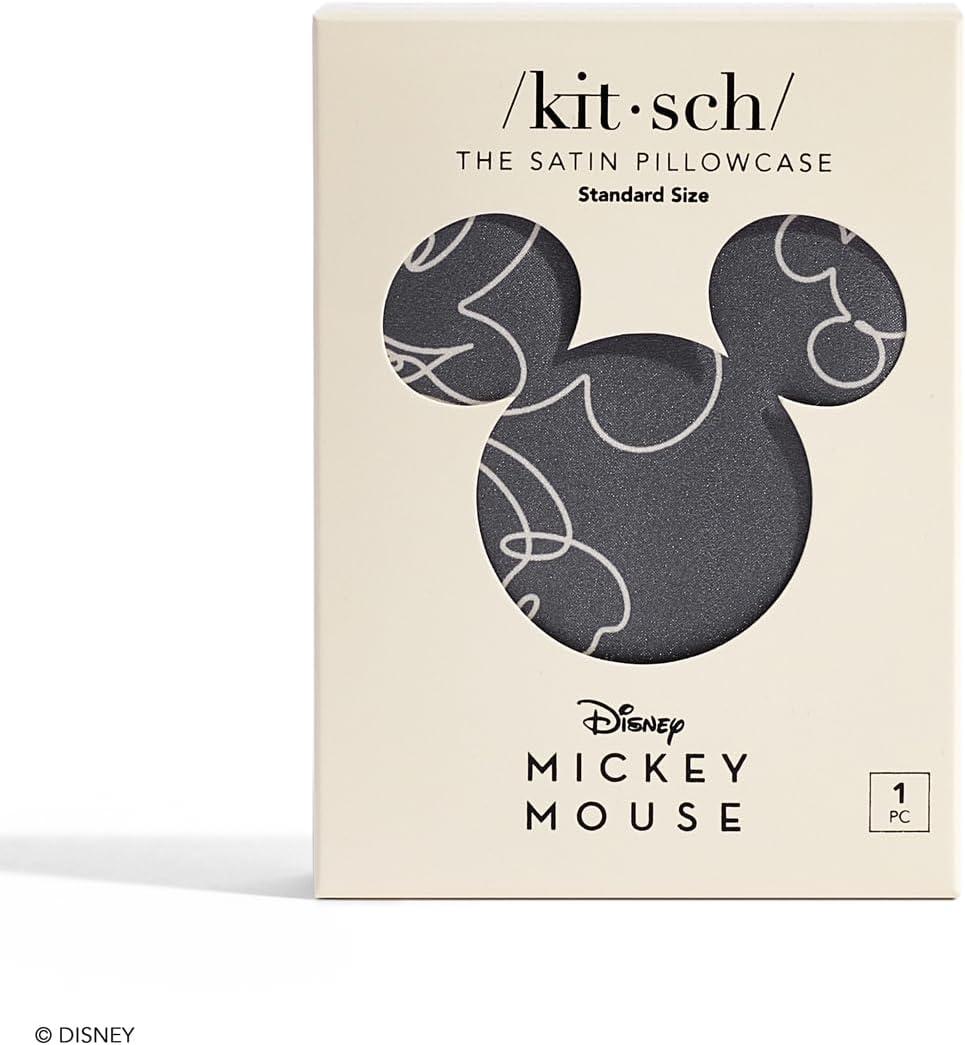 Kitsch x Bridgerton Satin Pillowcase with Zipper for Hair Skin, Softer Than Silk Pillow Cases, Wrinkle-Free, Cooling Satin Pillow Covers, Bridgerton – Toile De Blue, Standard Size (19″x26″)(Disney – Mickey Mouse)