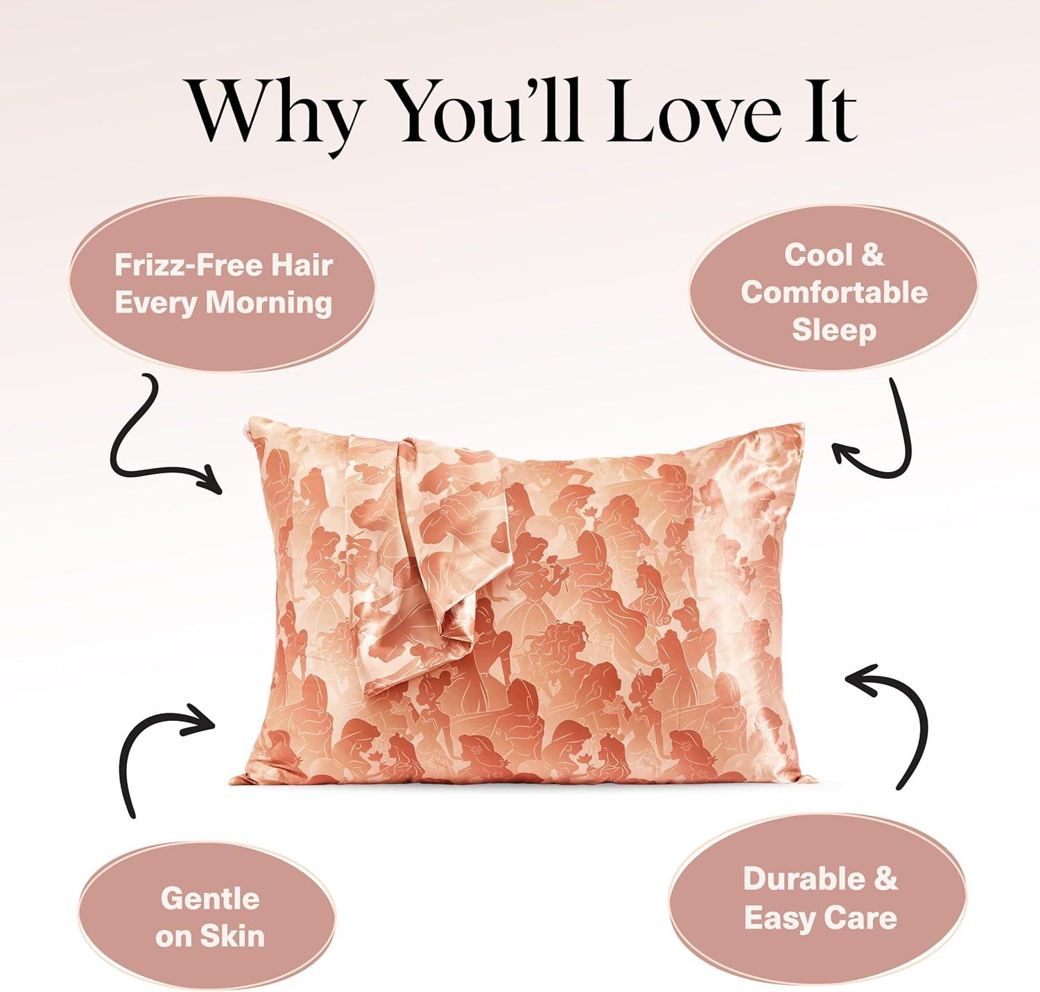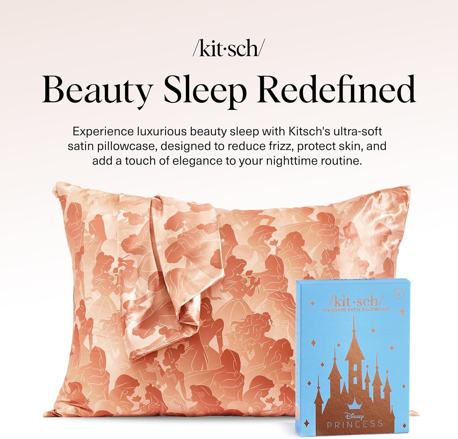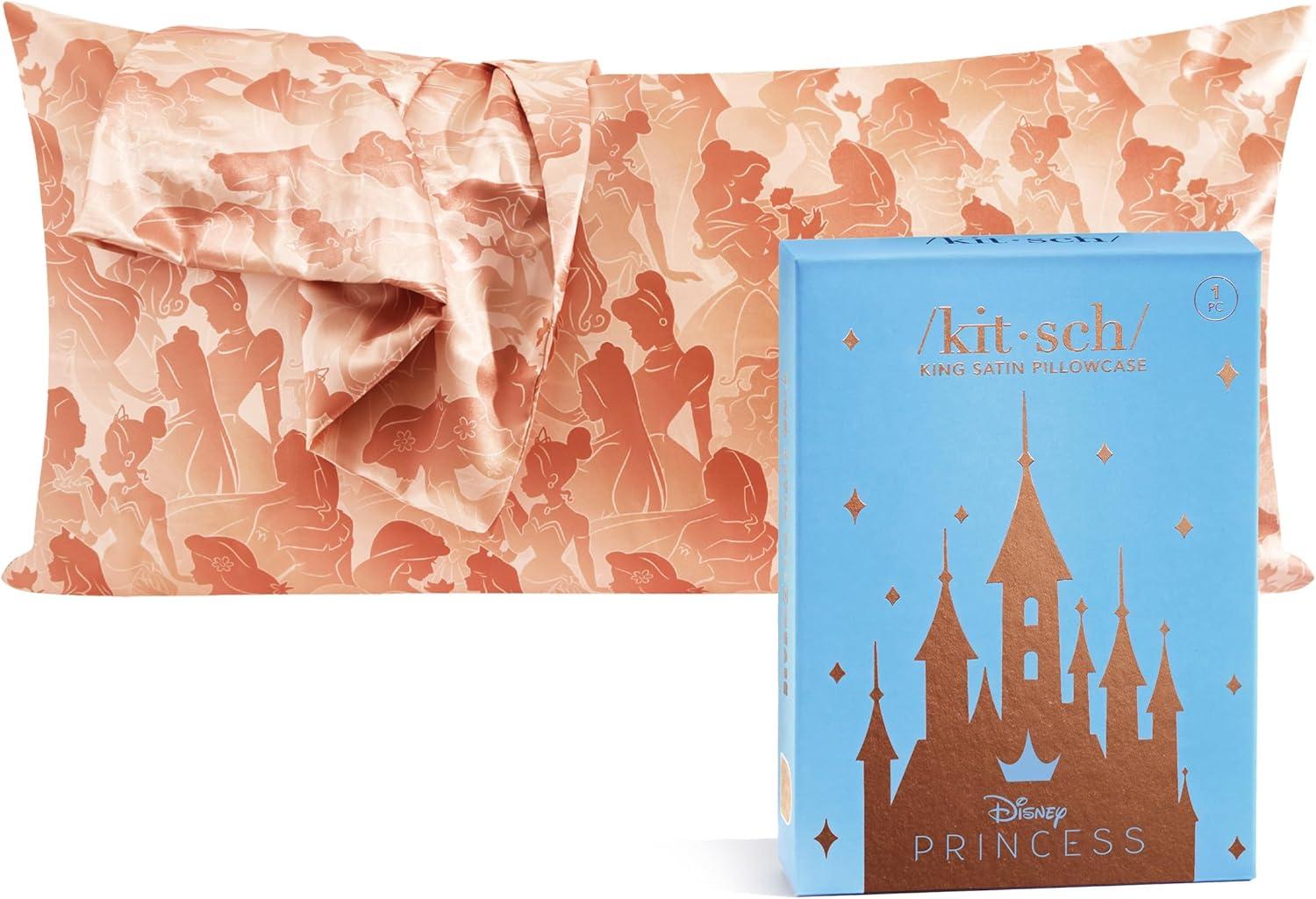 Kitsch x Bridgerton Satin Pillowcase with Zipper for Hair Skin, Softer Than Silk Pillow Cases, Wrinkle-Free, Cooling Satin Pillow Covers, Bridgerton – Toile De Blue, Standard Size (19″x26″)(Disney – Princess)