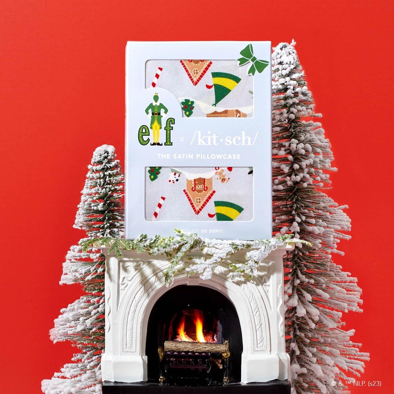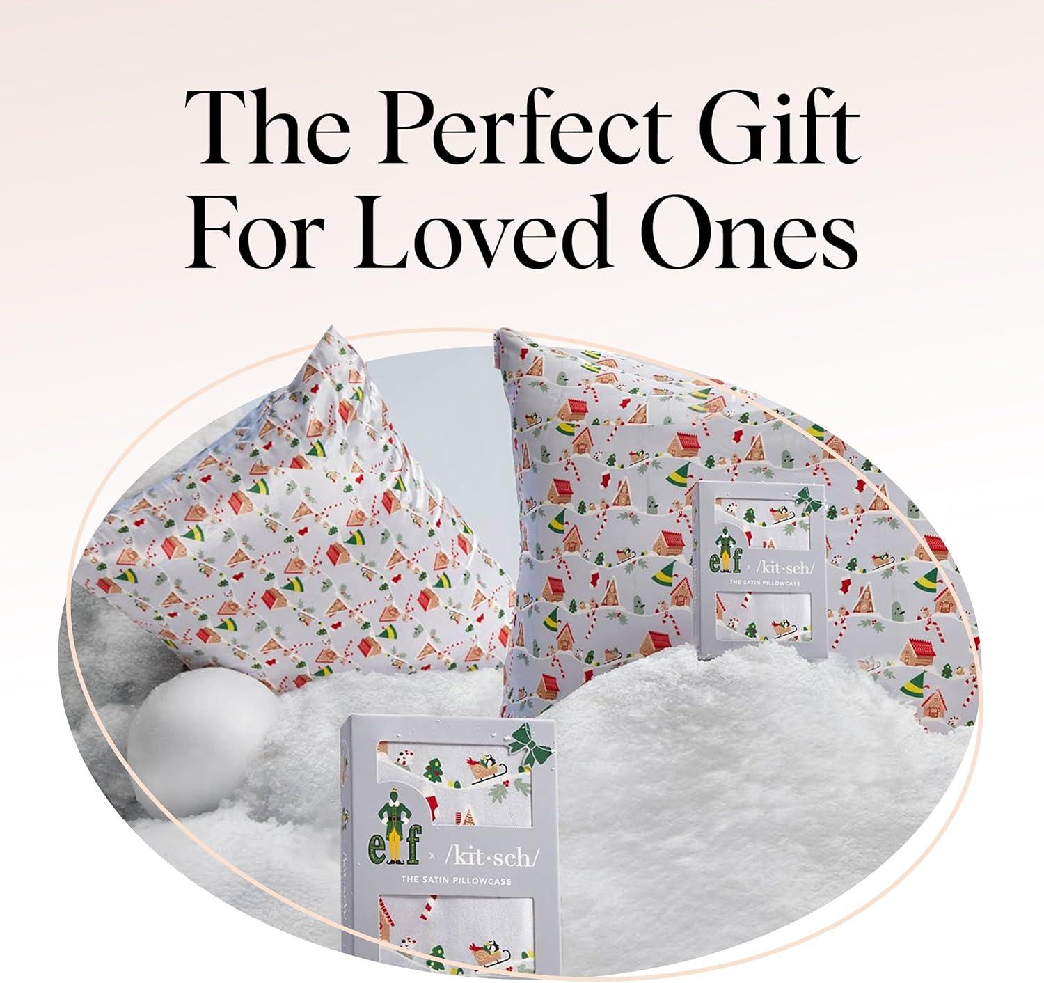 Kitsch x Bridgerton Satin Pillowcase with Zipper for Hair Skin, Softer Than Silk Pillow Cases, Wrinkle-Free, Cooling Satin Pillow Covers, Bridgerton – Toile De Blue, Standard Size (19″x26″)(Elf – North Pole)