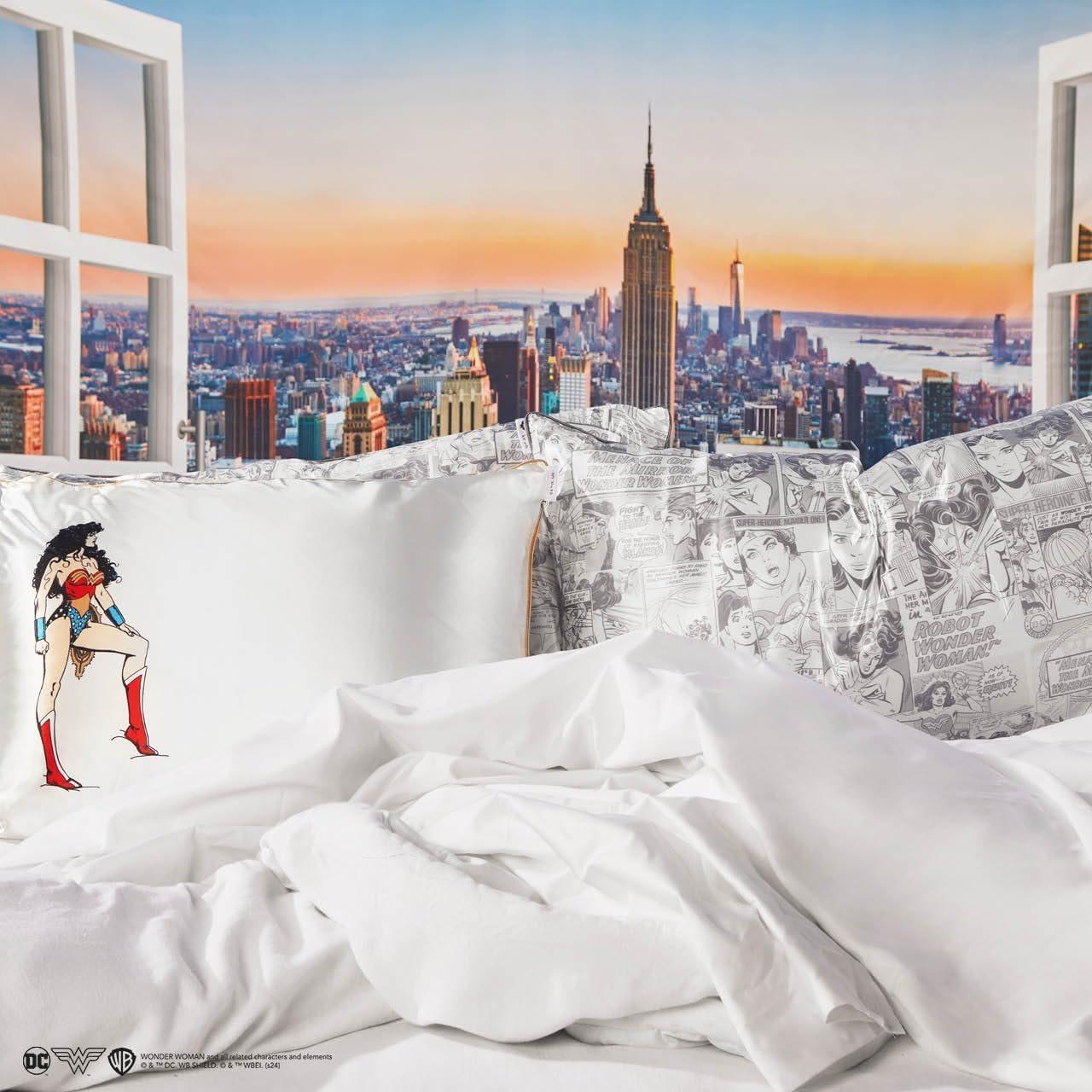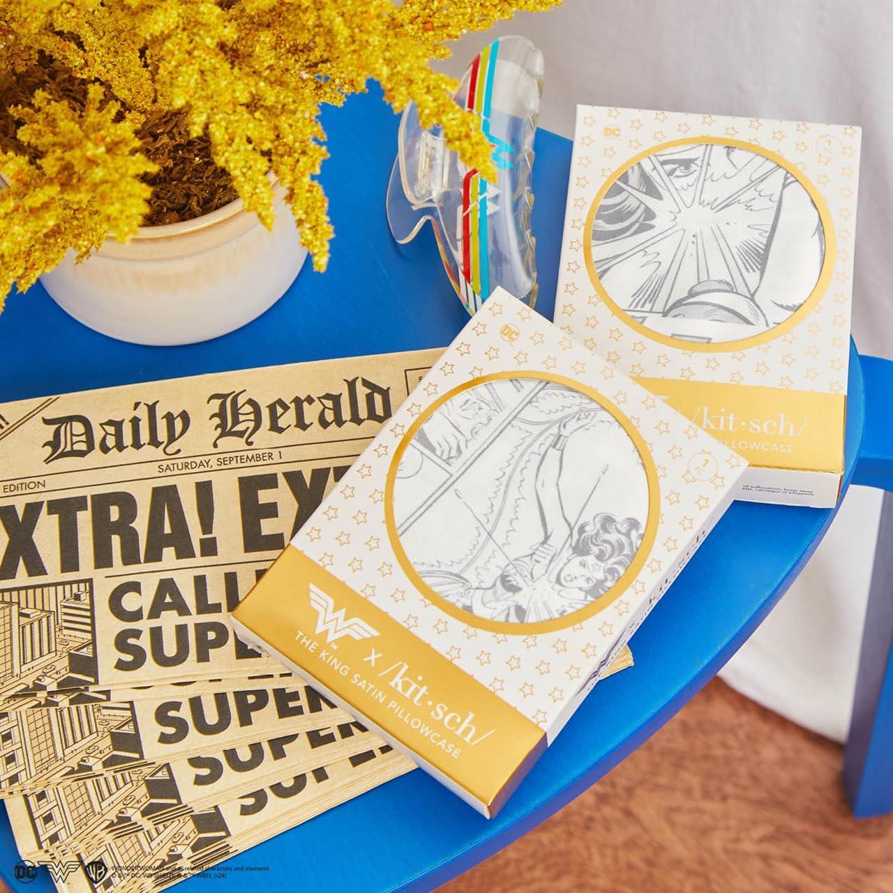 Kitsch x Lisa Frank Satin Pillowcase with Zipper for Hair & Skin, Softer Than Silk Pillow Cases Queen, Wrinkle-Free, Smooth and Cooling Satin Pillow Covers Standard/Queen Size 19x26 - Angel Kitty(Wonder Woman - Comic)