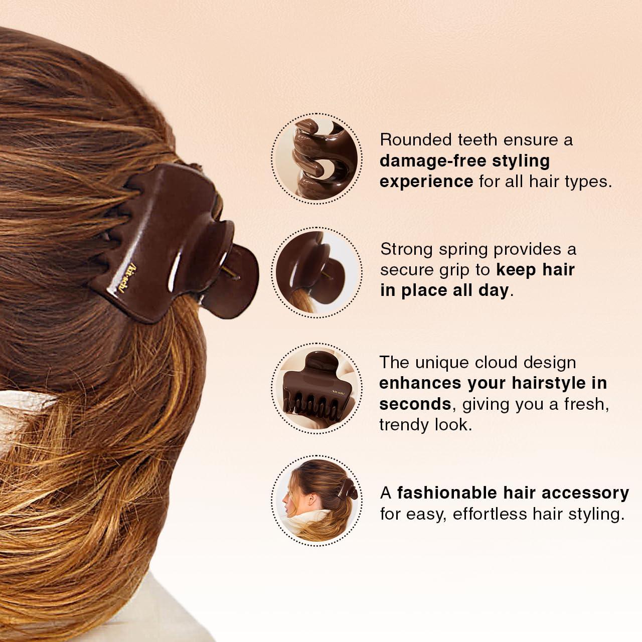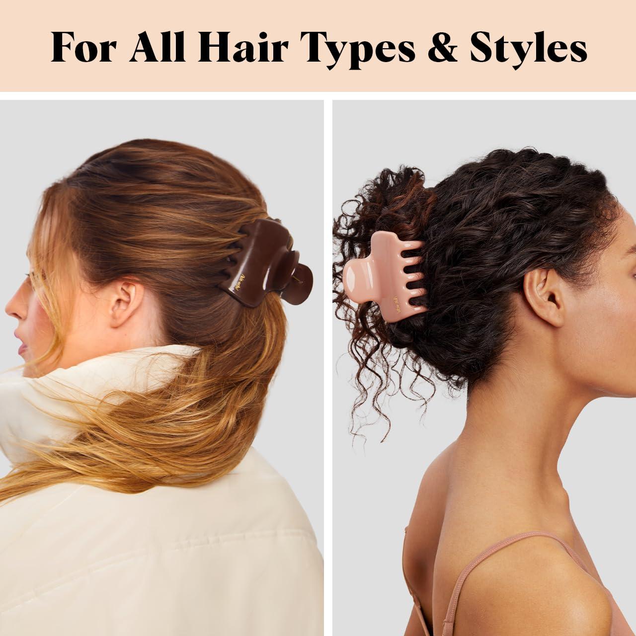 EFFORTLESS UPDOS FOR ALL HAIR TYPES: Perfect for thick, curly, fine, or straight hair, this strong claw clip makes styling quick and reliable. Create buns, twists, or casual half-up looks in seconds. The no-slip design keeps strands secure through long meetings, gym sessions, or weekend adventures without pulling or snagging. Enjoy a weightless feel with dependable strength that makes busy mornings and last-minute plans stress-free.
