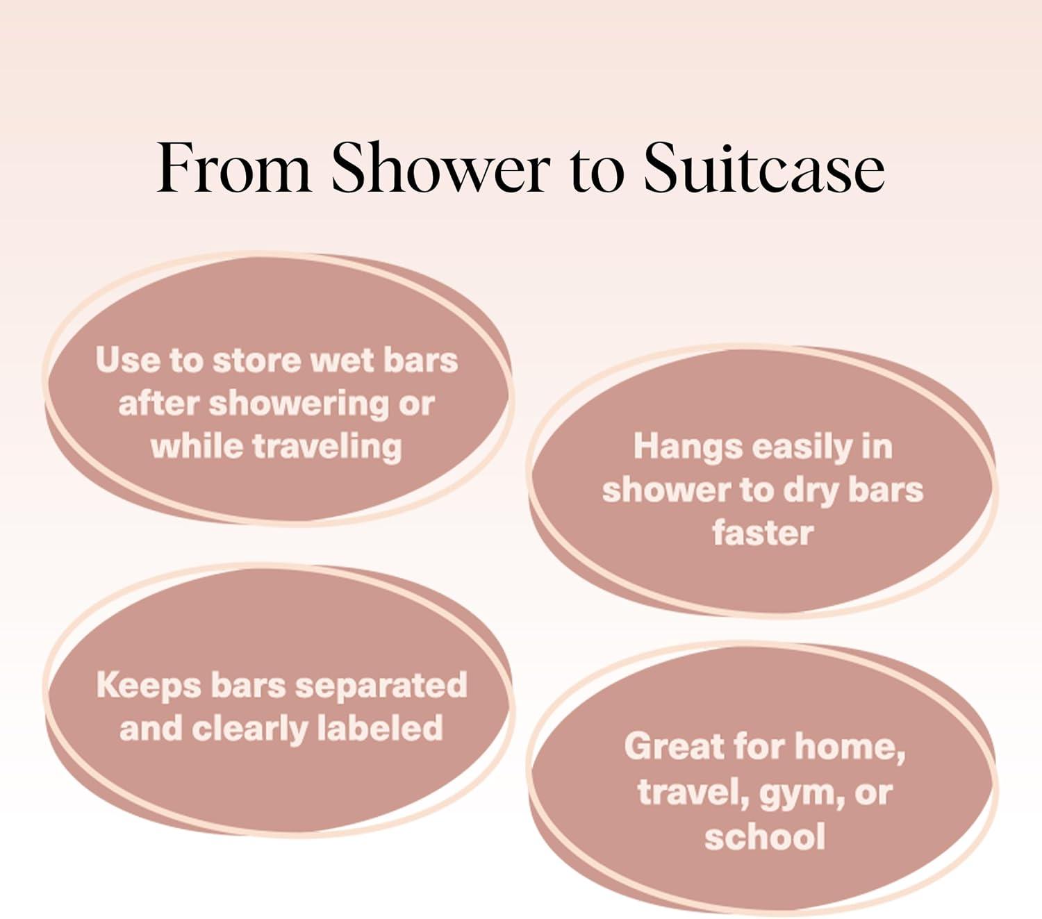 FUNCTIONAL & EASY TO USE SOAP POUCH – The Kitsch soap bag is expertly designed to hang neatly in your shower for effortless organization. Labeled for convenience: each pouch includes handy tag identifiers, so you’ll never mix up your shampoo, conditioner, or body wash bars again. This versatile soap pouch makes your routine simple and stress-free.