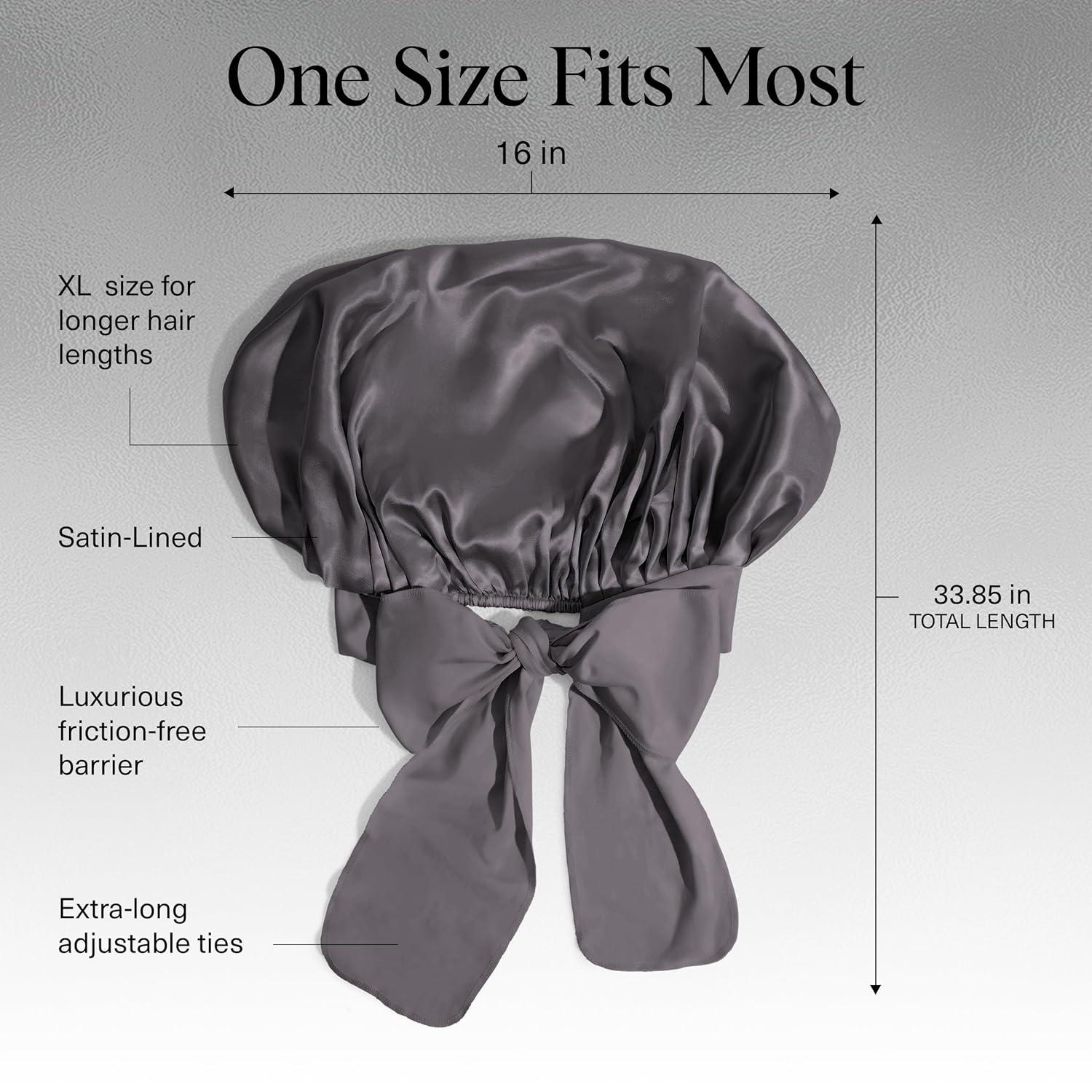 Kitsch XL Satin Bonnet for Sleeping - Softer Than Silk Hair Bonnet for Women - Secure Fit, Adjustable Night Cap for Curly & Textured Hair - Prevents Breakage, Tangles & Thinning - Aura(Charcoal)
