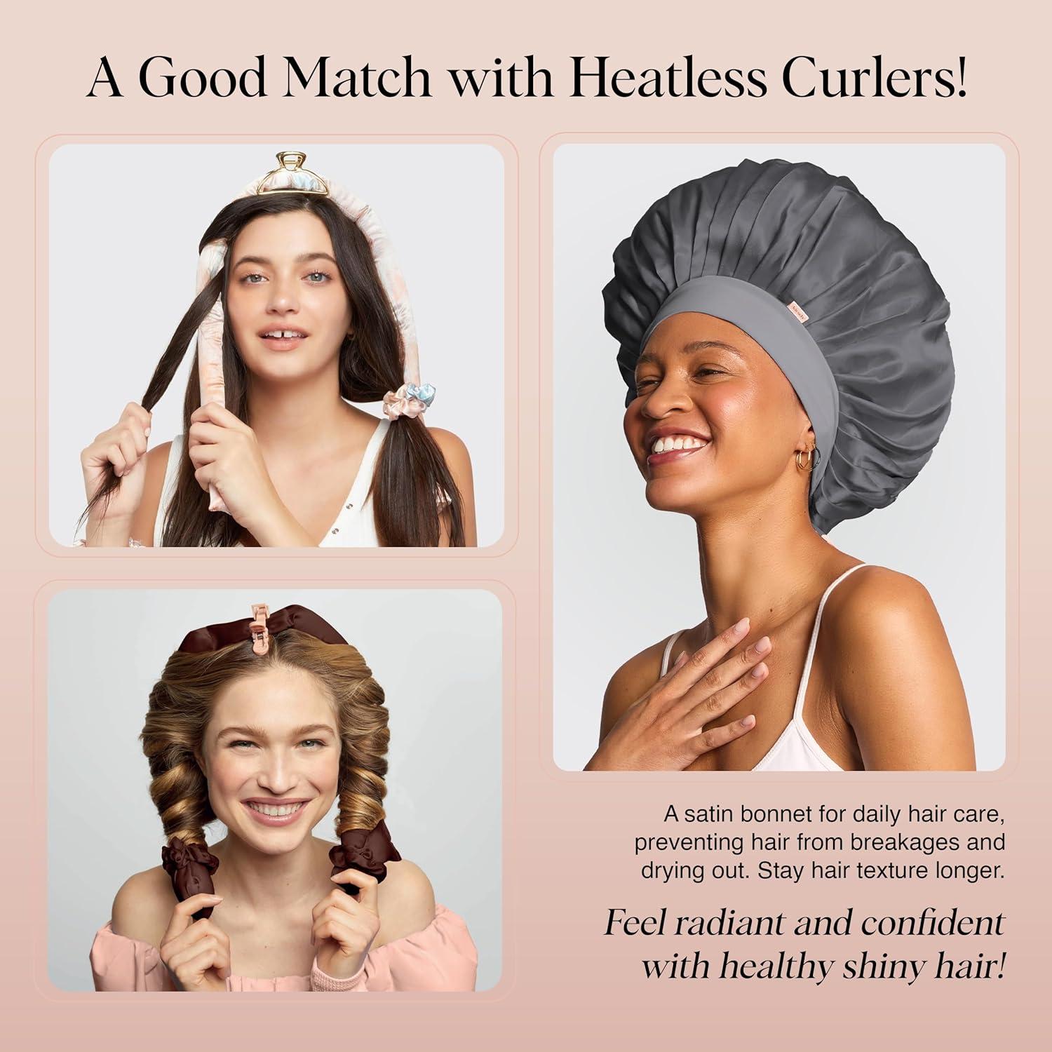 PREVENTS FRIZZ & PRESERVES CURLS: Our softer-than-silk satin hair bonnet for sleeping helps preserve your hair’s natural oils and reduces friction, preventing dryness, breakage, and tangles. The XL satin bonnet is also the perfect match for Kitsch heatless hair curler and hair rollers, helping to preserve curls and styles overnight without the need for heat. Simply wear this softer-than-silk hair bonnet for sleeping each night & wake up with frizz-free, naturally beautiful hair and bouncy curls.
