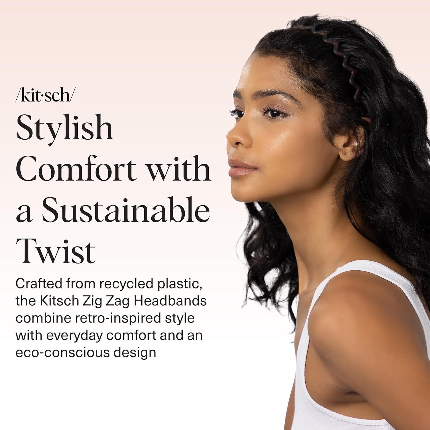 Kitsch Zig Zag Headbands for Women Non Slip – Fashion Accessories for Slicked Back Styles – Comfortable Comb Headband with Teeth | Ideal Gifts for Women – Tortoise & Black Headband – 2 pcs(Neutral)